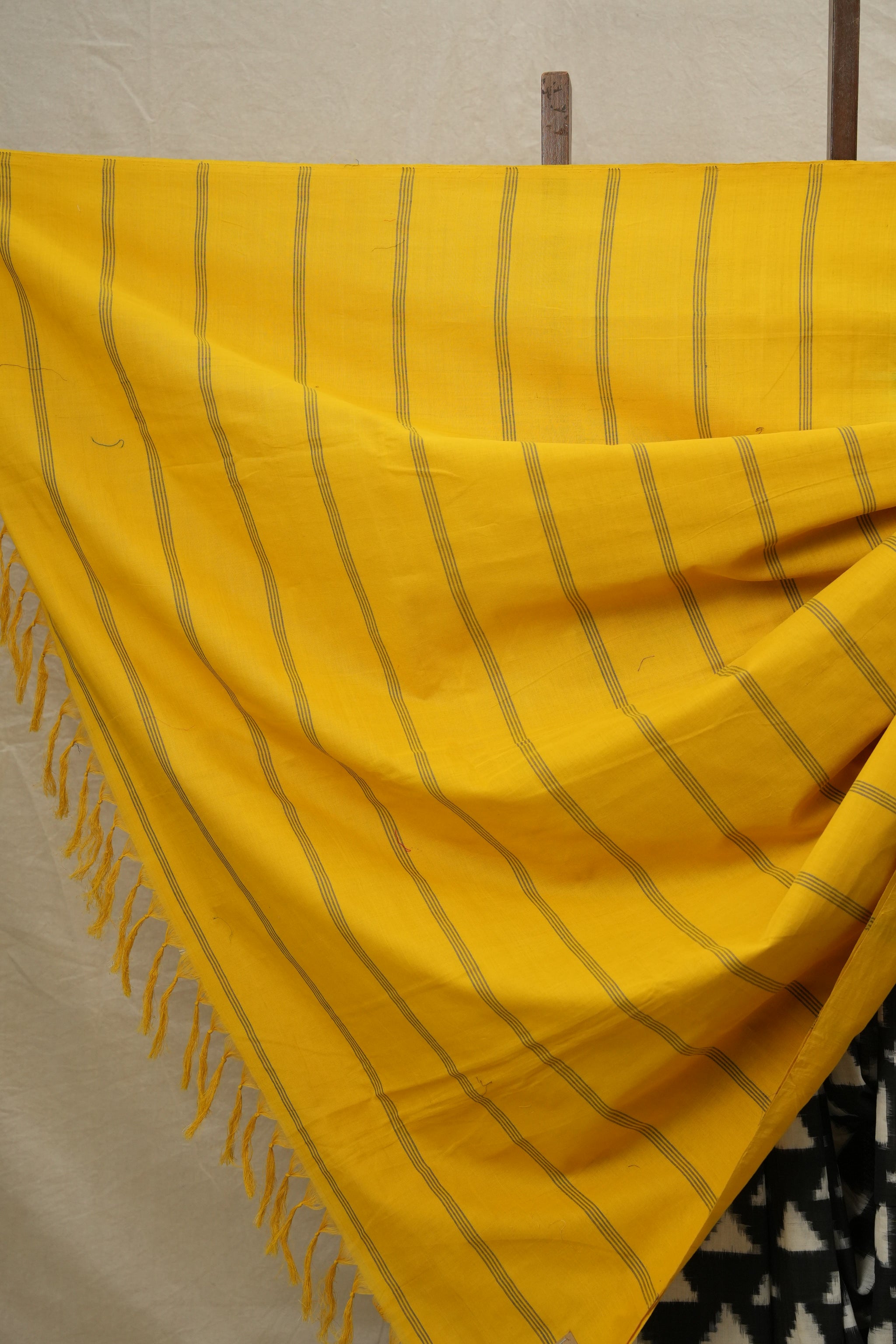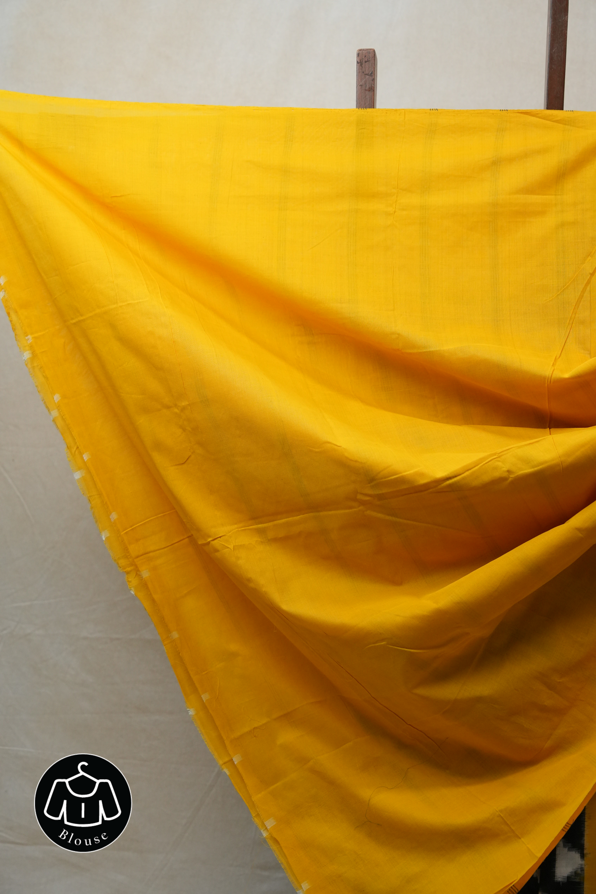 Work - This is a Pochampalli Cotton Ikat saree with handwoven geometric motifs on the body, complemented by an ikat patterned border and striped pallu.
