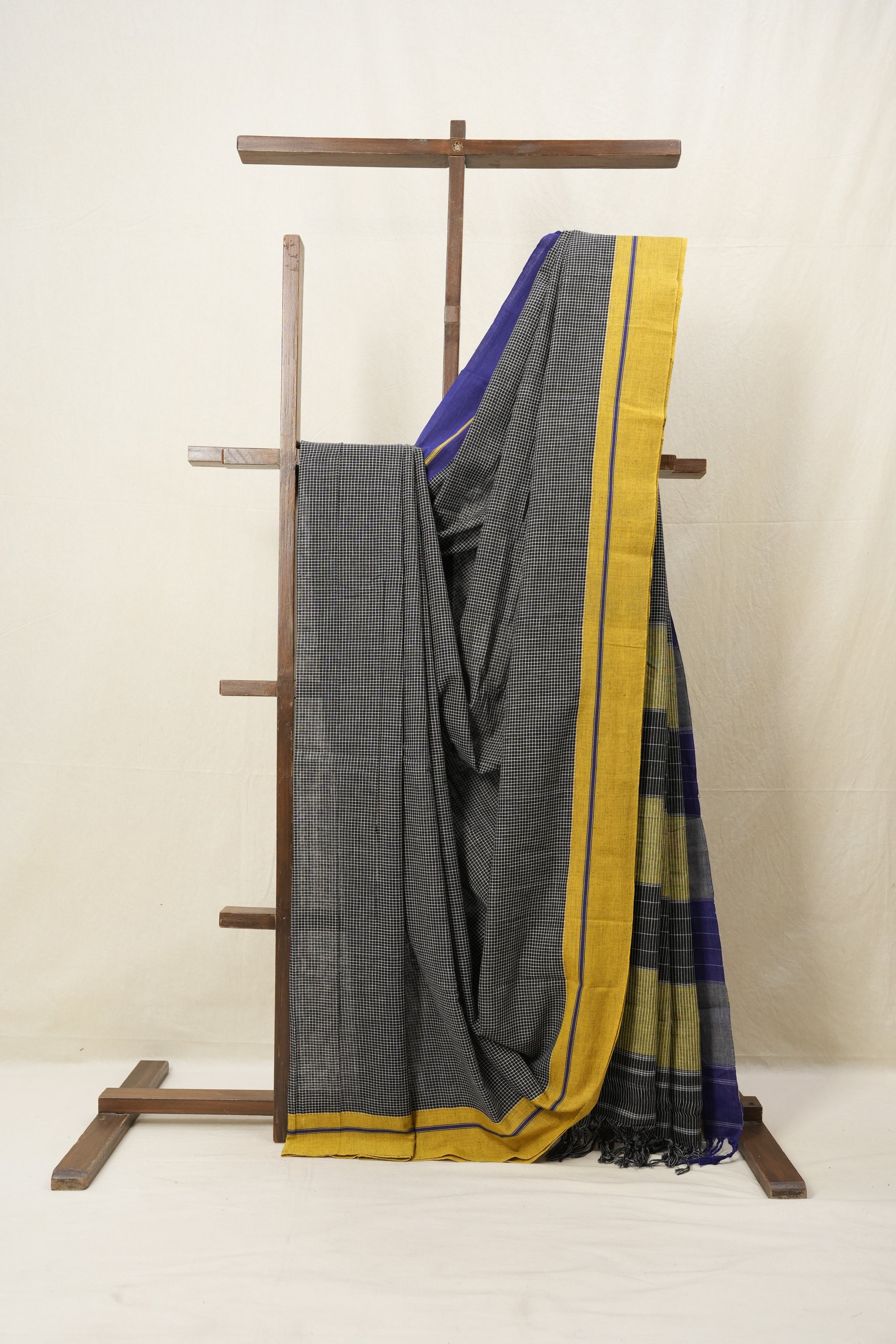 Work - Checkered body with contrasting borders and pallu.