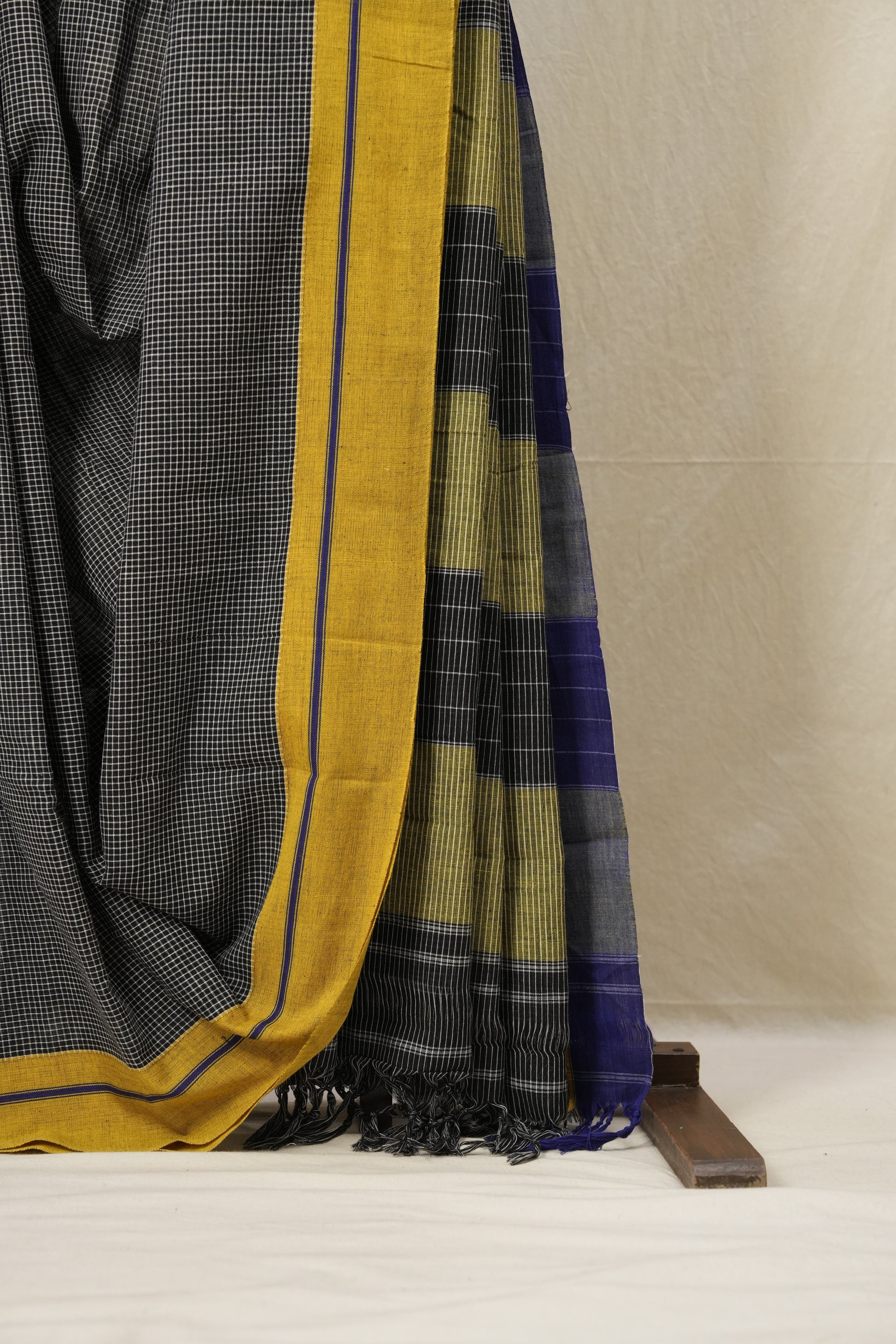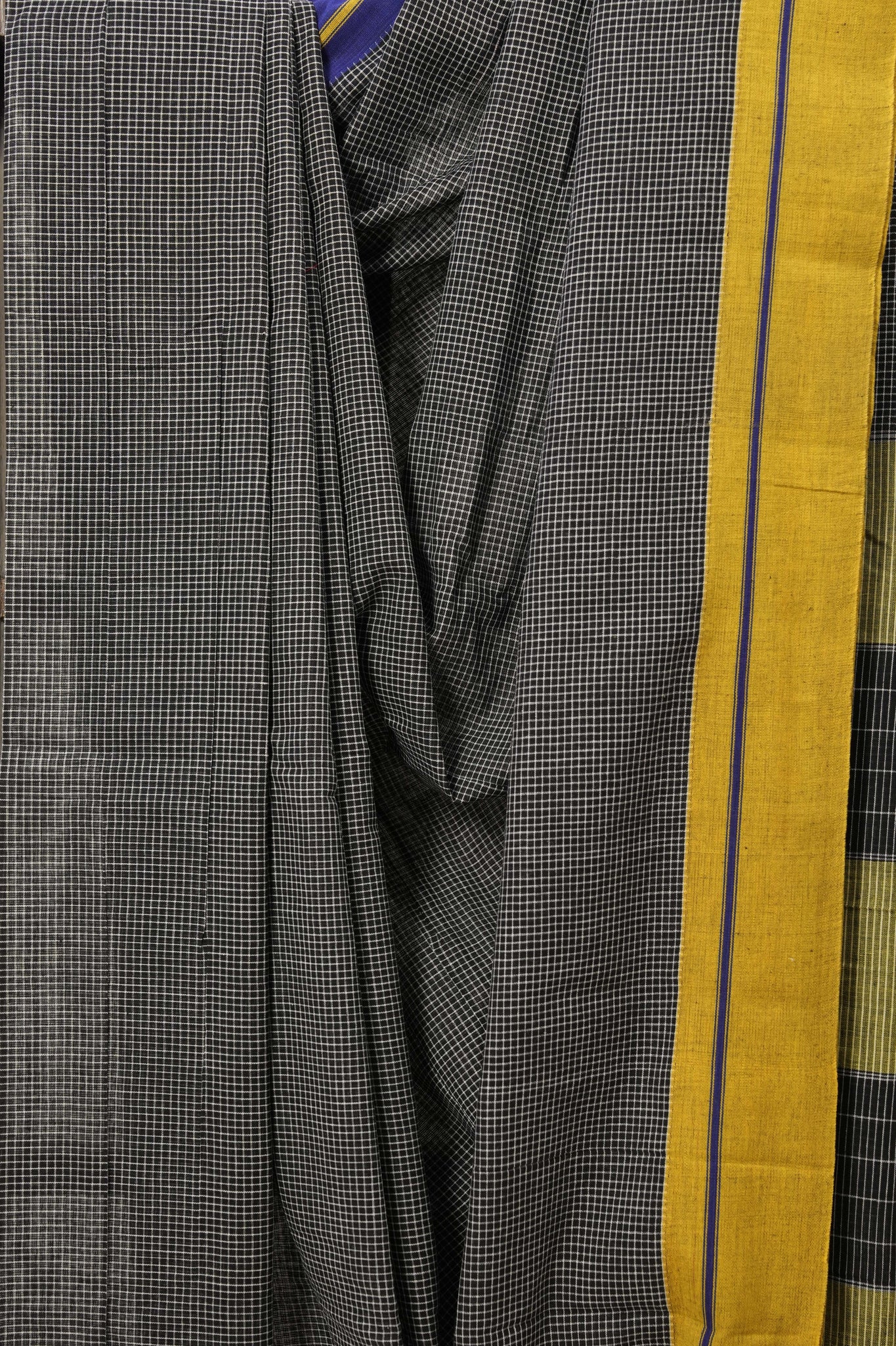 Black Small Checks Cotton Patteda Anchu Saree - SRBPAS224