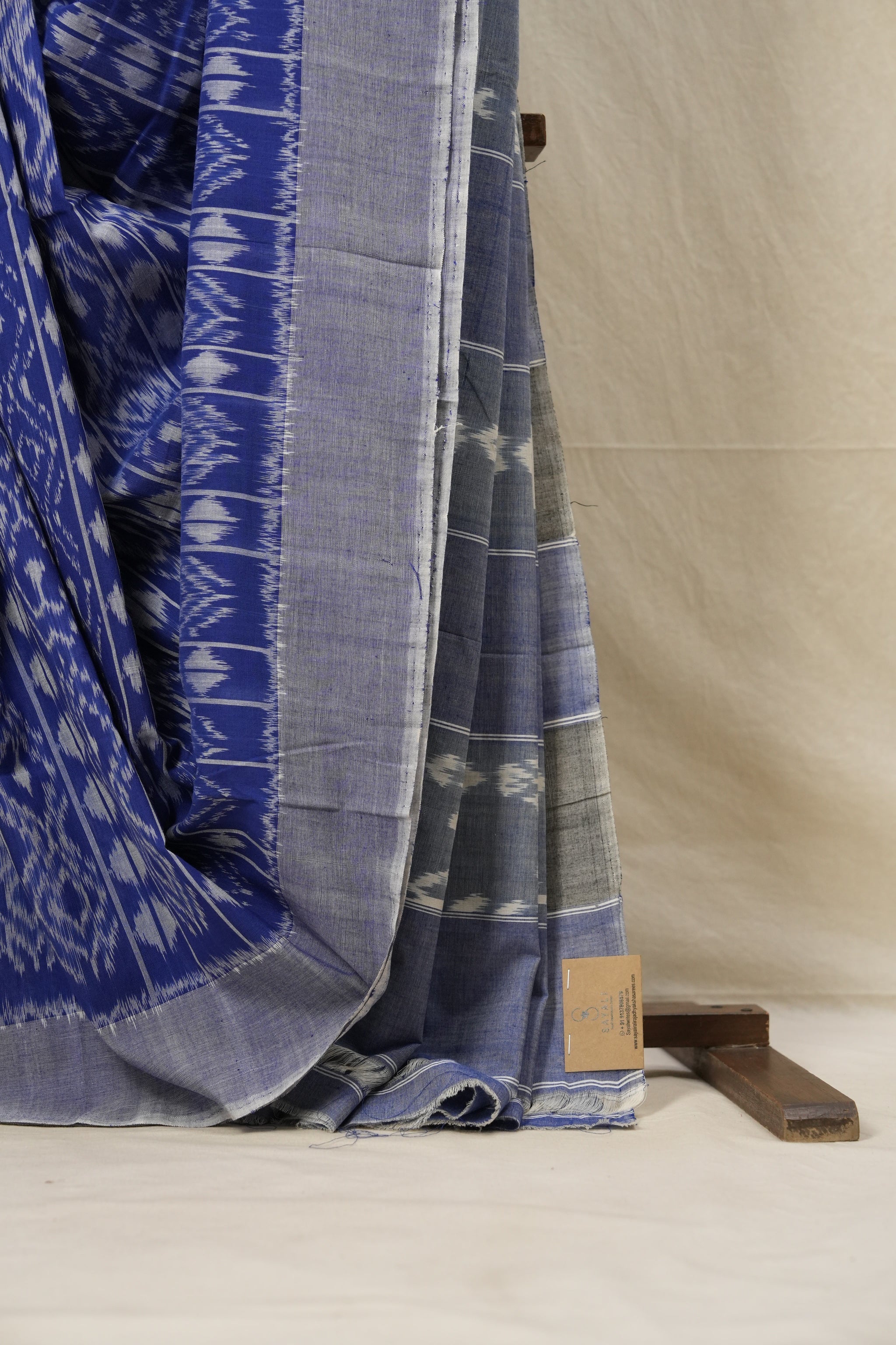 Work - This is a Pochampalli Cotton Ikat saree with blue color body, complemented by an ikat patterned border and pallu.