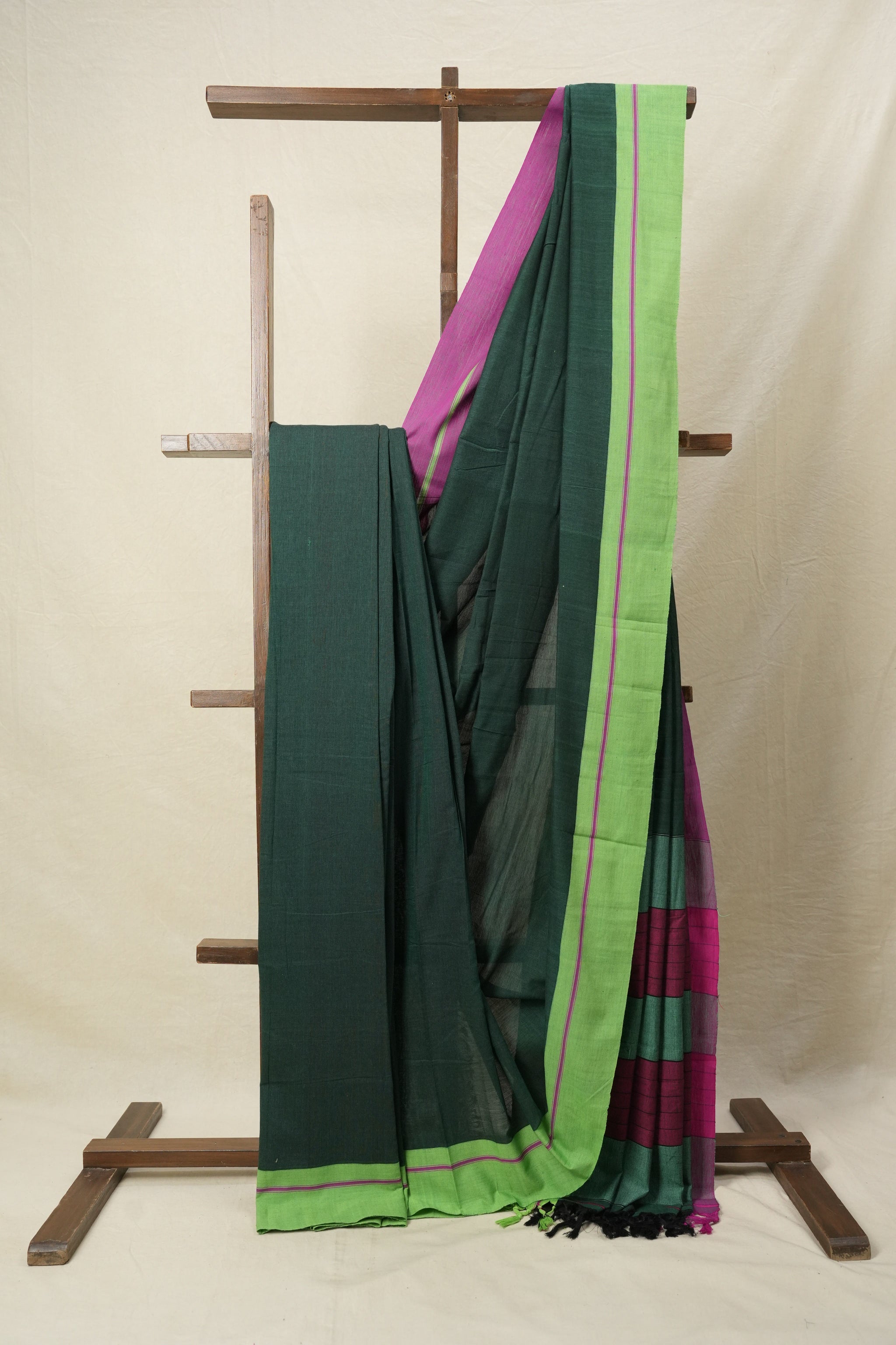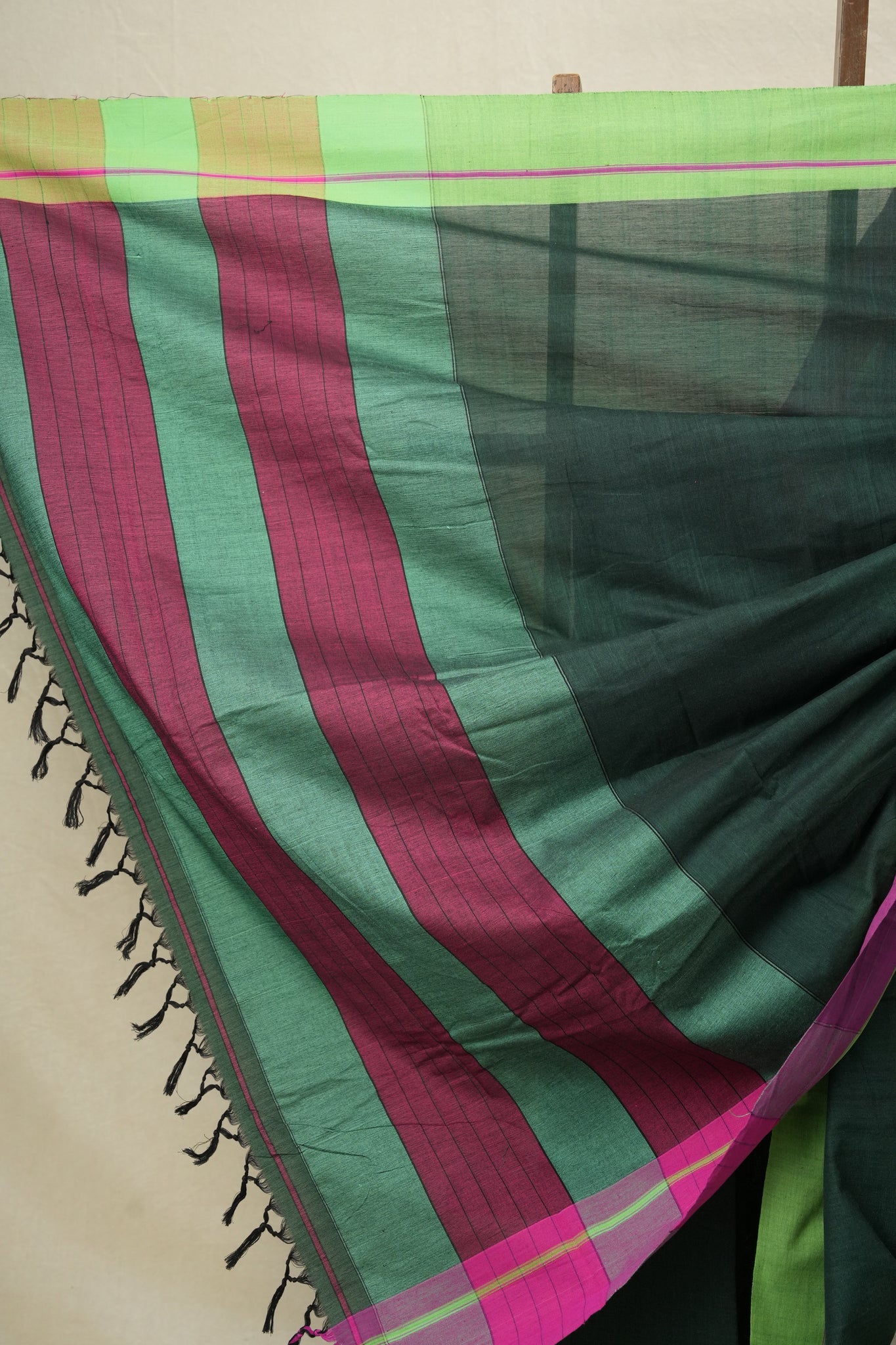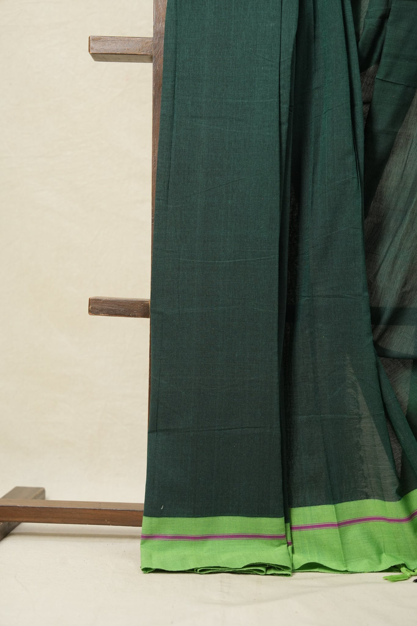 Dark Green Plain Cotton Patteda Anchu Saree - SRDGPAS119