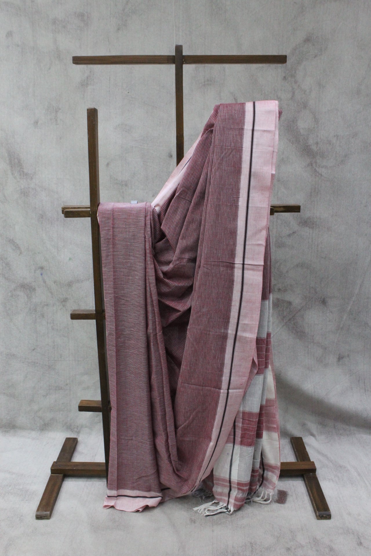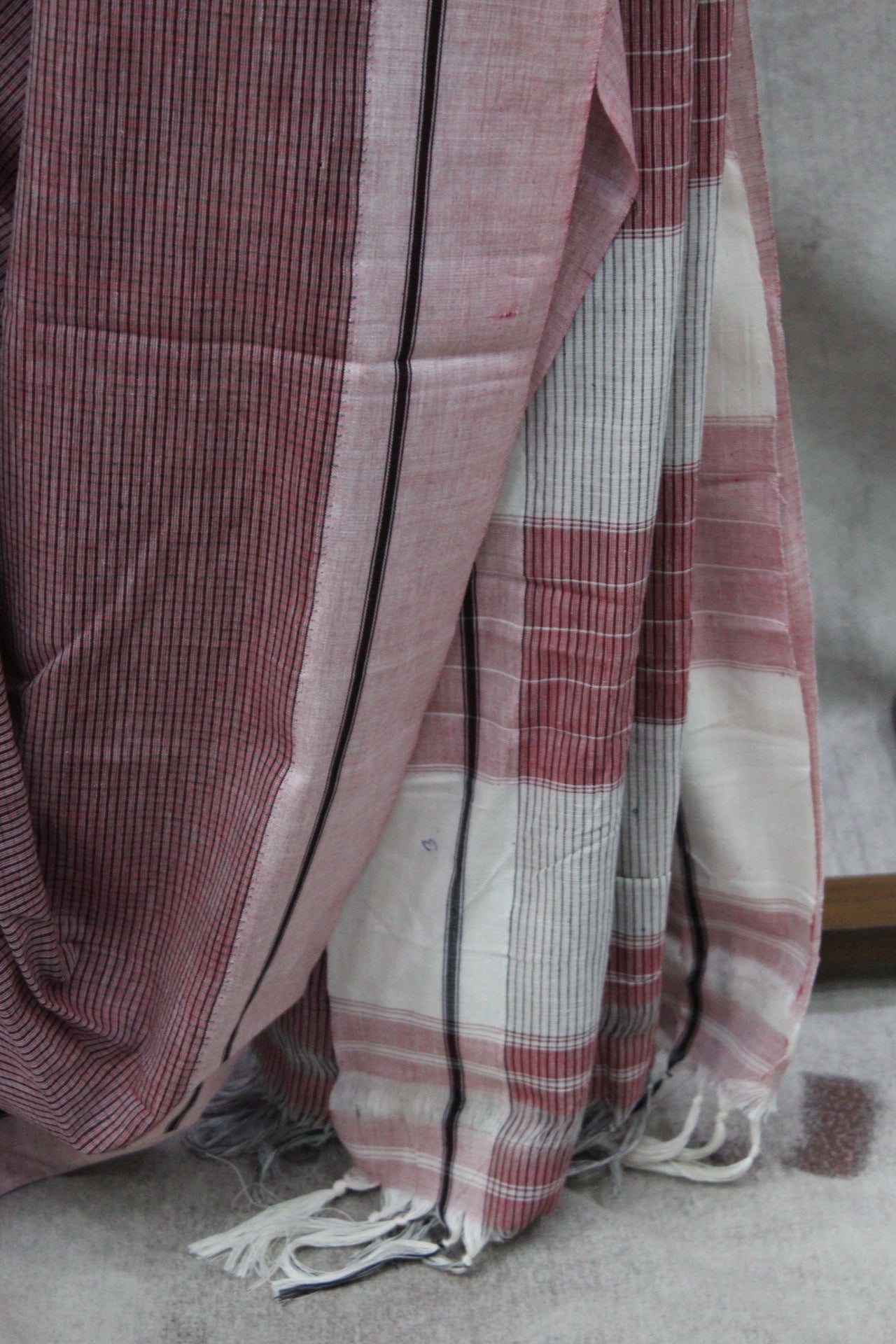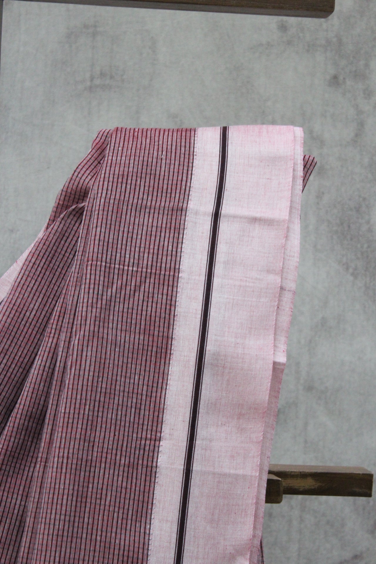 Dusty Pink Small Checks Cotton Patteda Anchu Saree-SRDPCPAS153