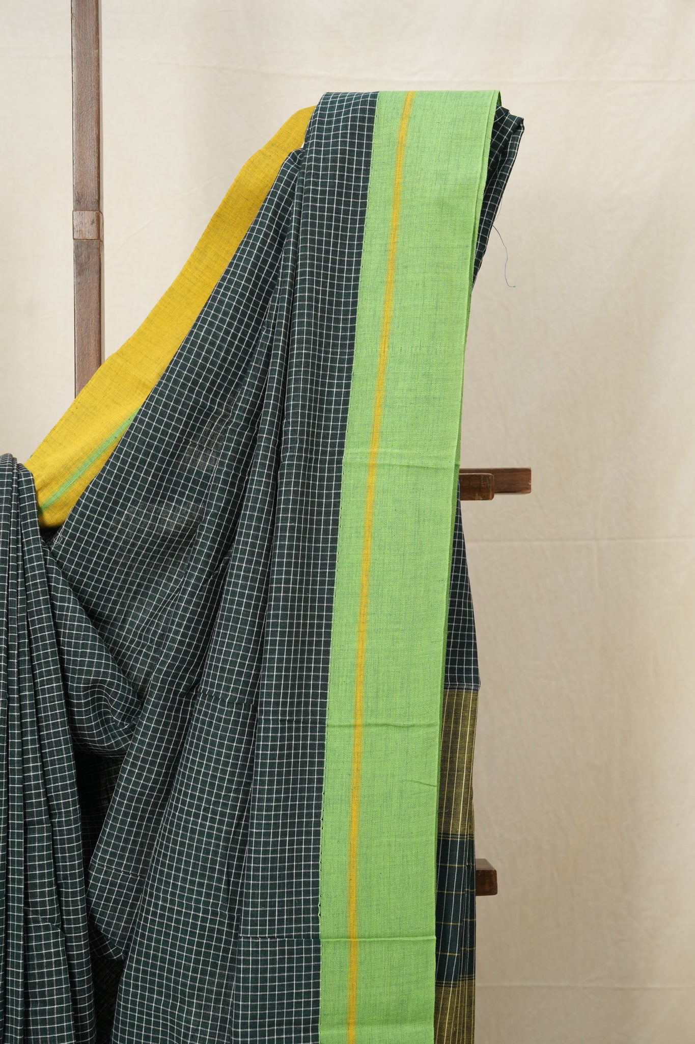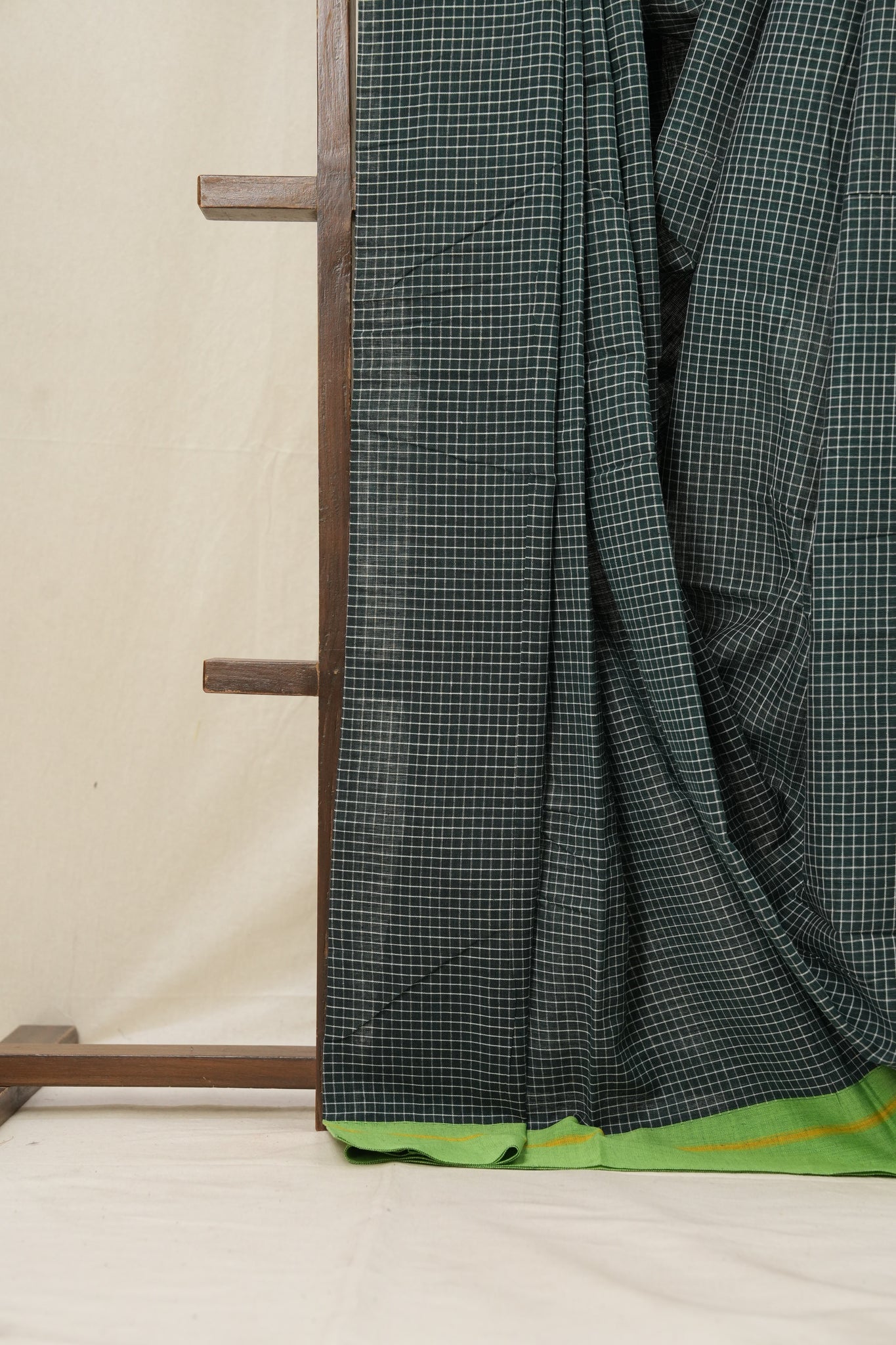 Green Big Checks Cotton Patteda Anchu Saree - SRGPAS223