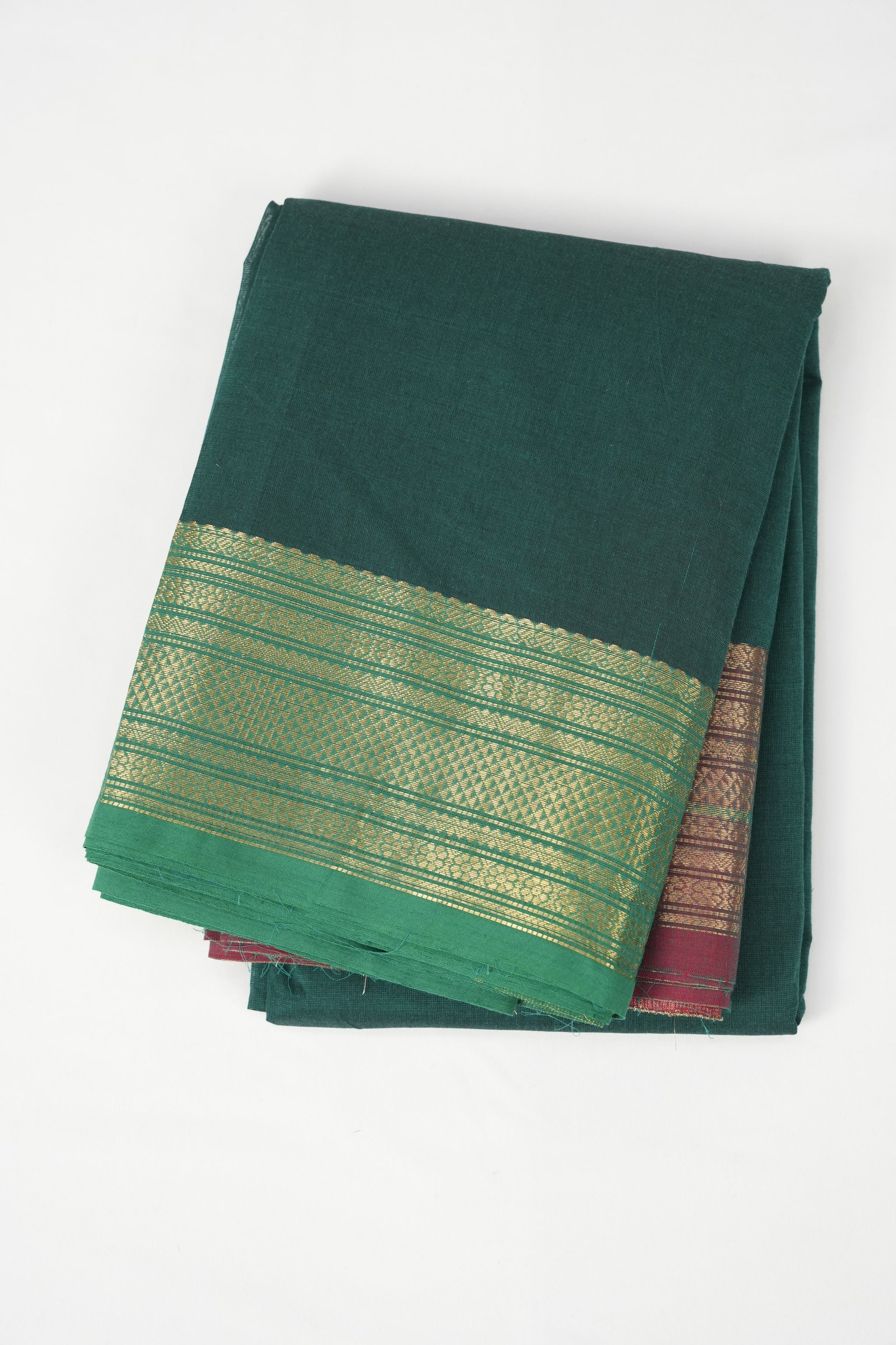 Work -The saree is in a green color with plain body and contrast ganga - jamuna green-maroon border with gold zari. The border is highlighted with woven patterns.