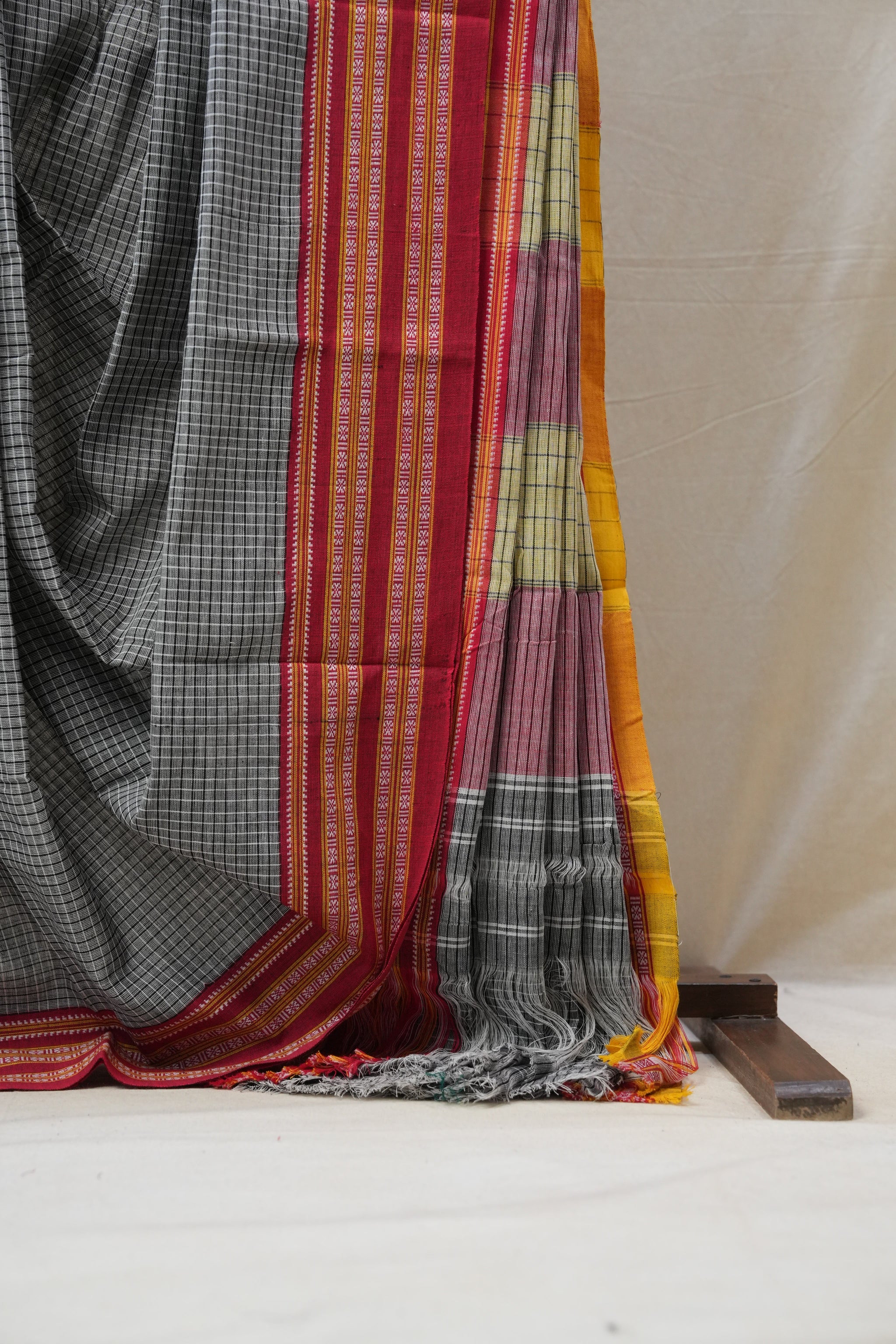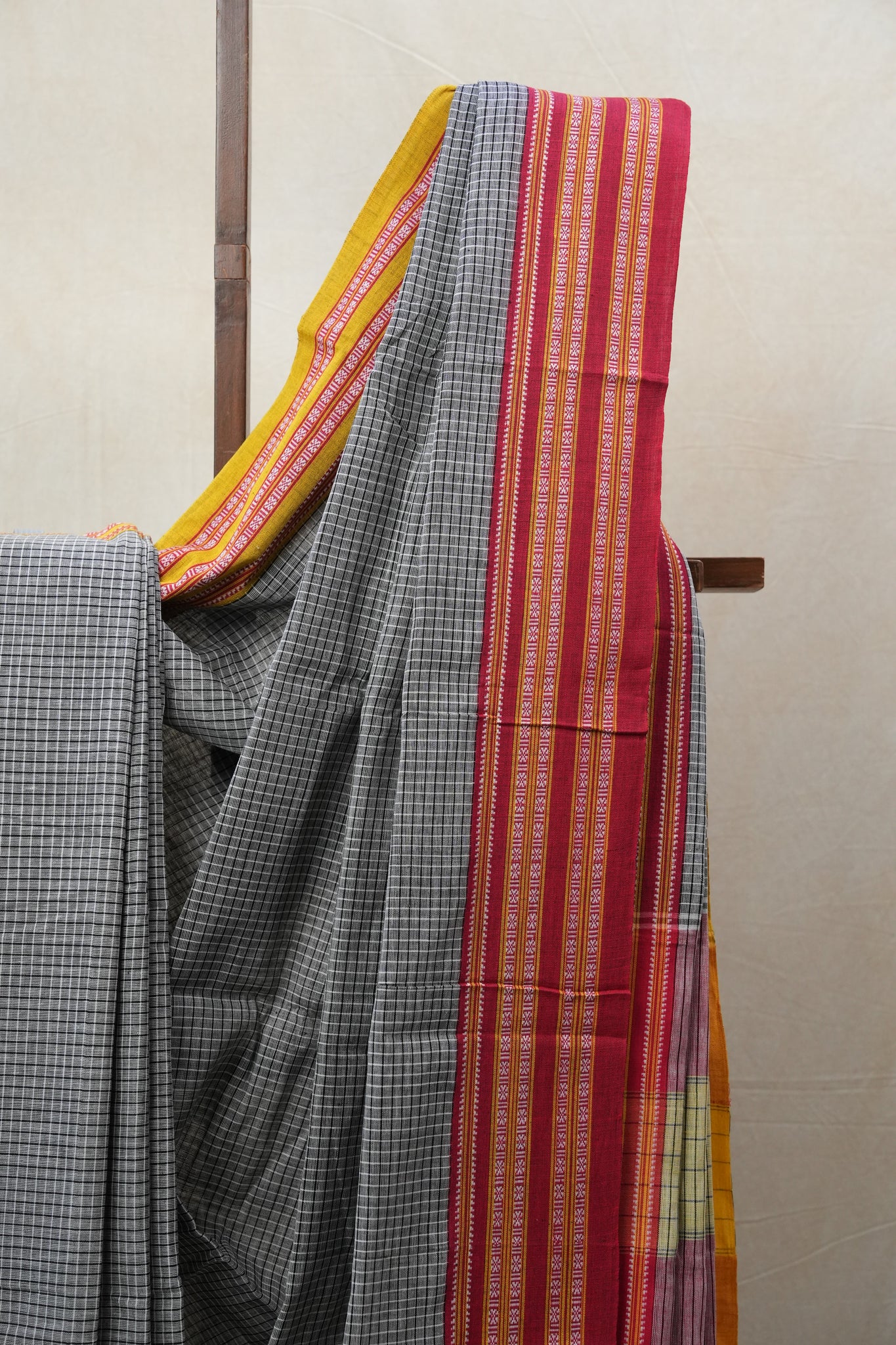 Grey Big Checks Cotton Patteda Anchu Saree - SRGPAS269