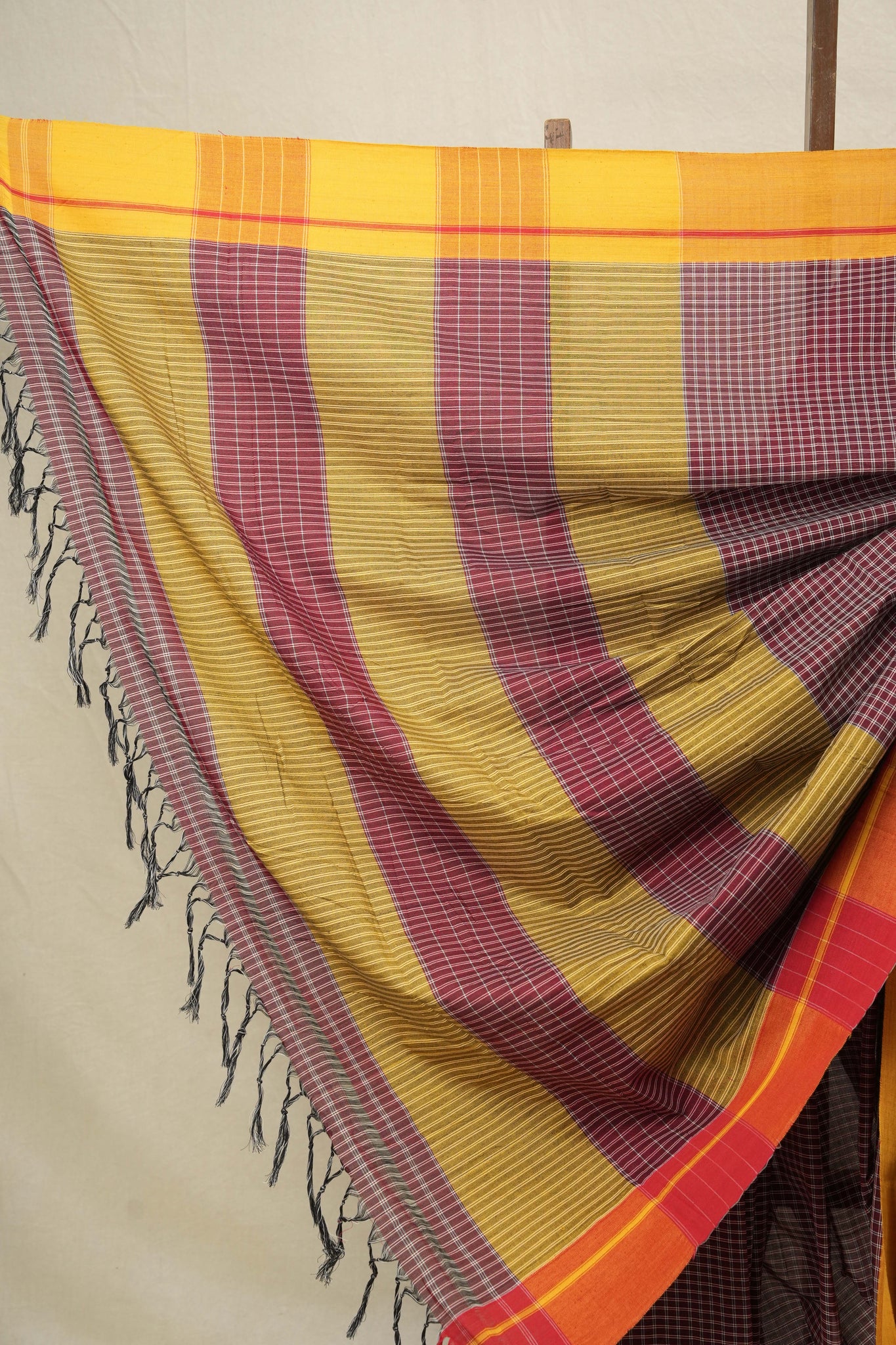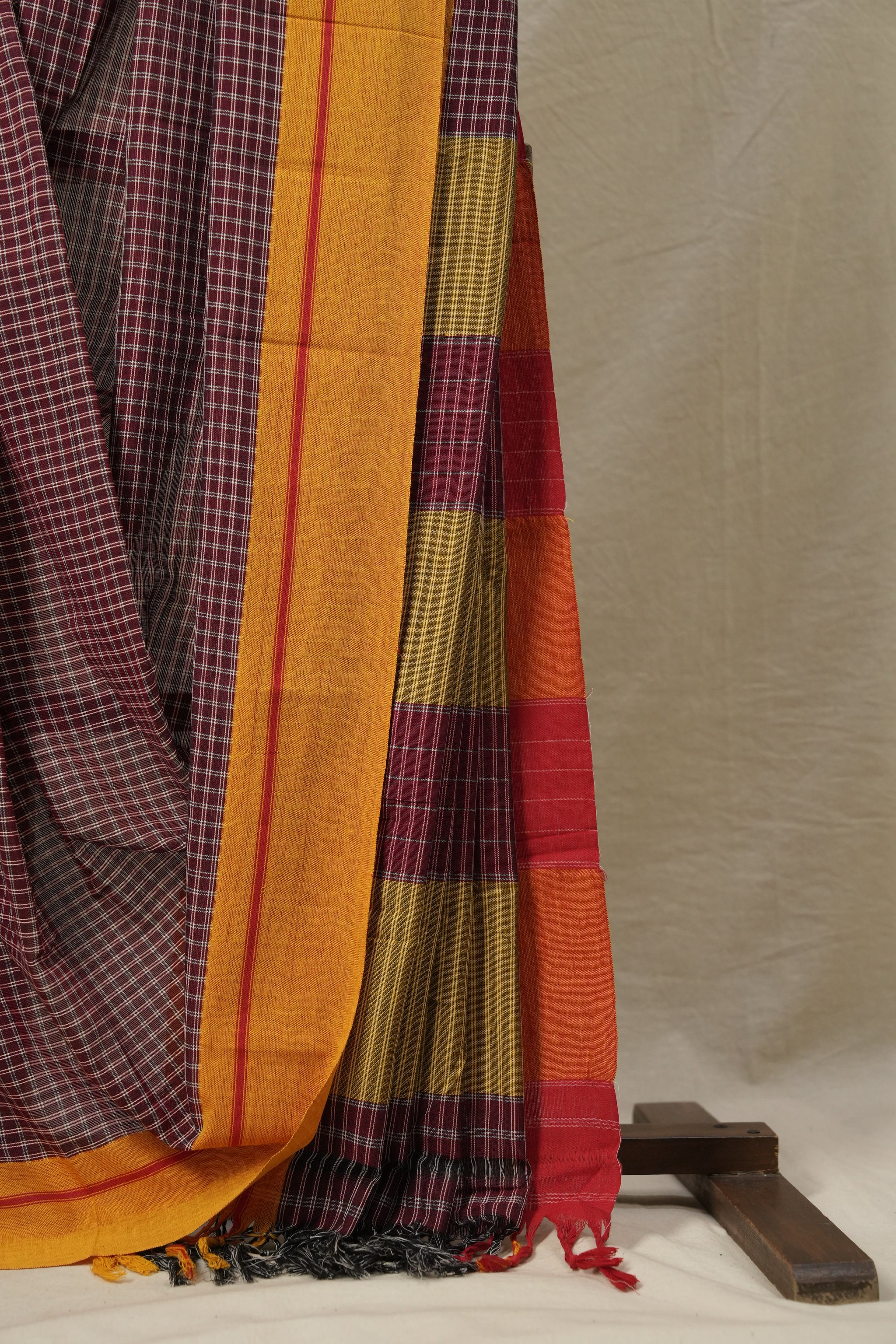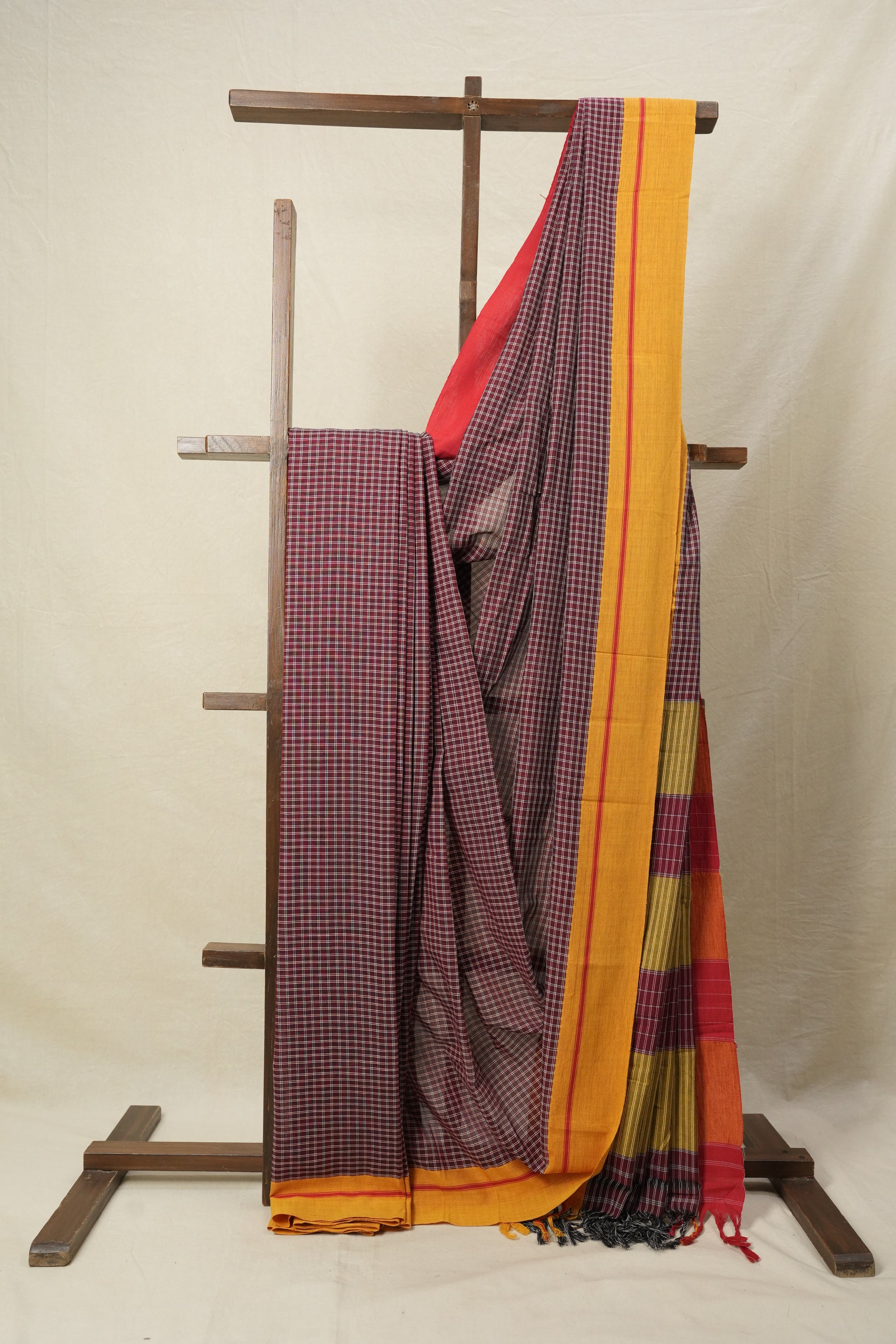 Maroon Big Checks Cotton Patteda Anchu Saree - SRMPAS171
