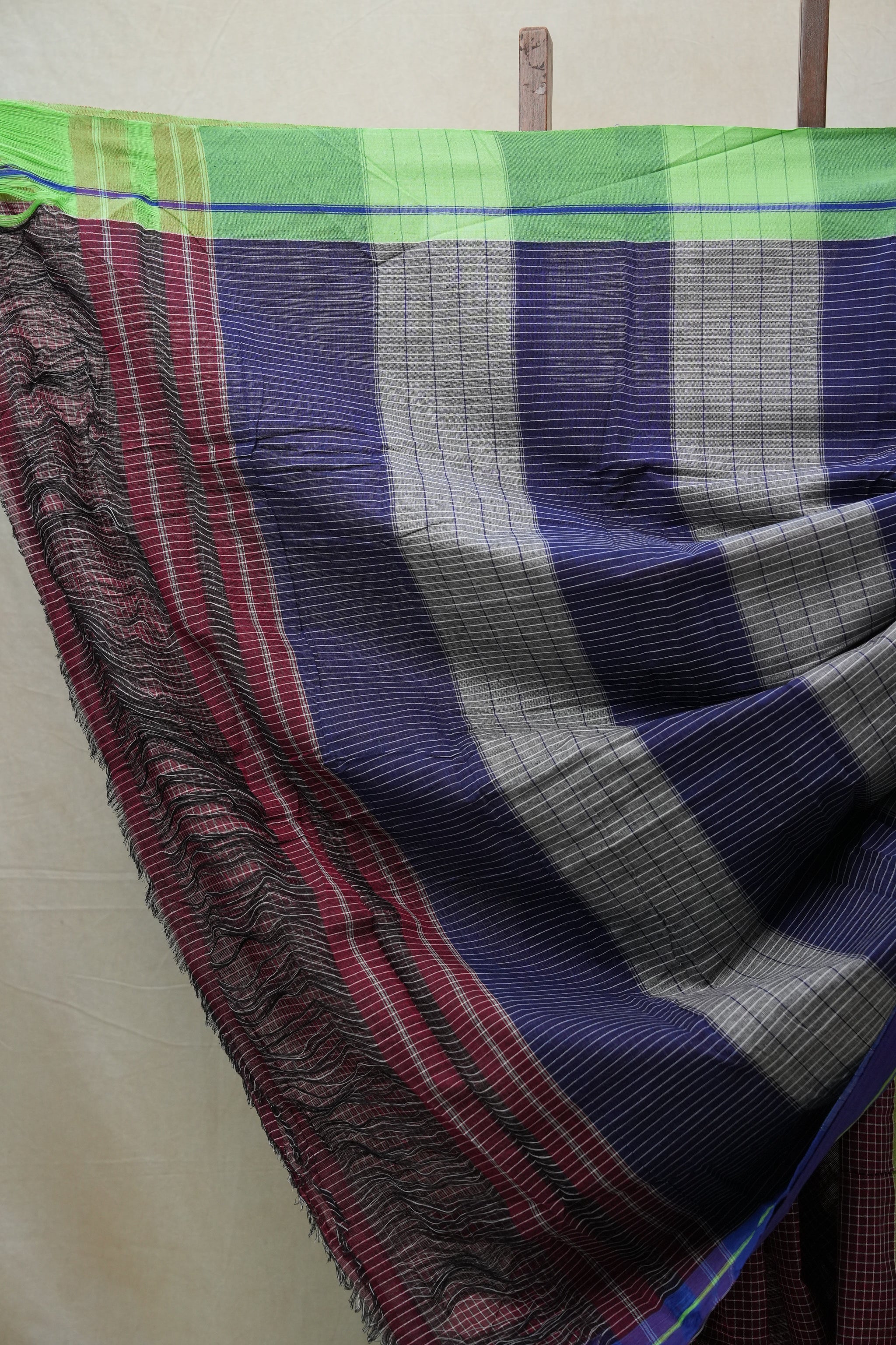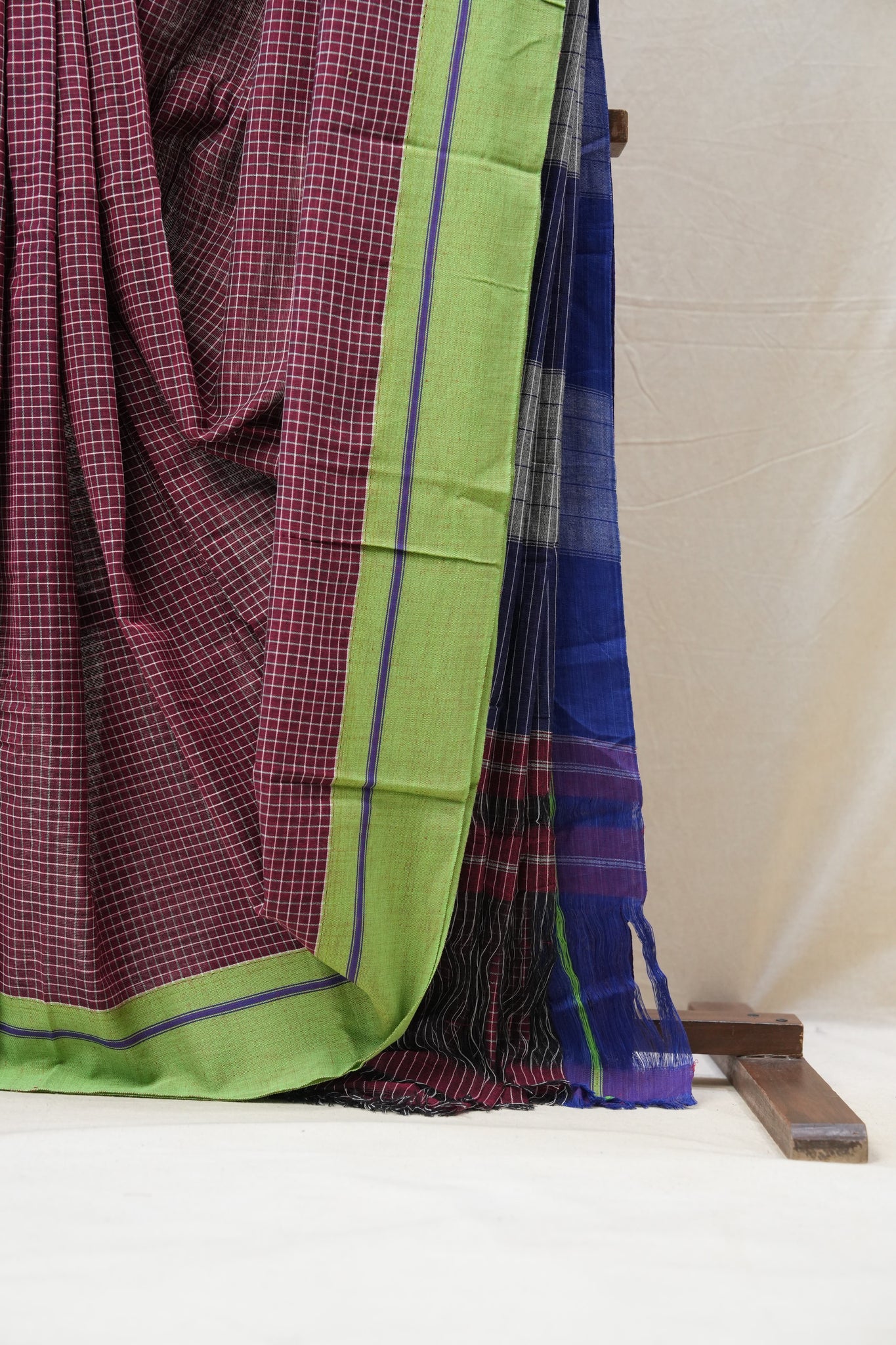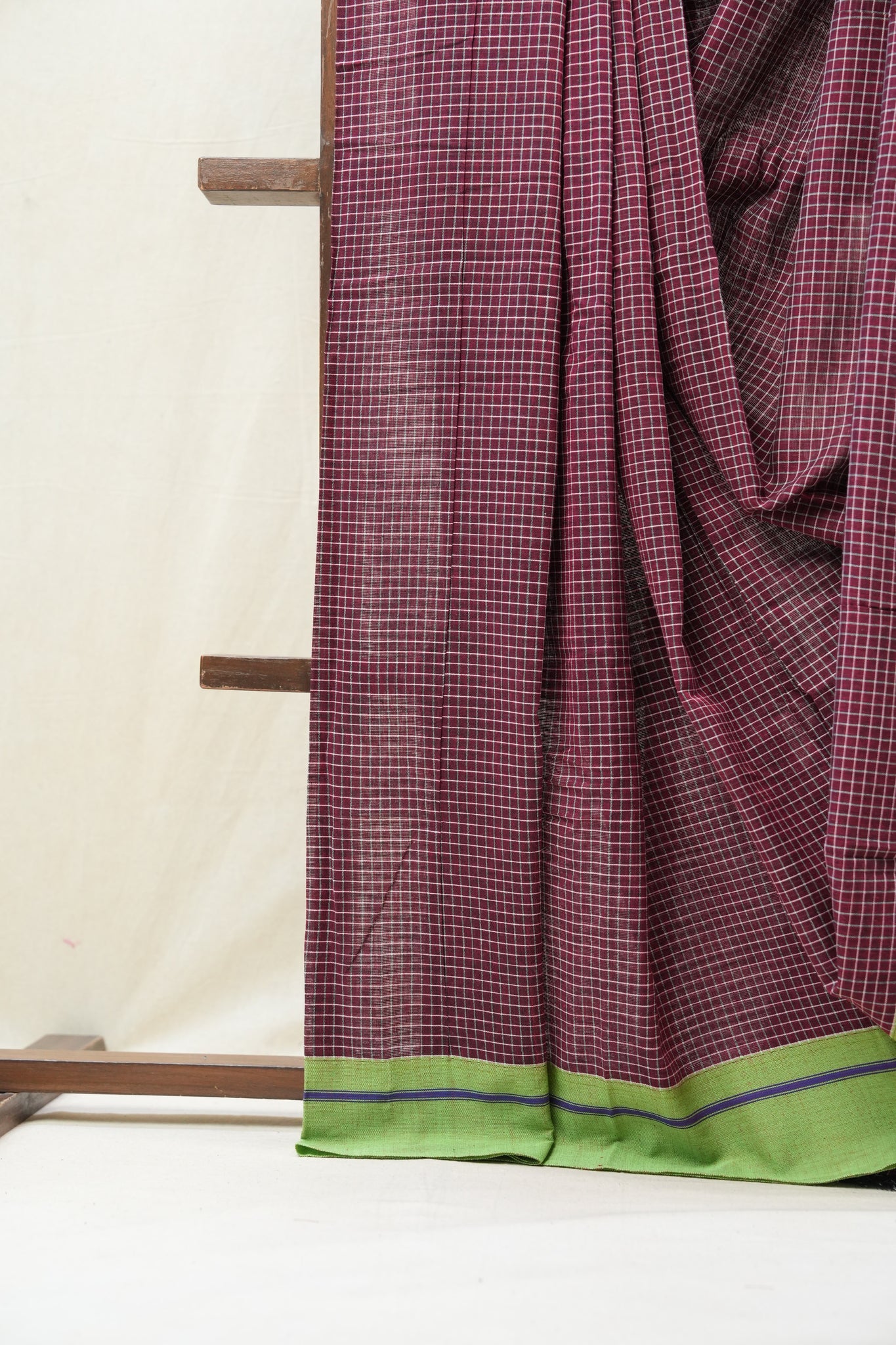 Maroon Big Checks Cotton Patteda Anchu Saree - SRMPAS274