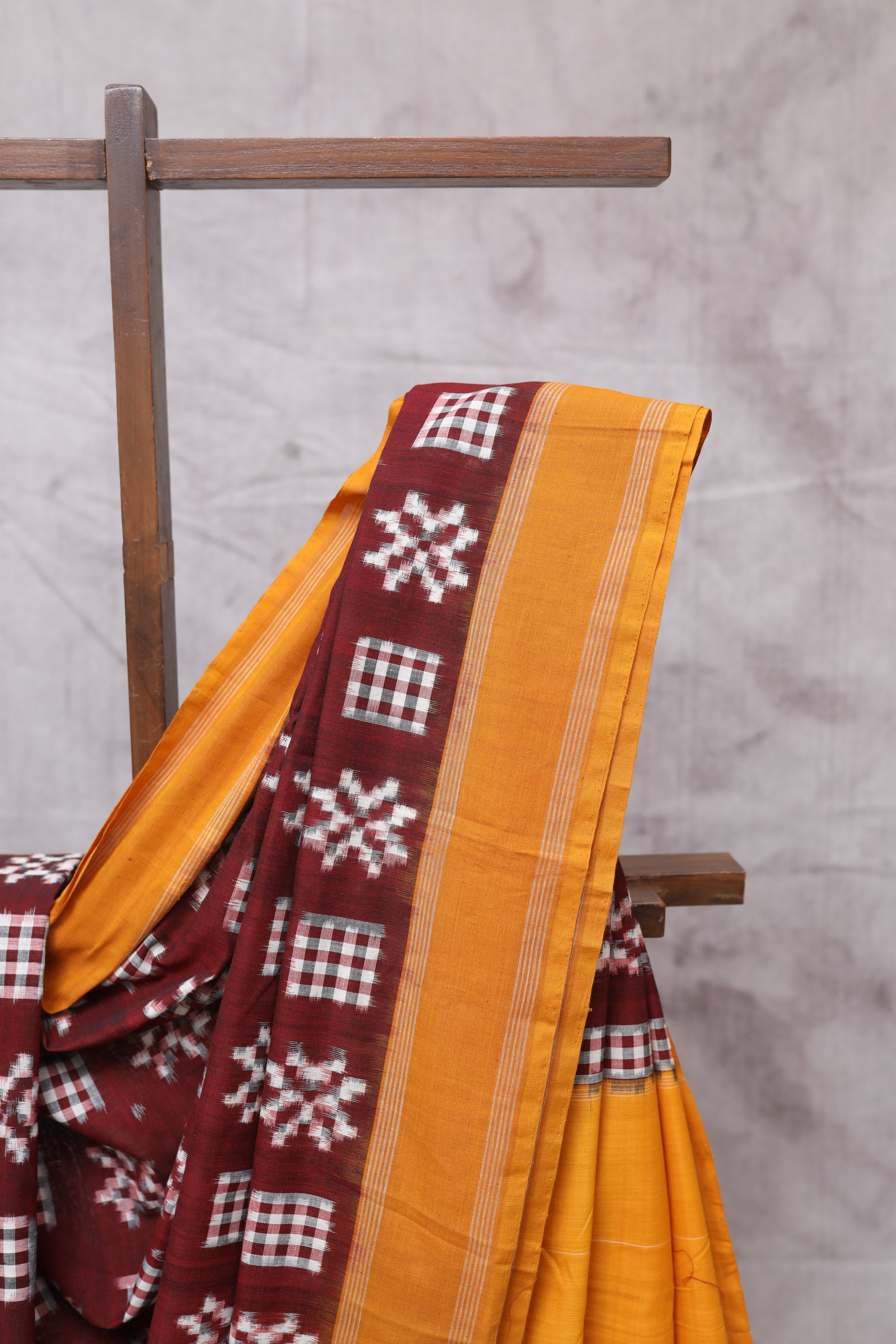 Maroon Pochampalli Cotton Ikat Saree-SRMPCIS127