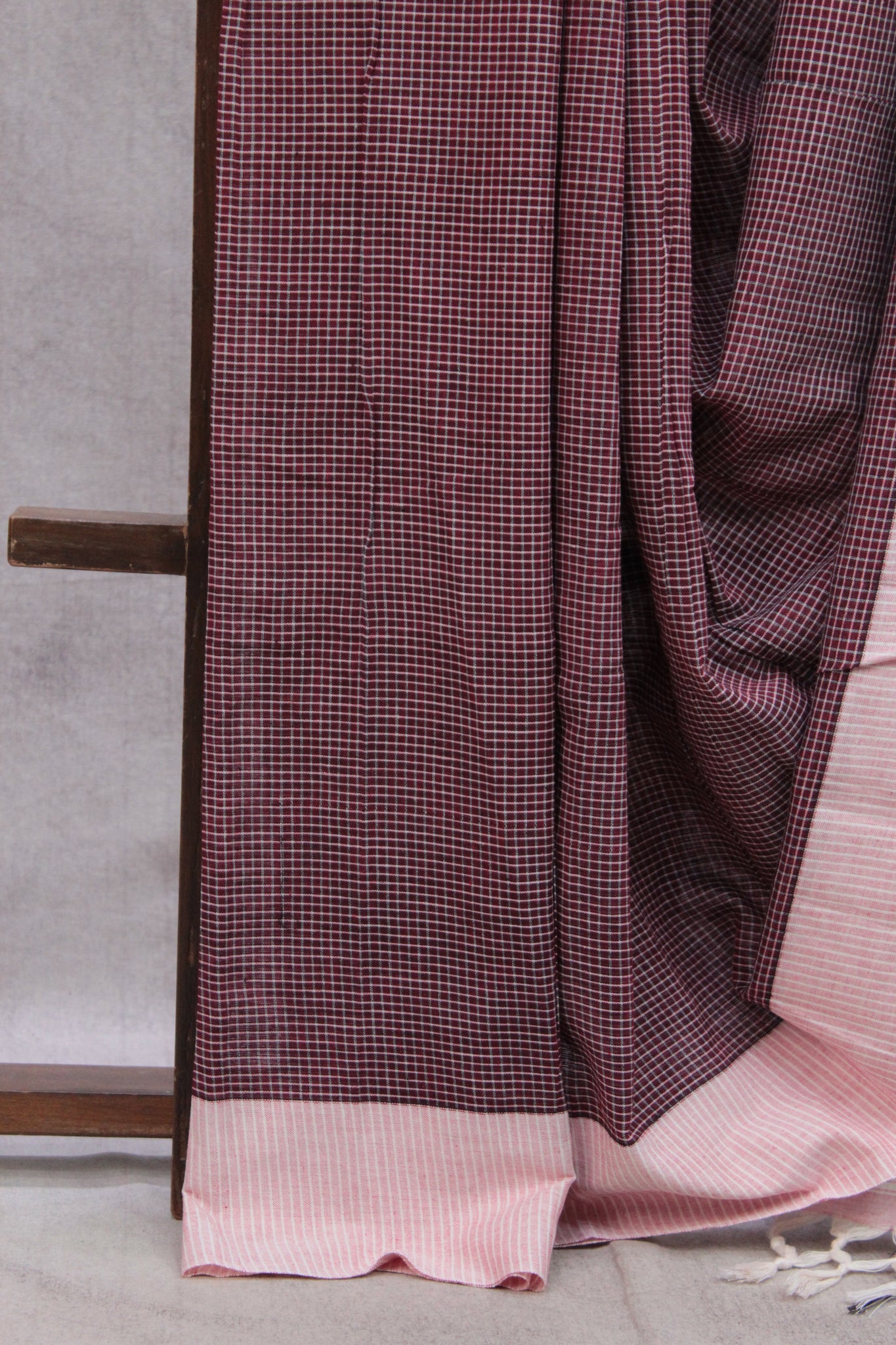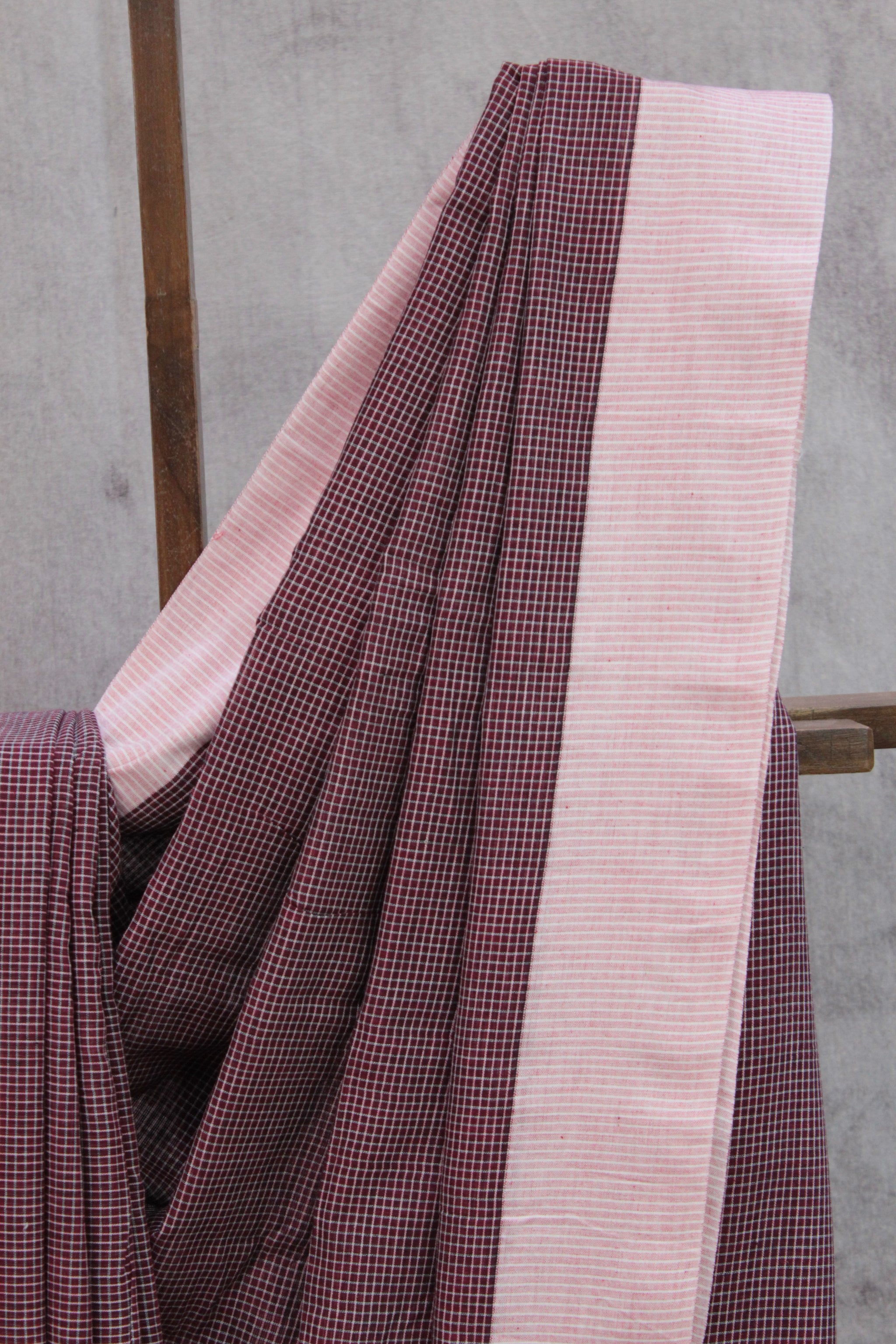 Maroon Small Checks Cotton Patteda Anchu Saree - SRMPAS135