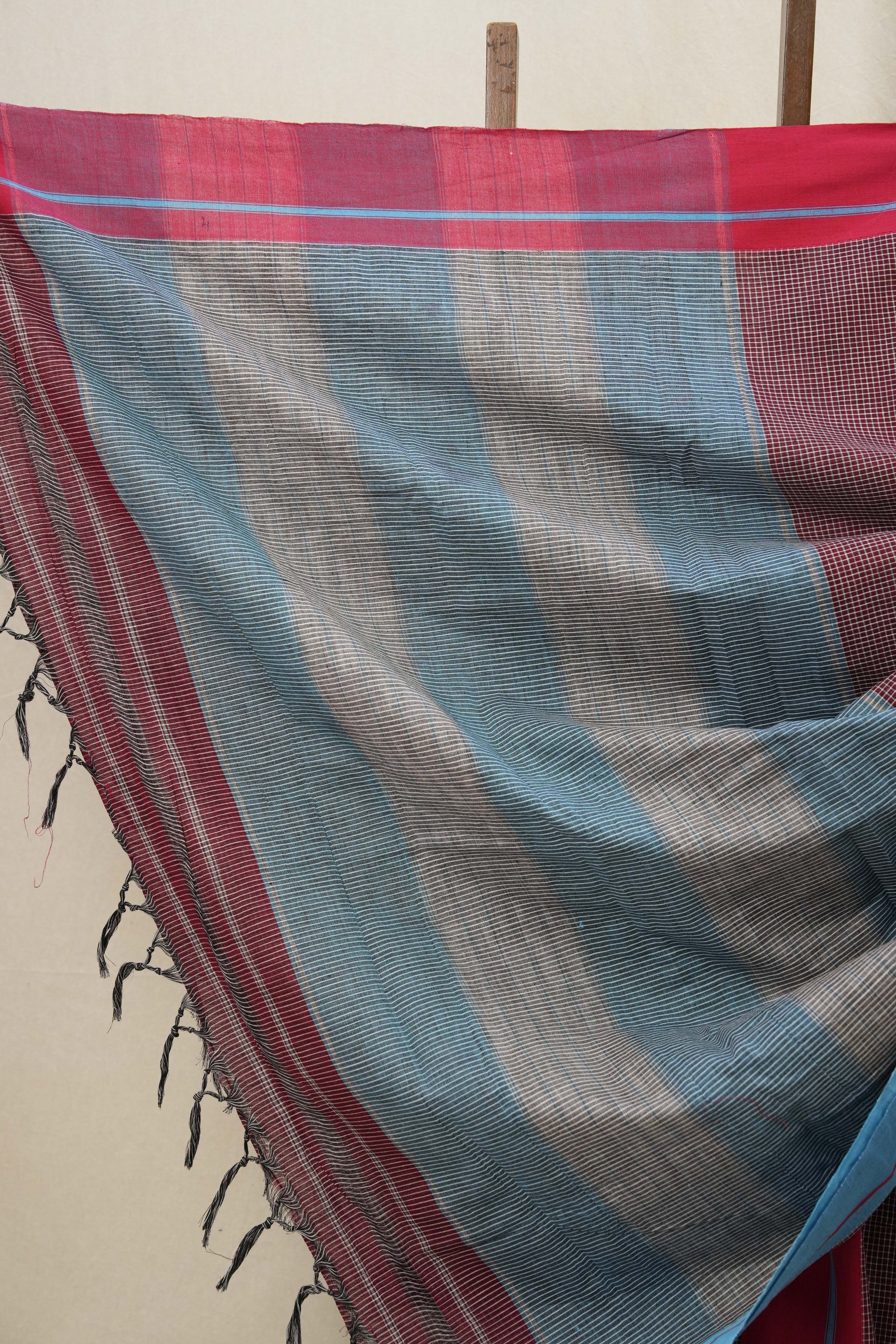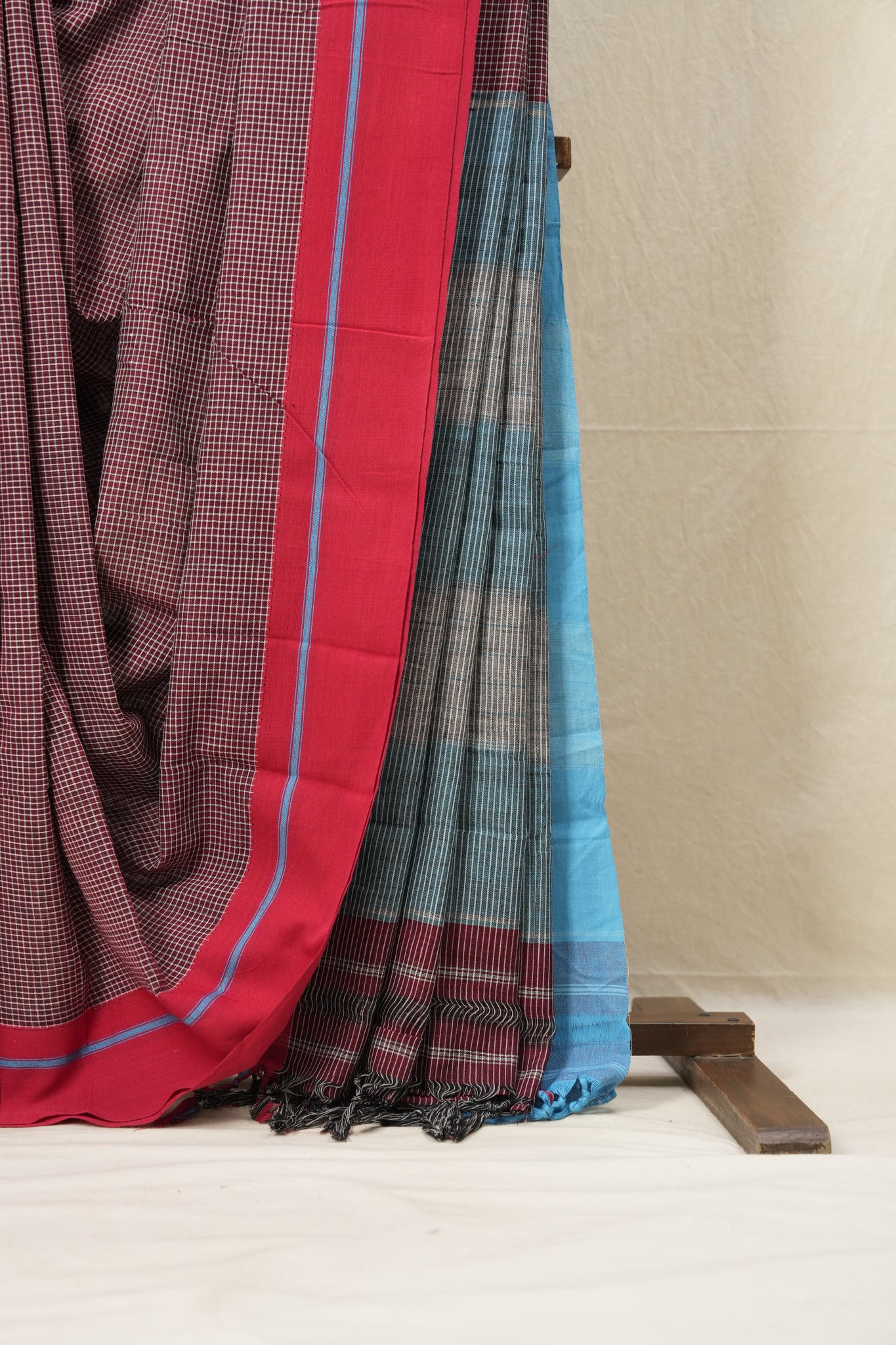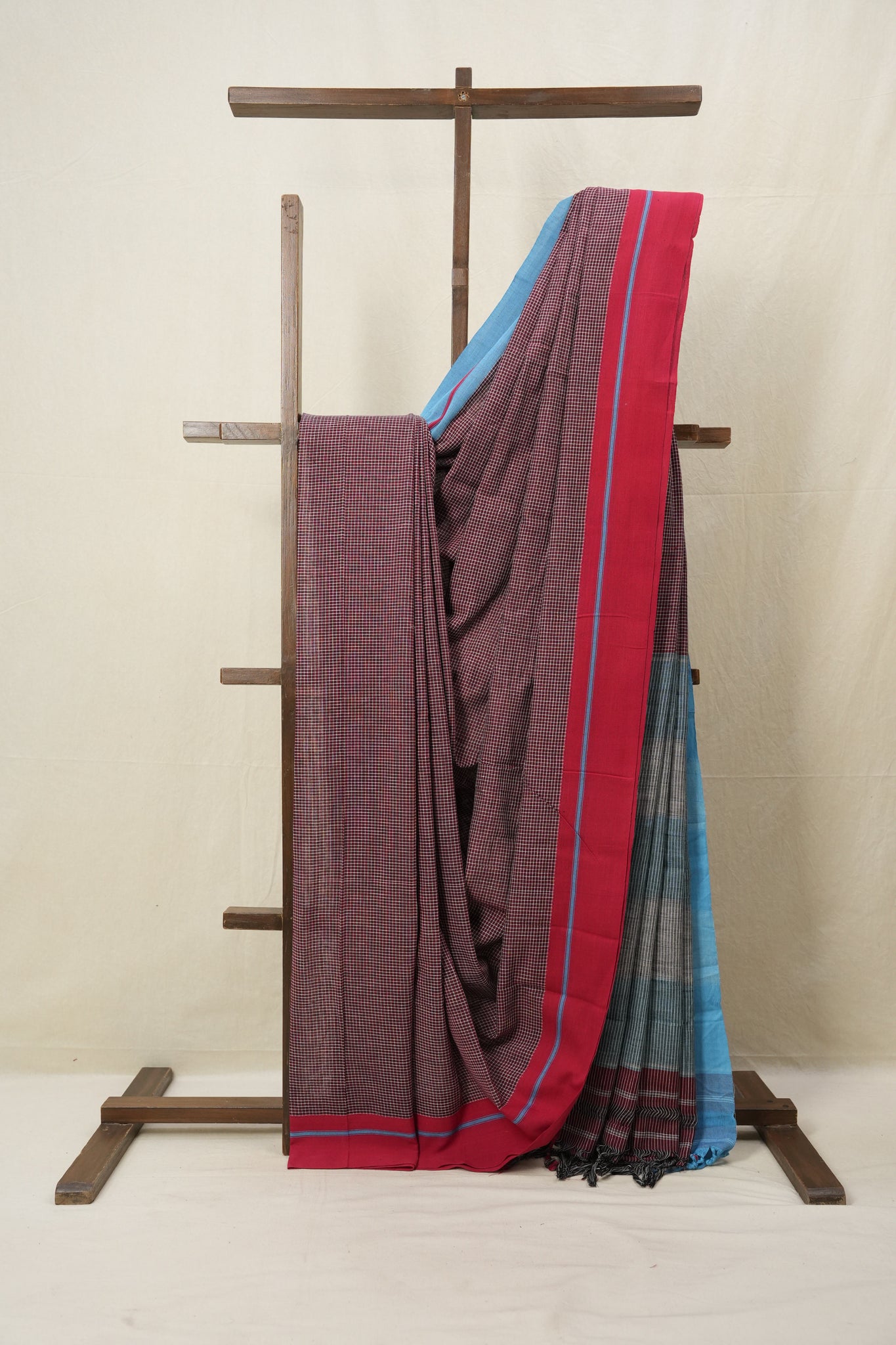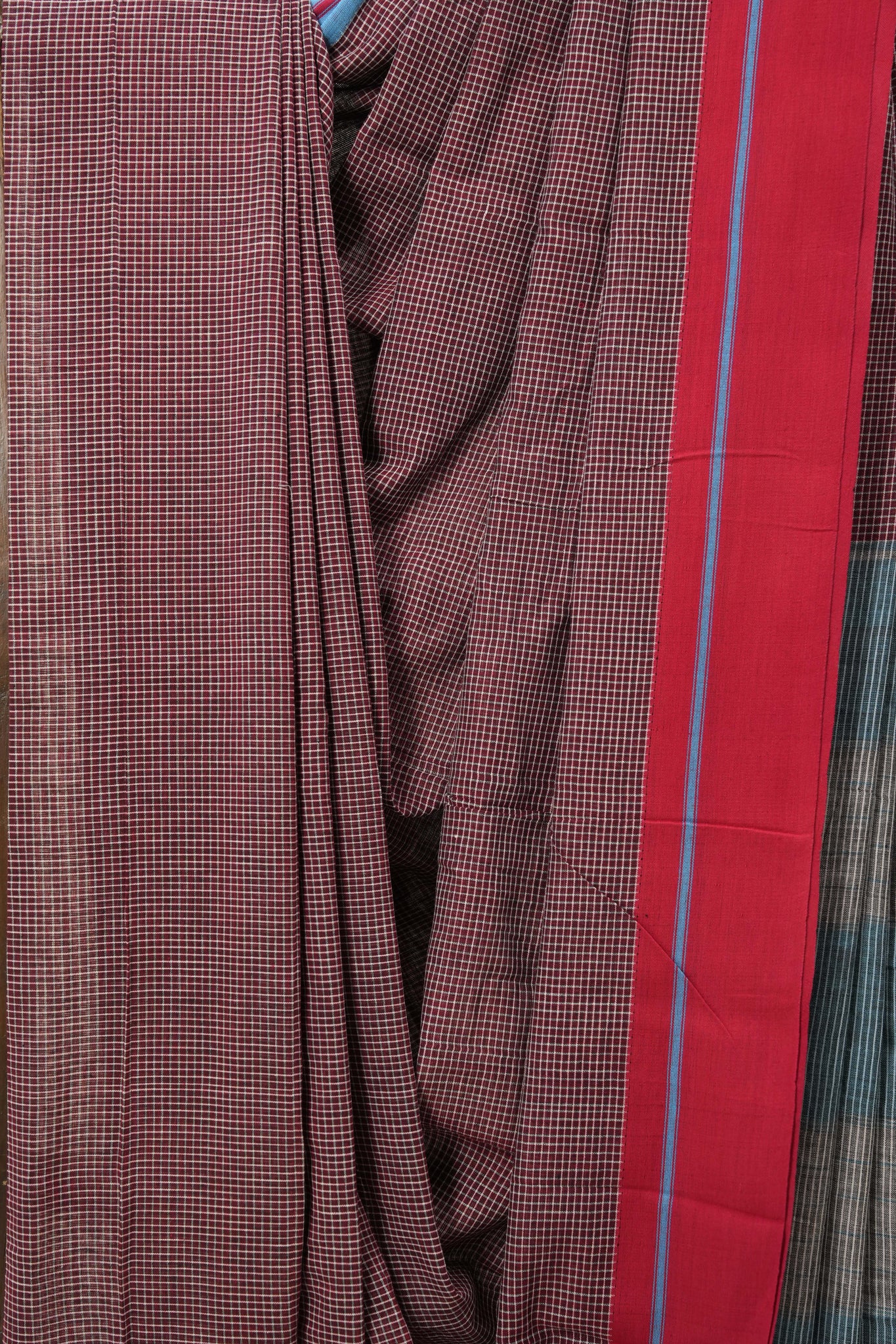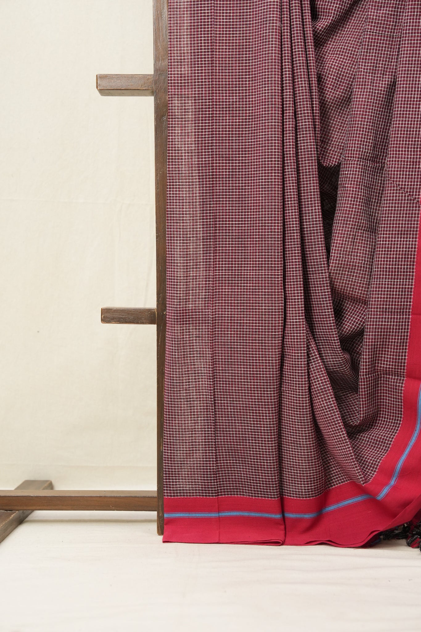 Maroon Small Checks Cotton Patteda Anchu Saree - SRMPAS225