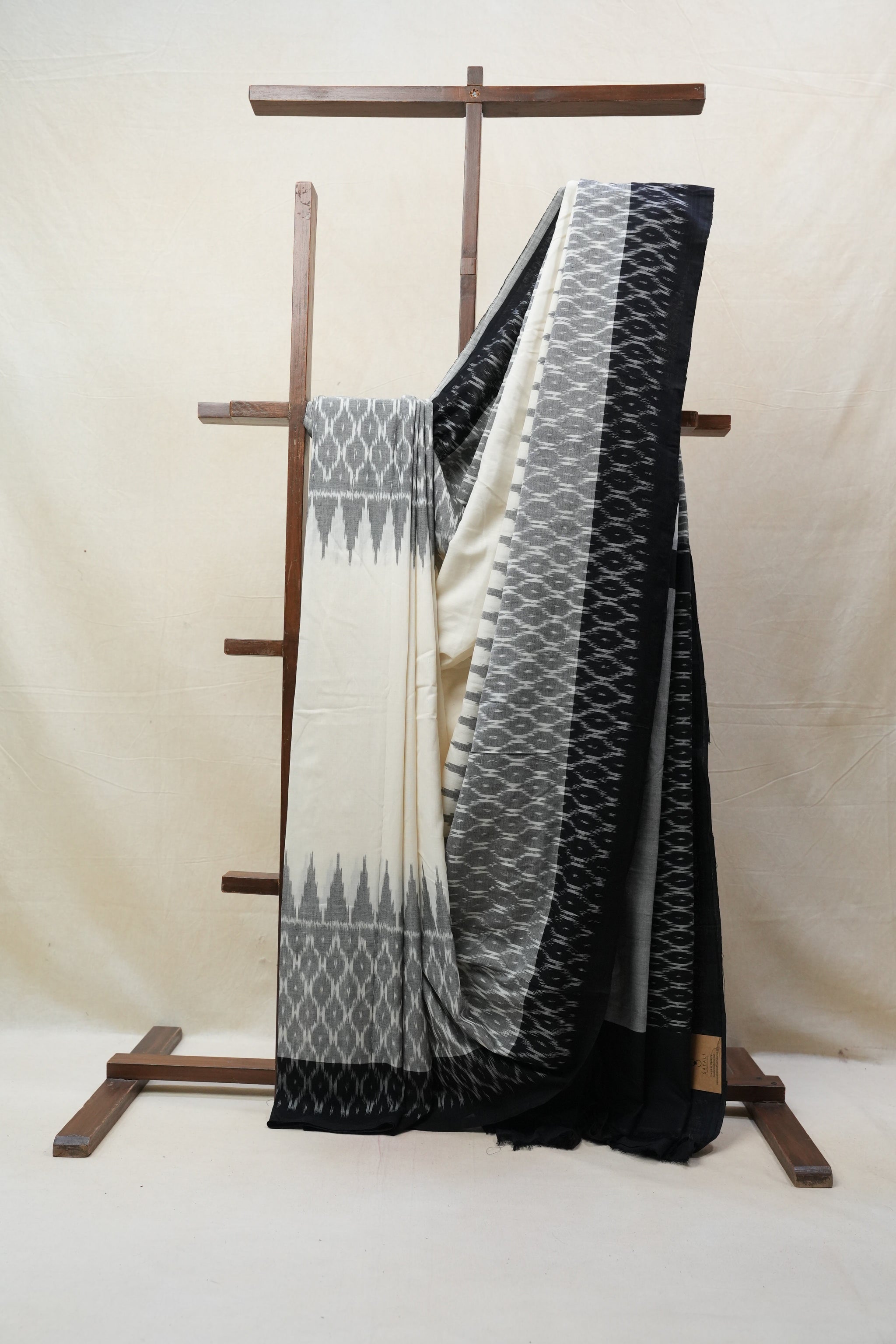 Off White Pochampalli Cotton Ikat Saree - SROWPCIS515