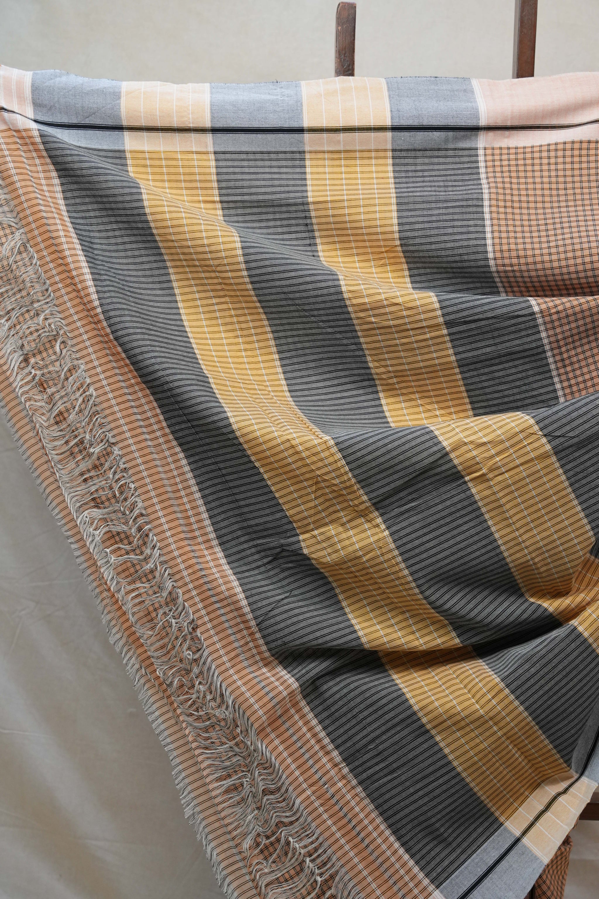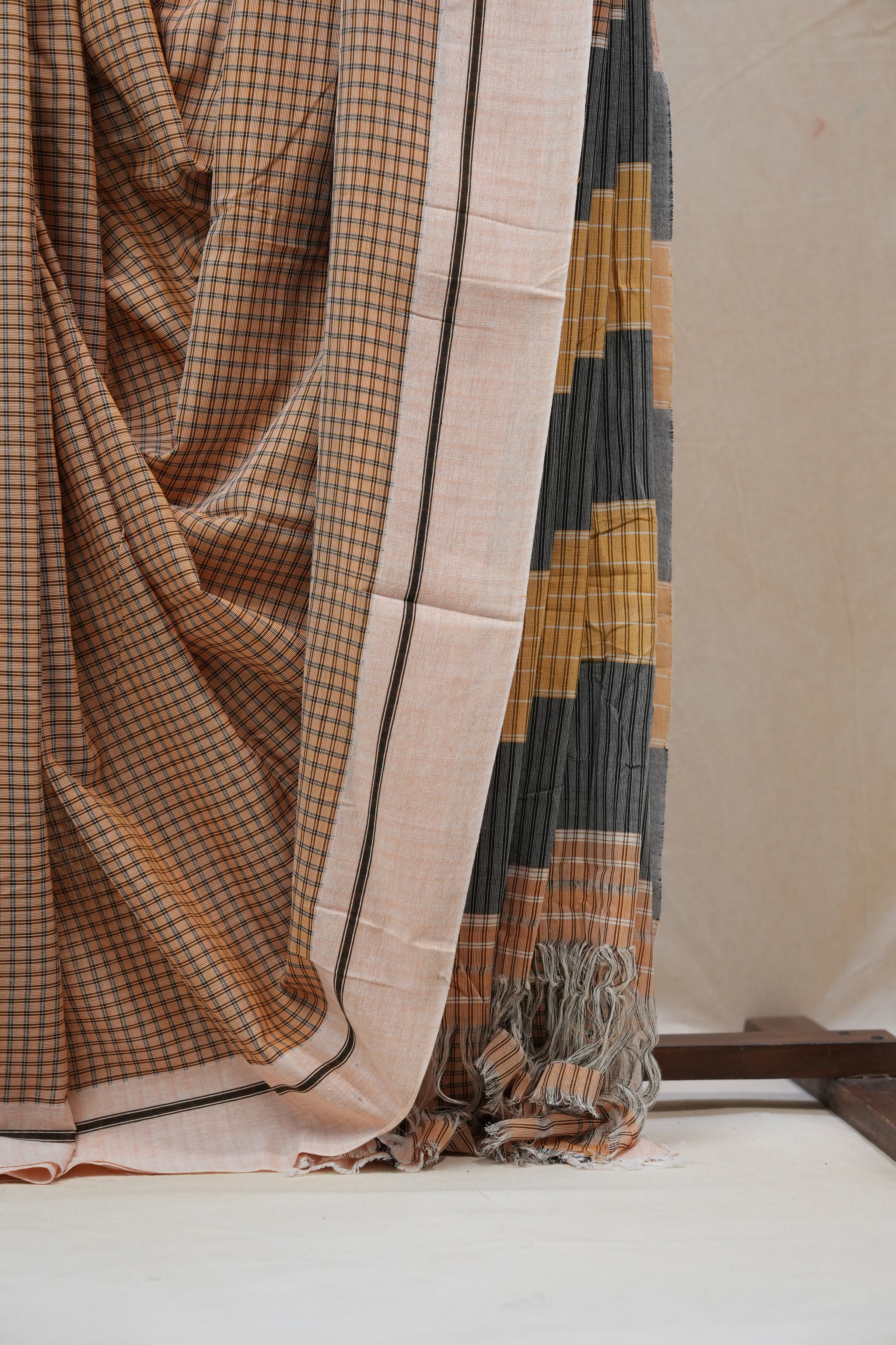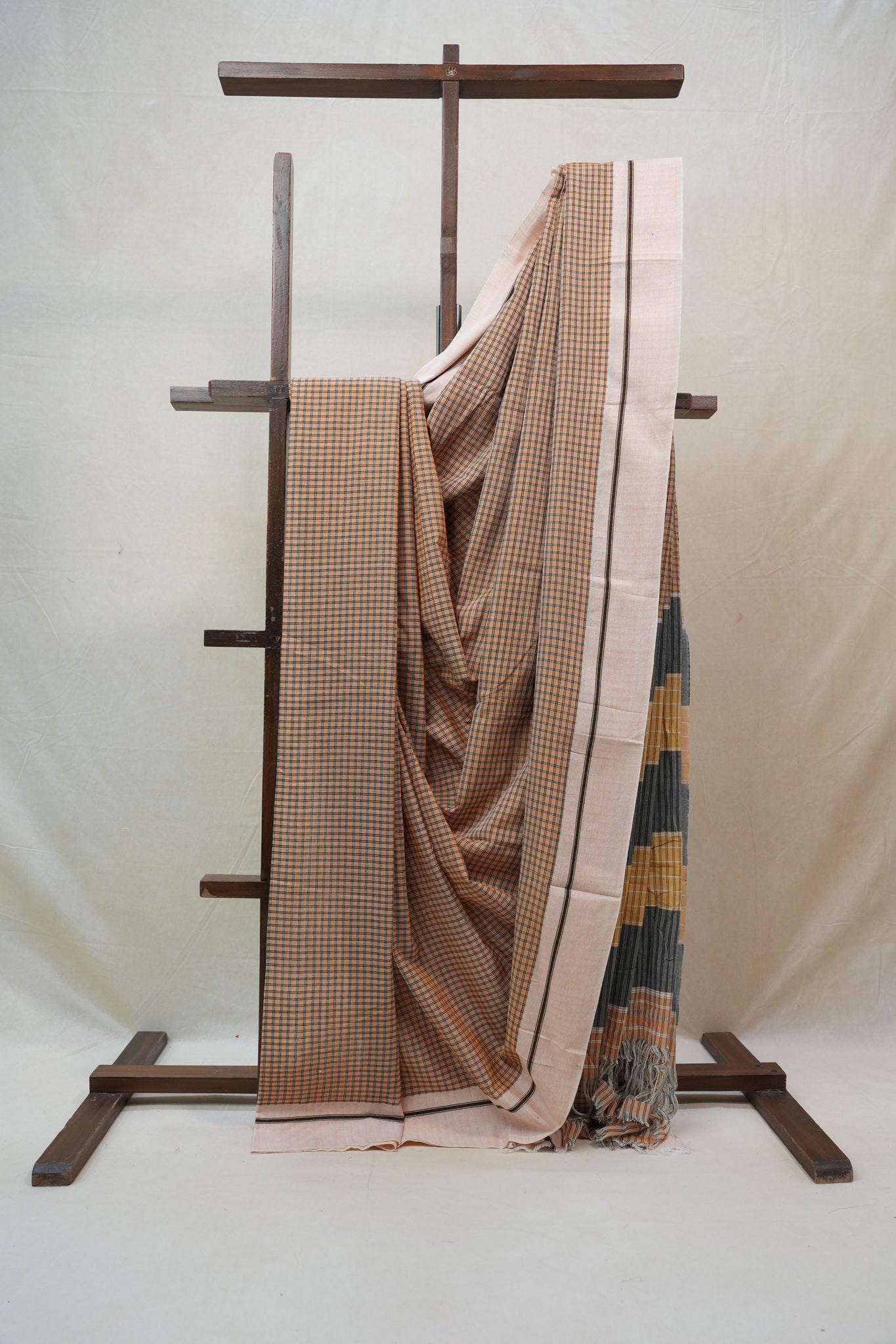 Peach Big Checks Cotton Patteda Anchu Saree - SRPPAS202