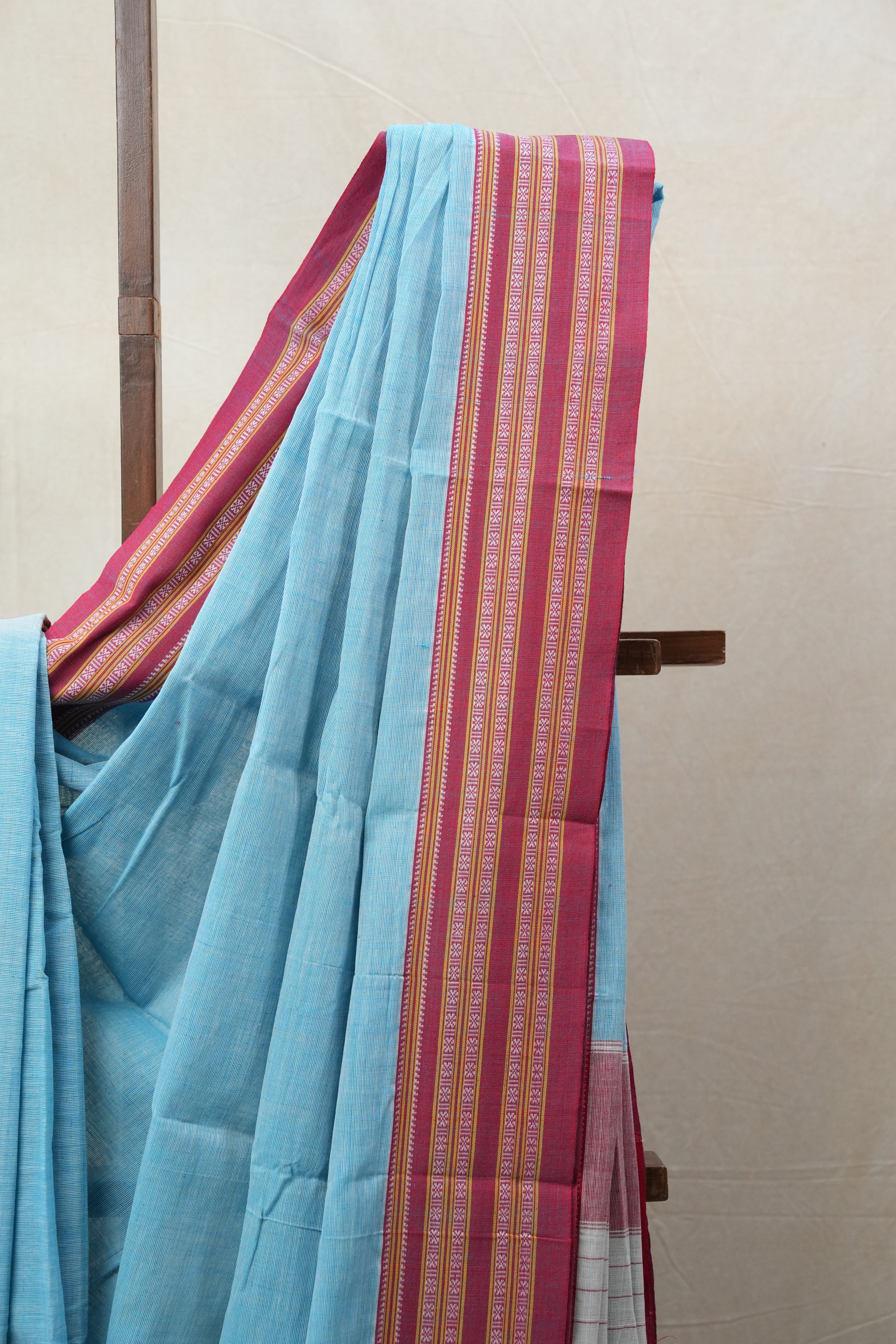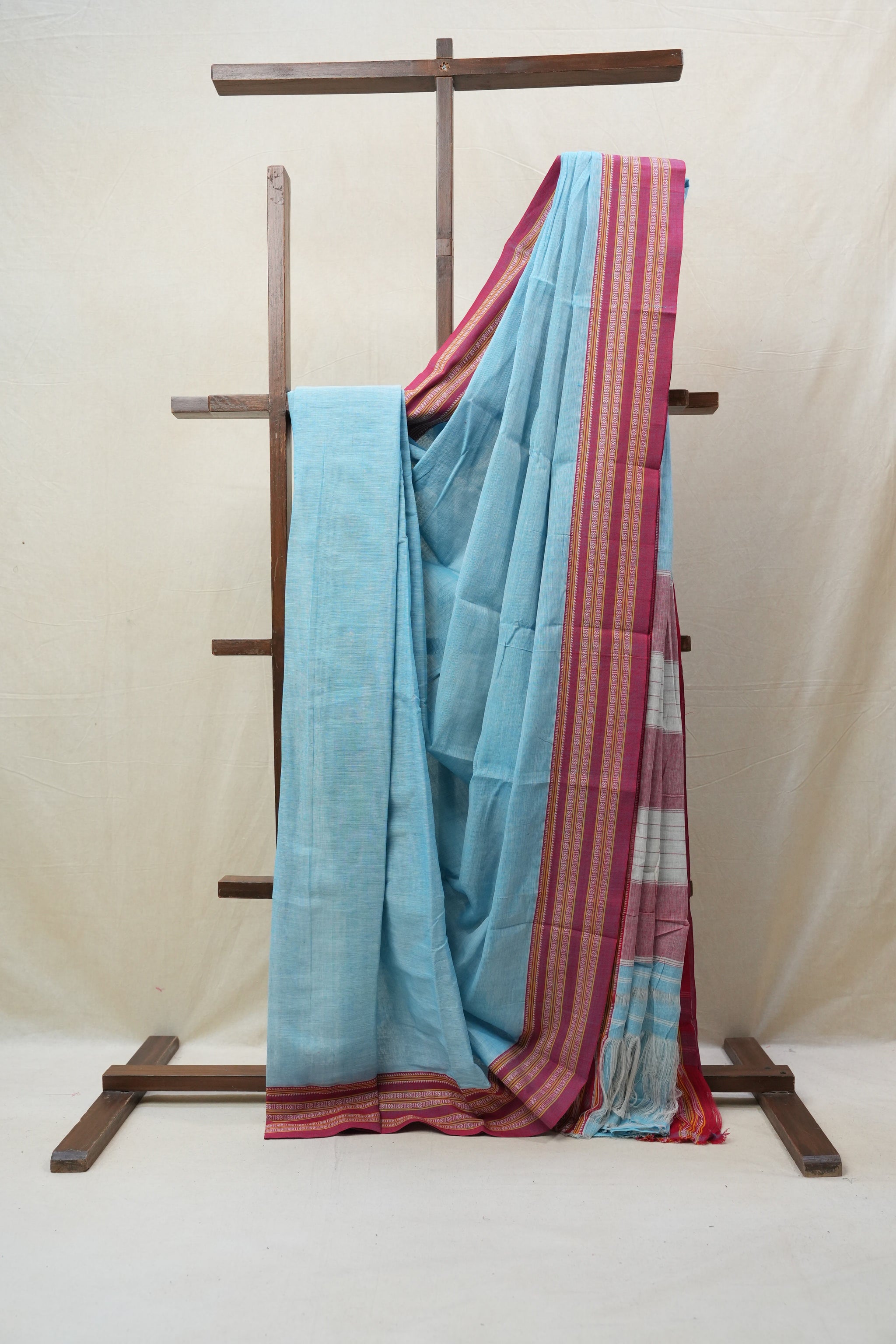 Sky Blue Cotton Patteda Anchu Saree - SRSBPAS273