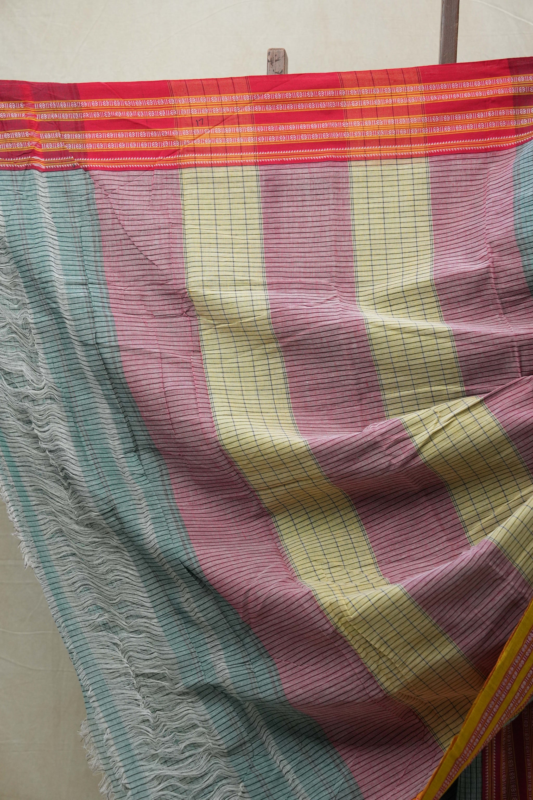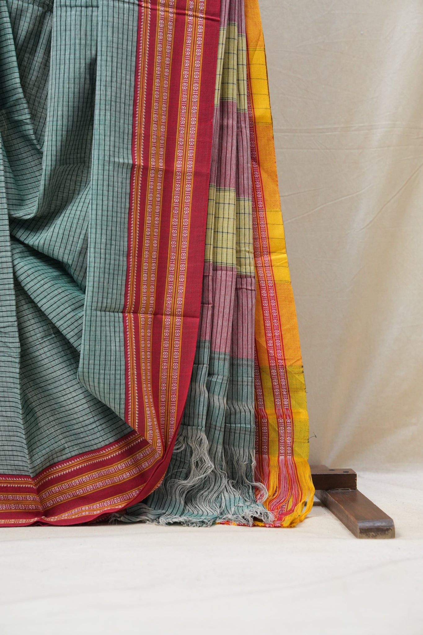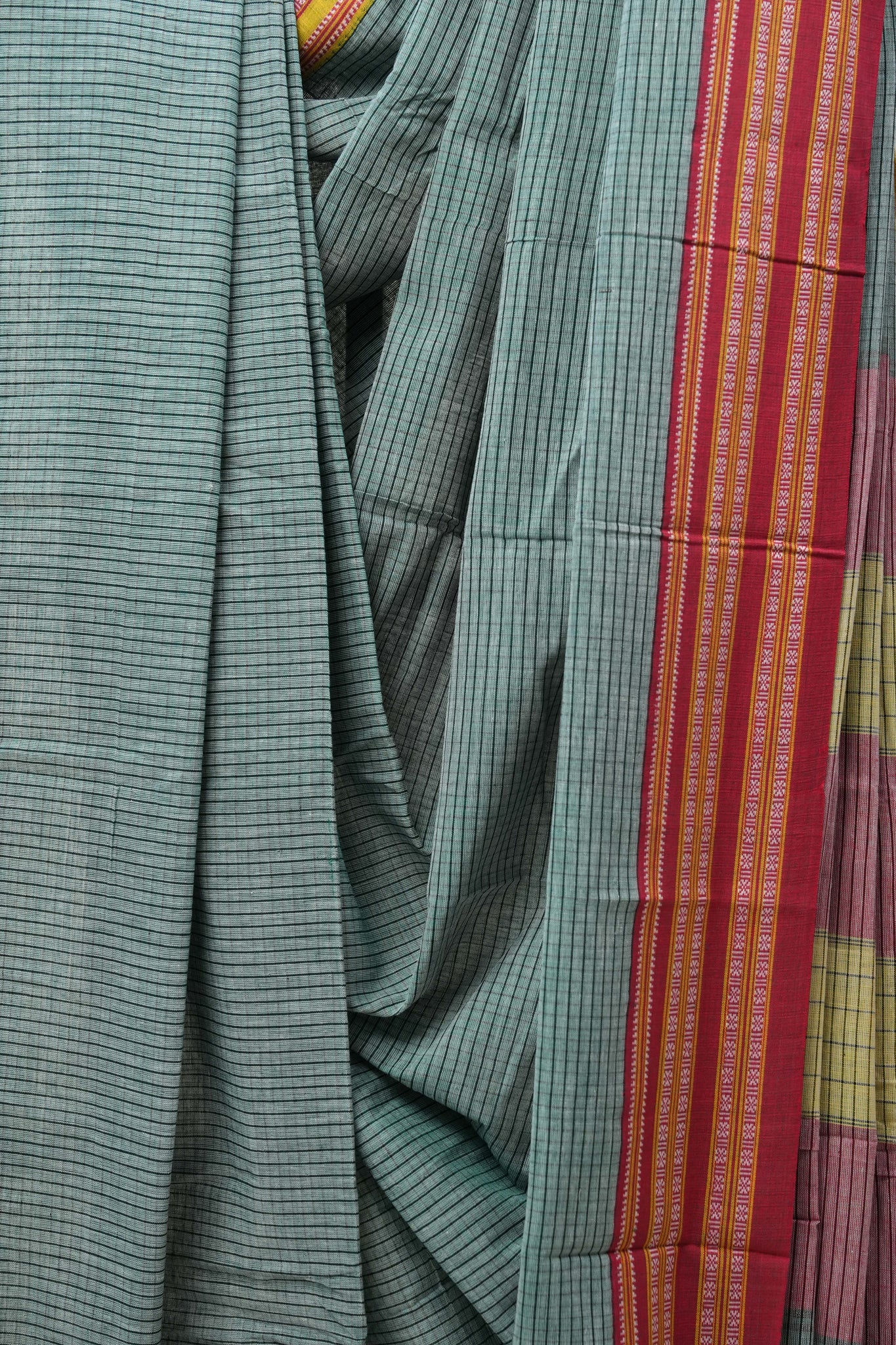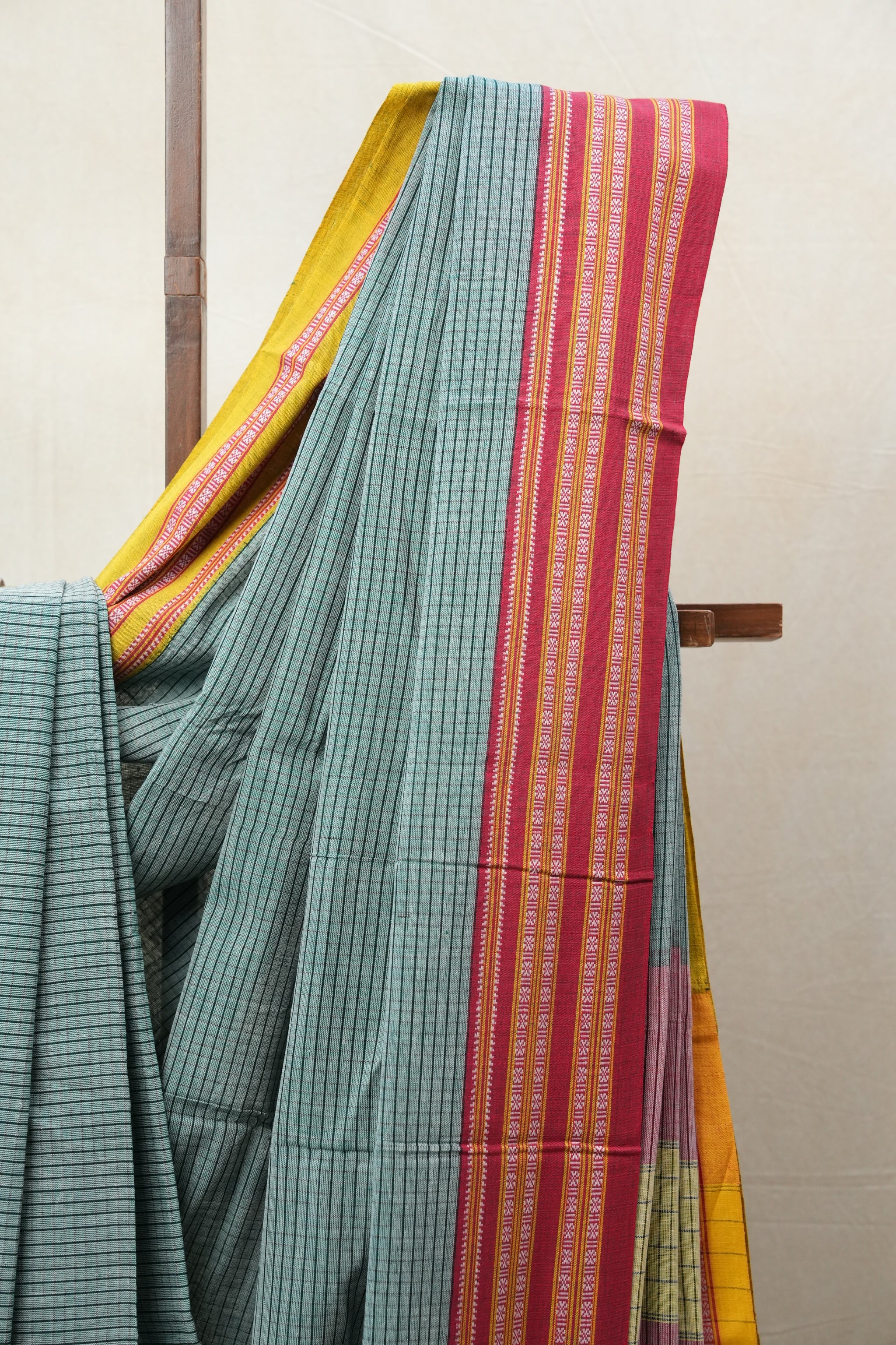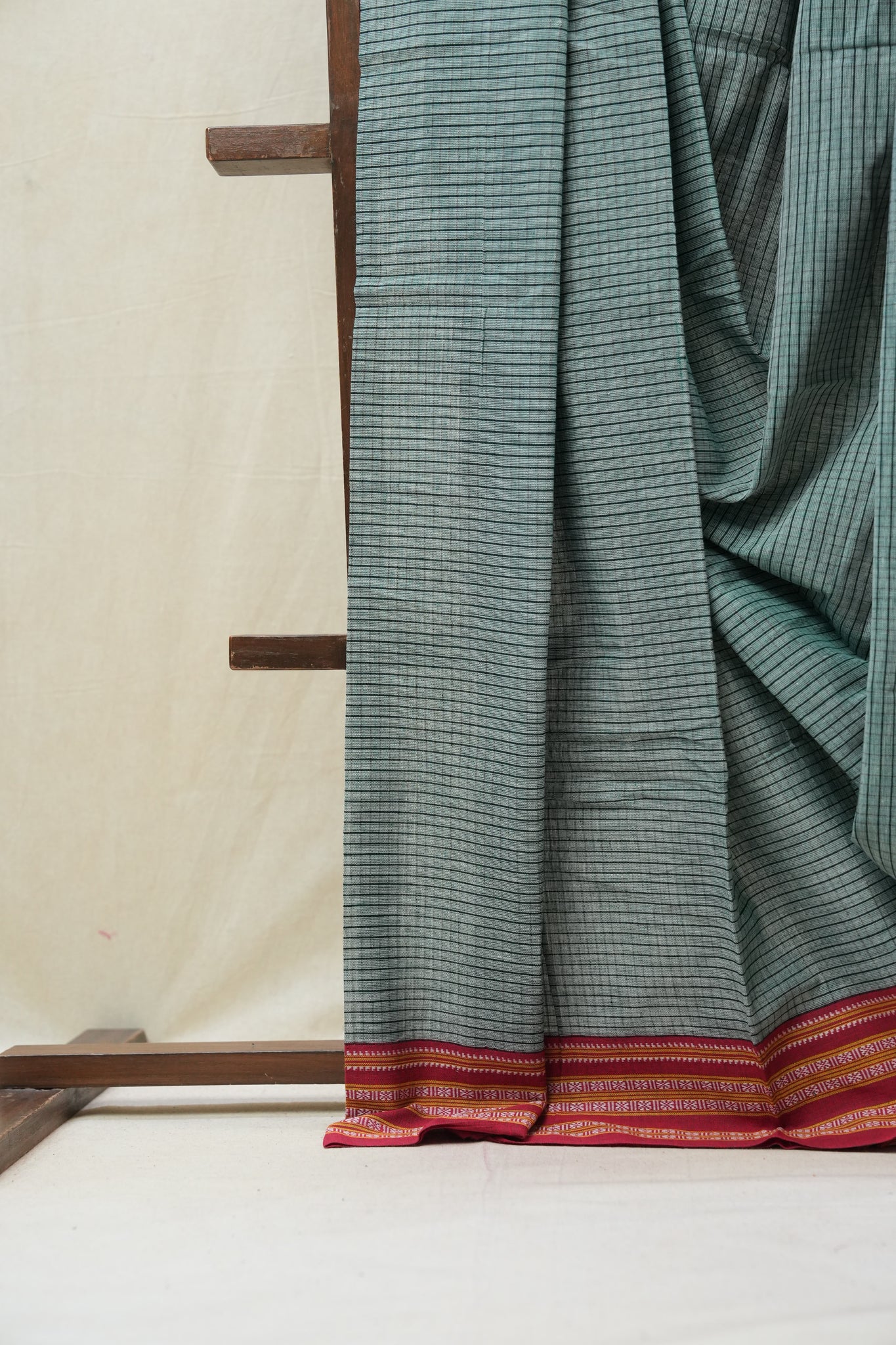 Sky Blue Small Checks Cotton Patteda Anchu Saree - SRSBPAS266