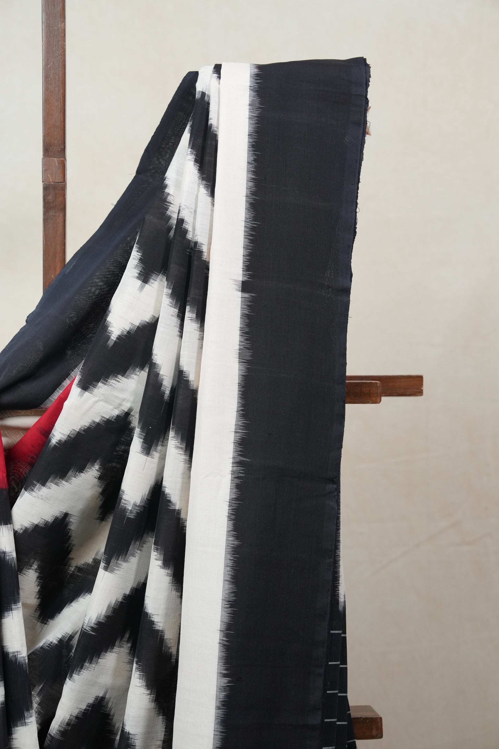White-Black Pochampalli Cotton Ikat Saree - SRWBPCIS461