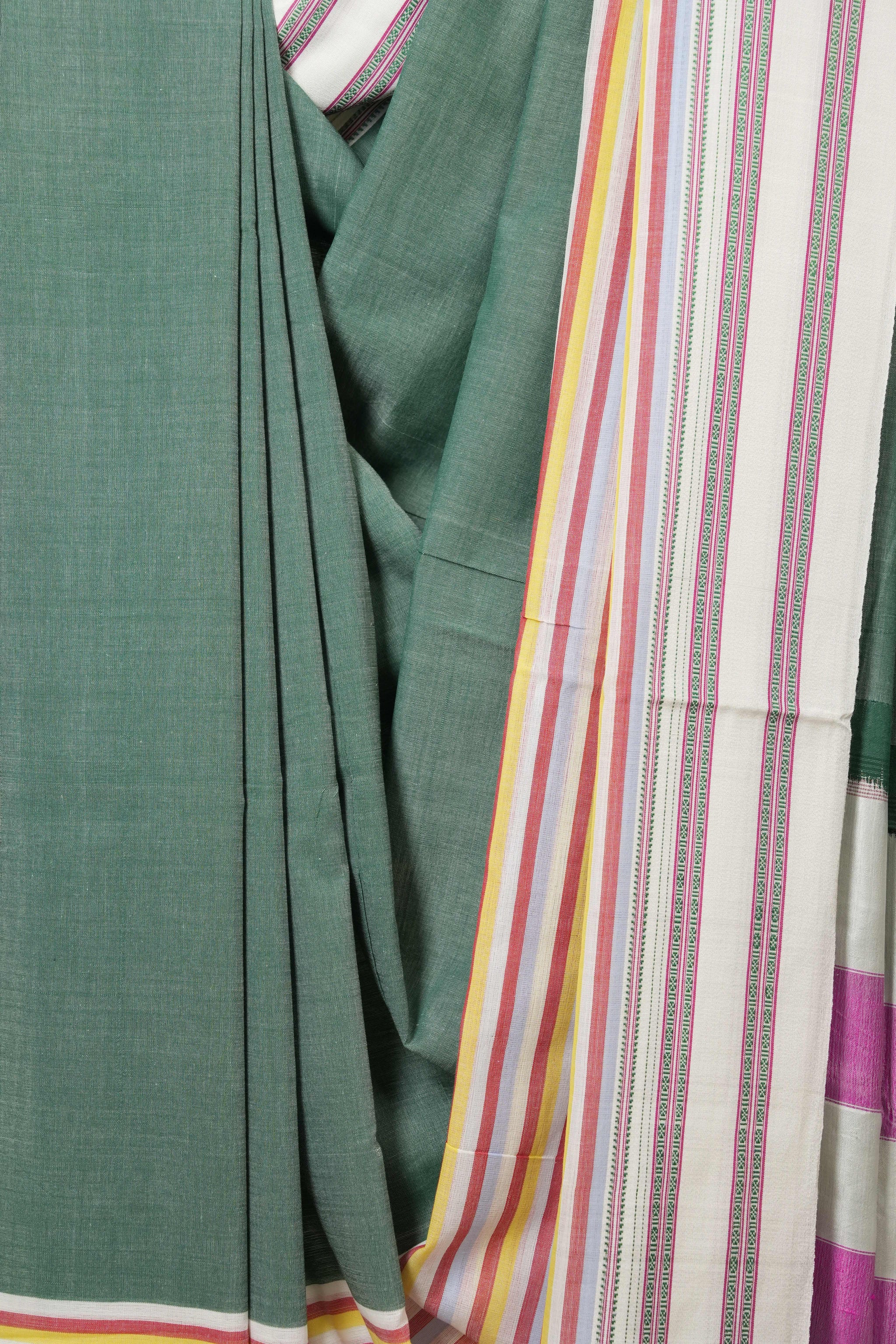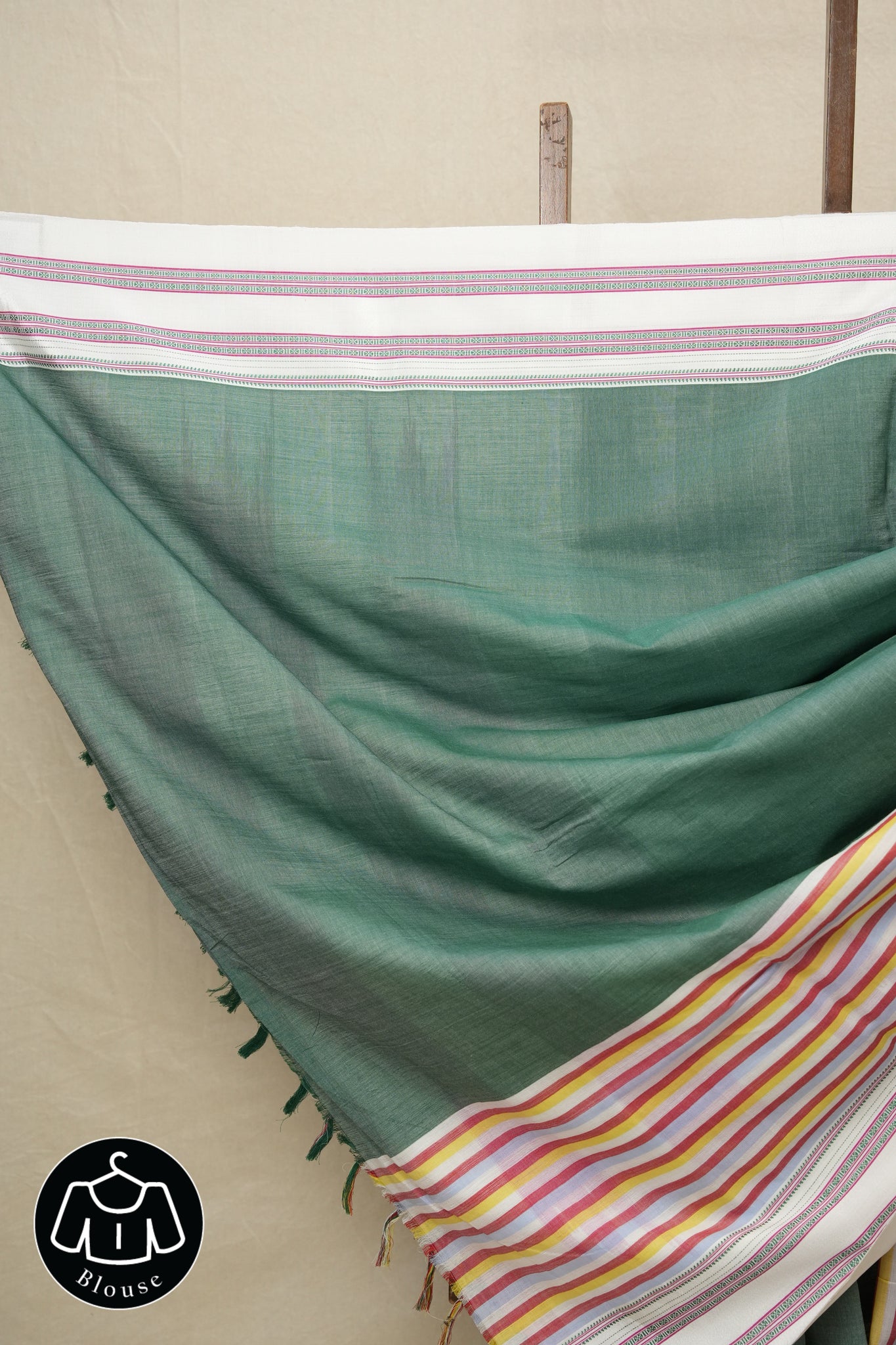 Green Cotton Ilkal Saree with Gayatri Border - SRGCIS494