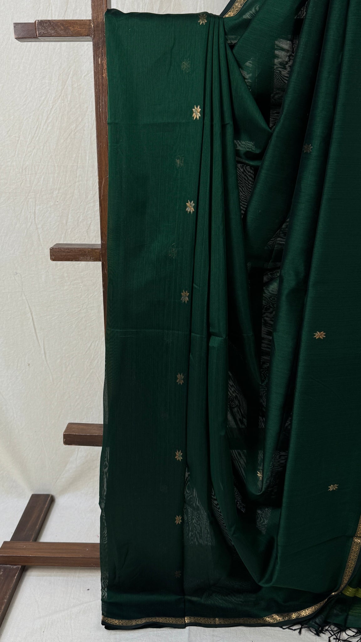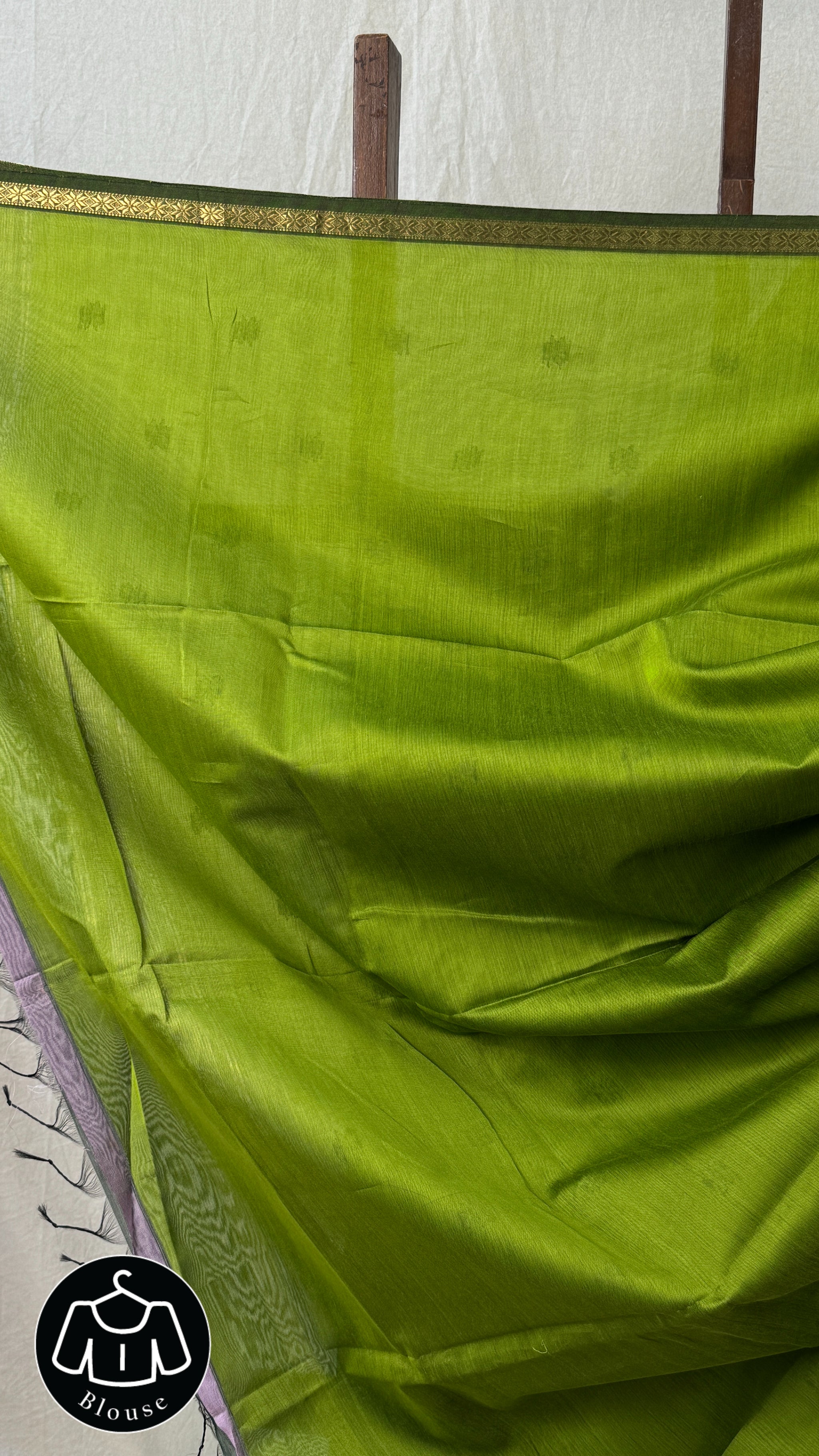 Work - This Maheshwari cotton silk saree features a golden sheen with contrast zari woven border and pallu.