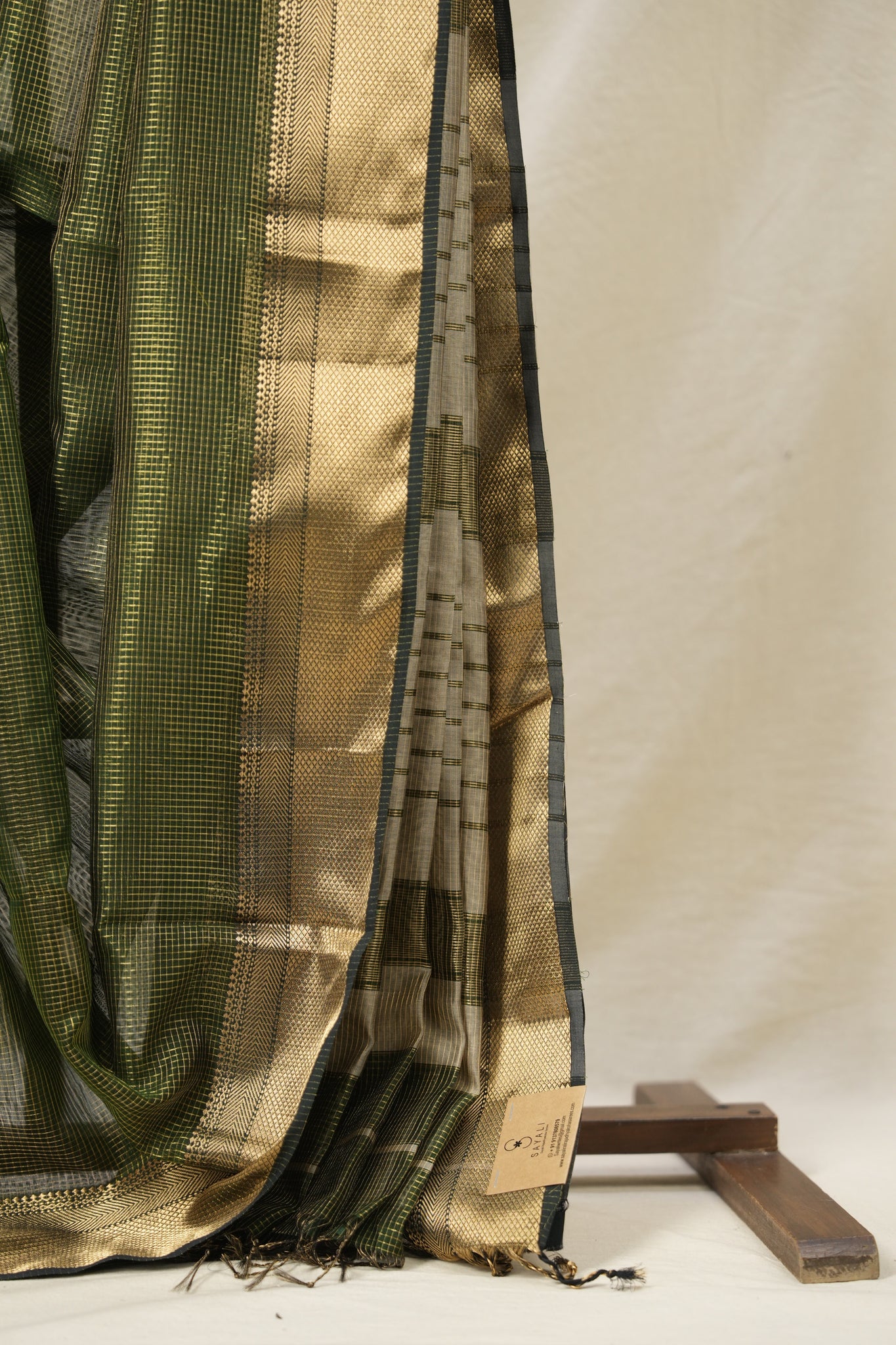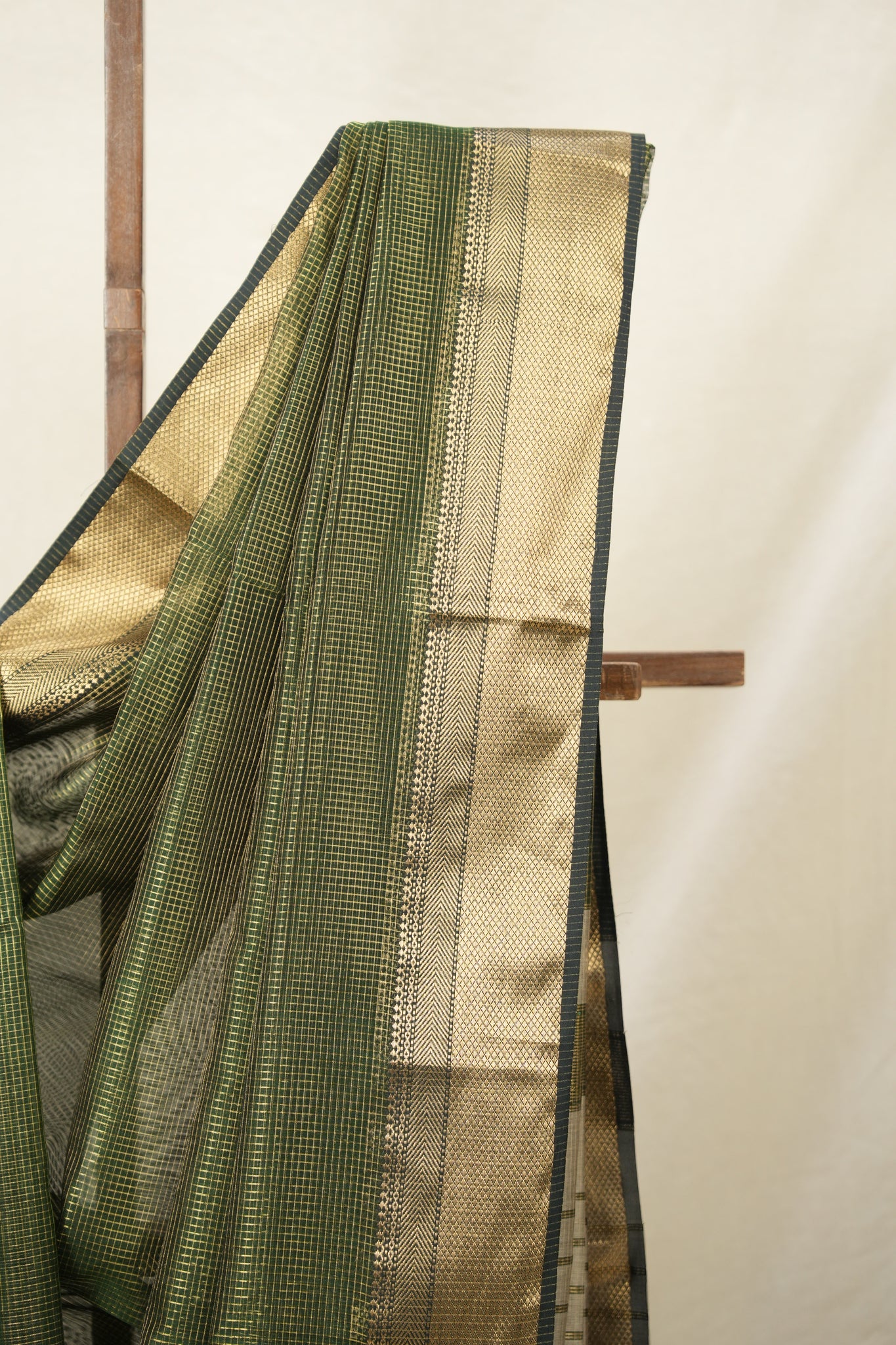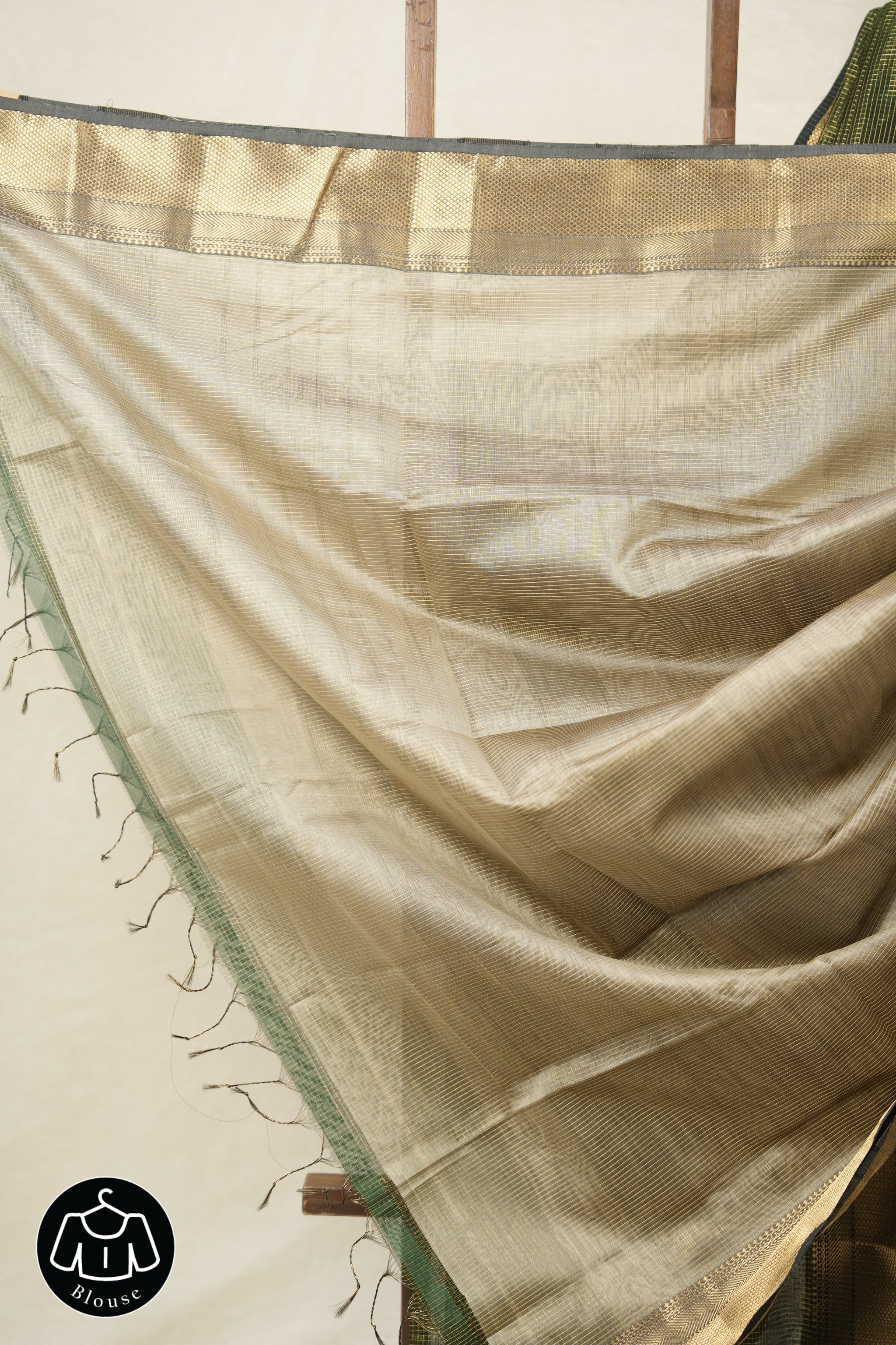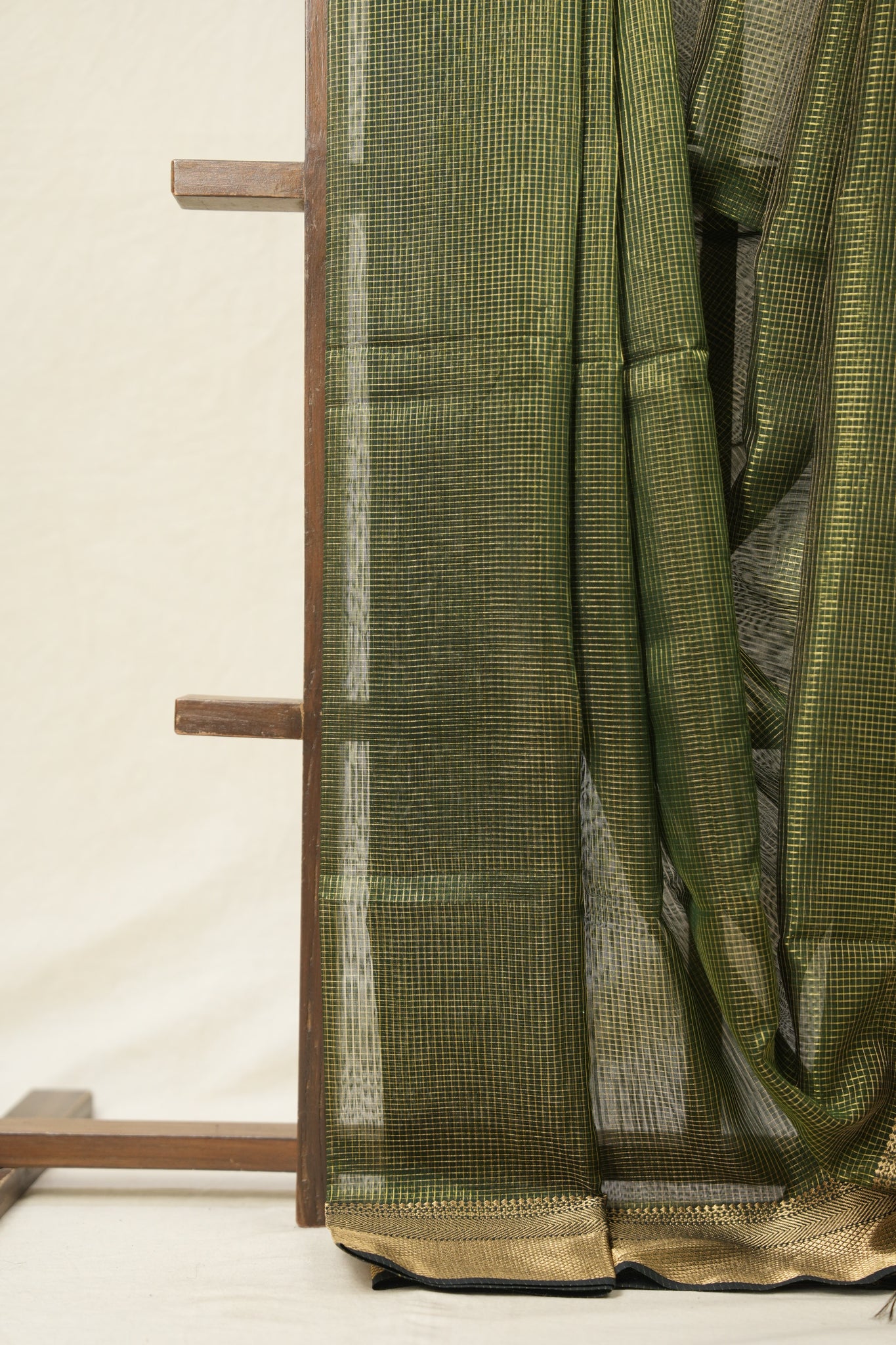 Work - Maheshwari tissue saree with a checkered body, highlighted by a green sheen and an elegant zari border.