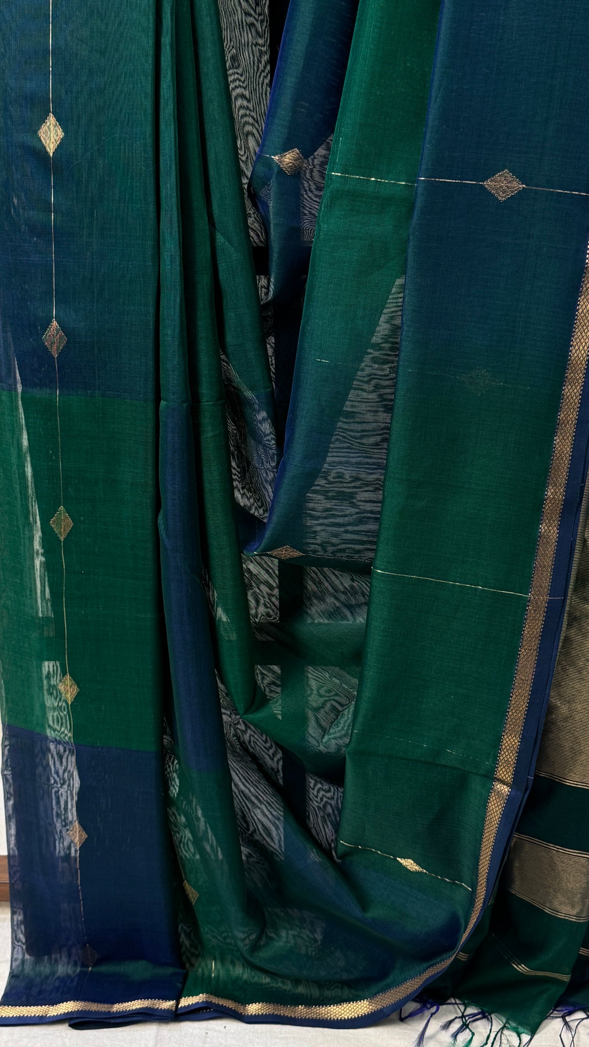 Two Tone Green Maheshwari Saree - SRTTGMS720