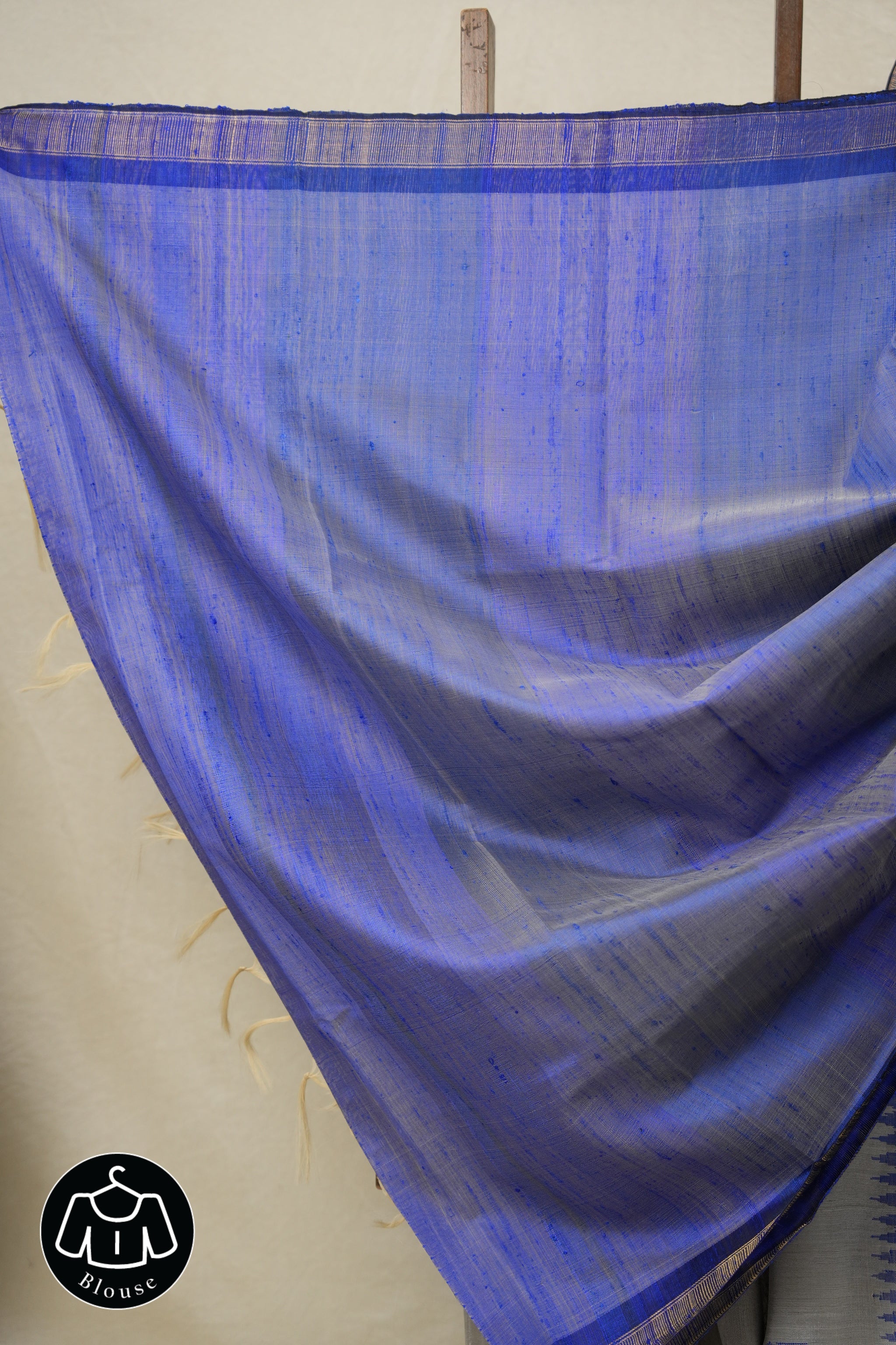 Work - This raw silk saree features a light grey with butti all over body and a solid border, showcasing a rich and elegant look.