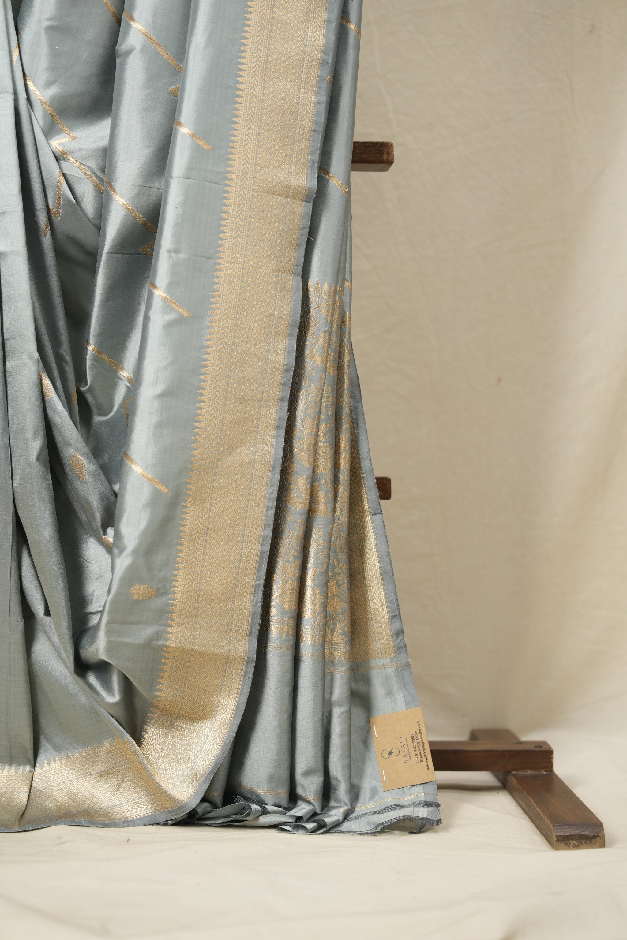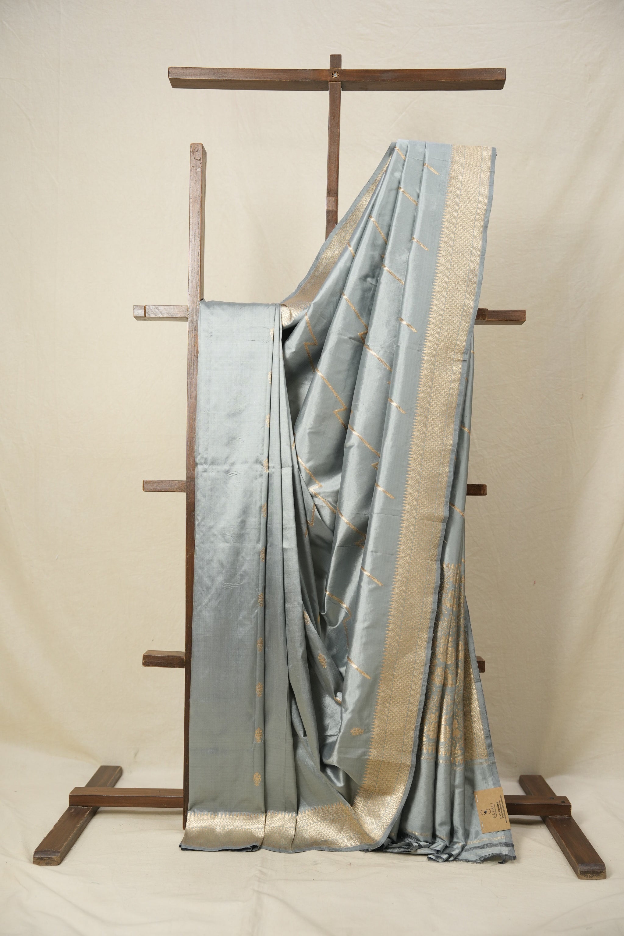 Metallic Grey Banarasi Silk Saree - SRMGBSS838