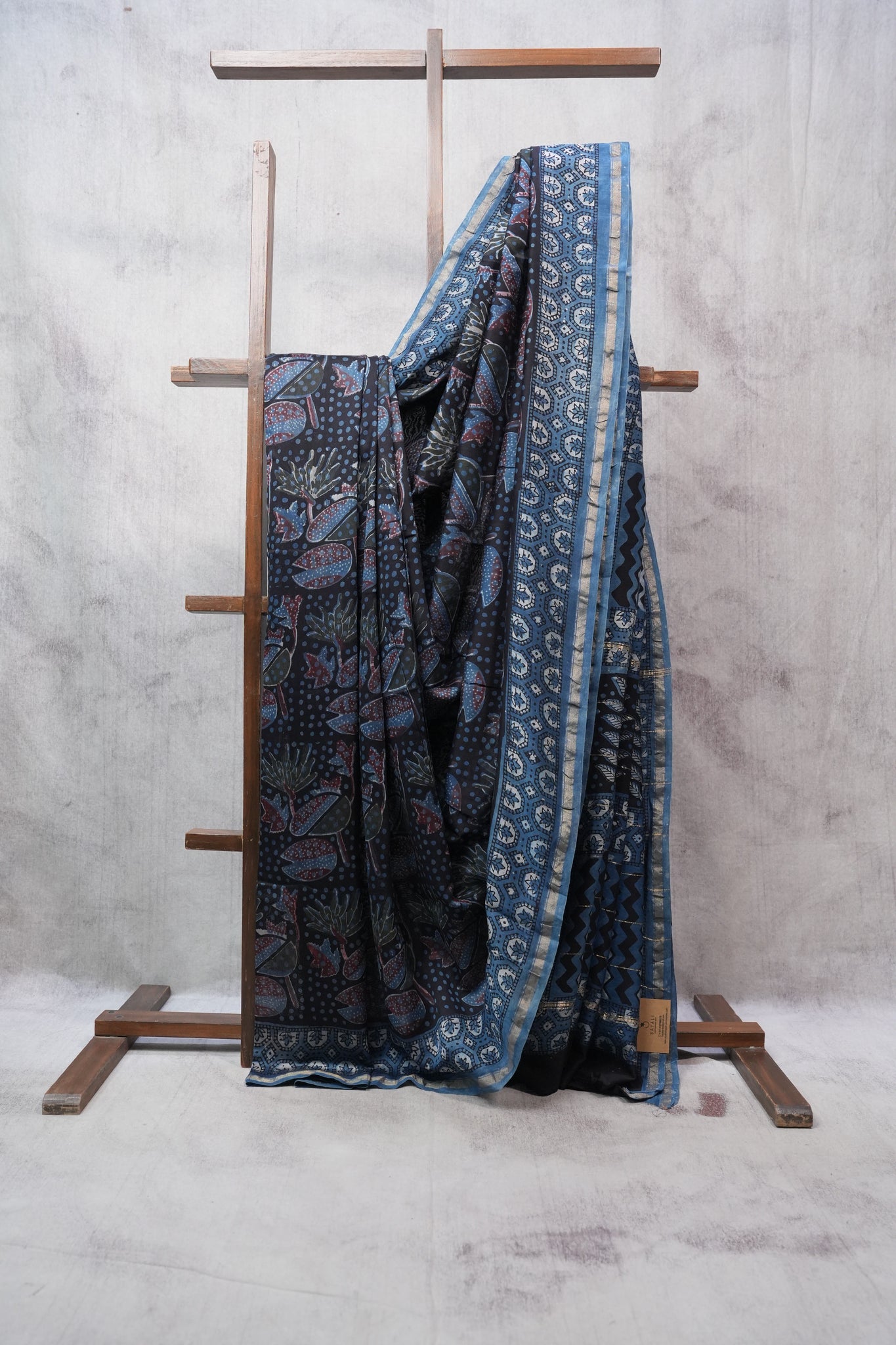 Black HBP Chanderi Cotton Silk Saree With Chanderi Border - SRBCSS1099