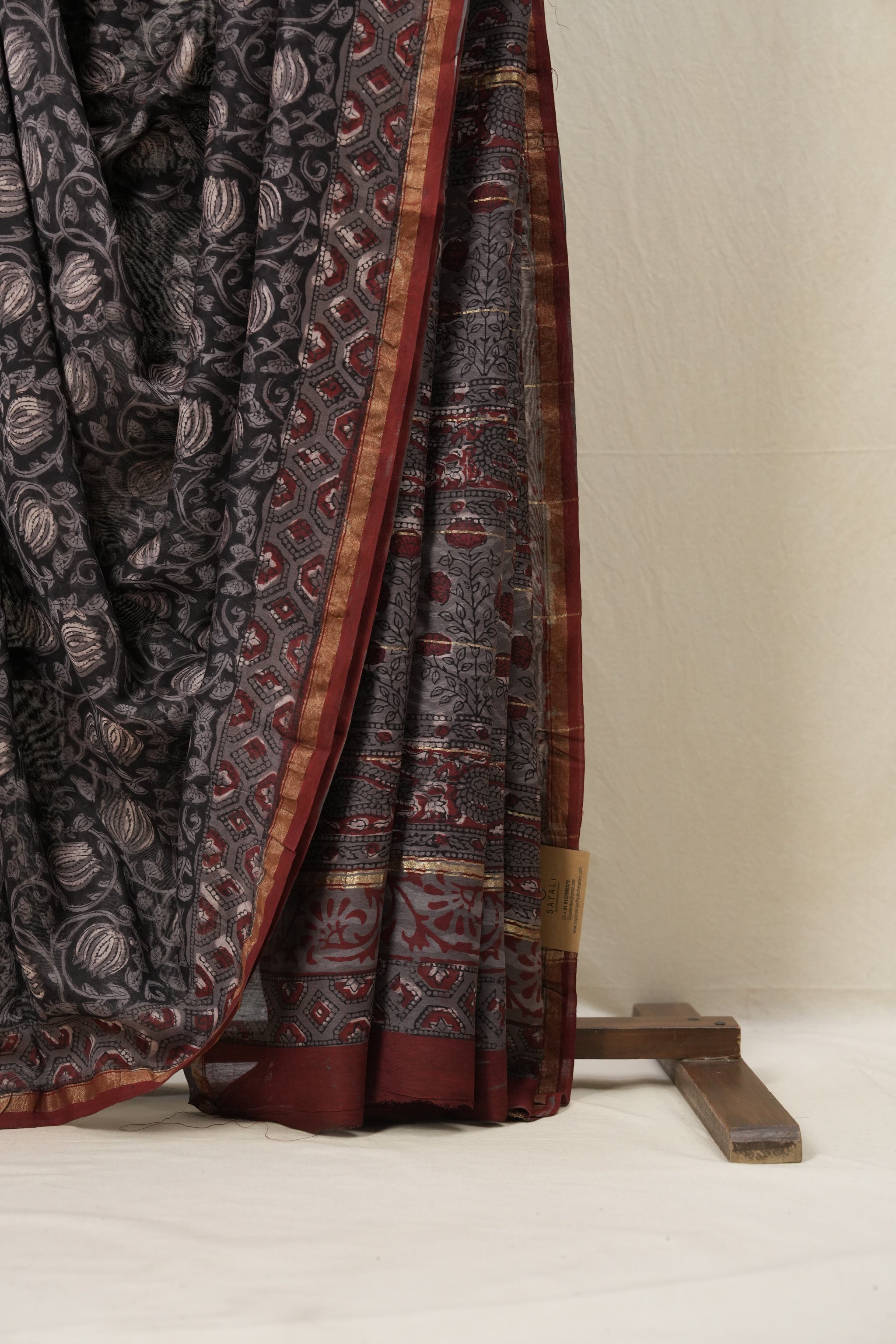 Black HBP Cotton Silk Saree With Chanderi Border - SRBCSS1238