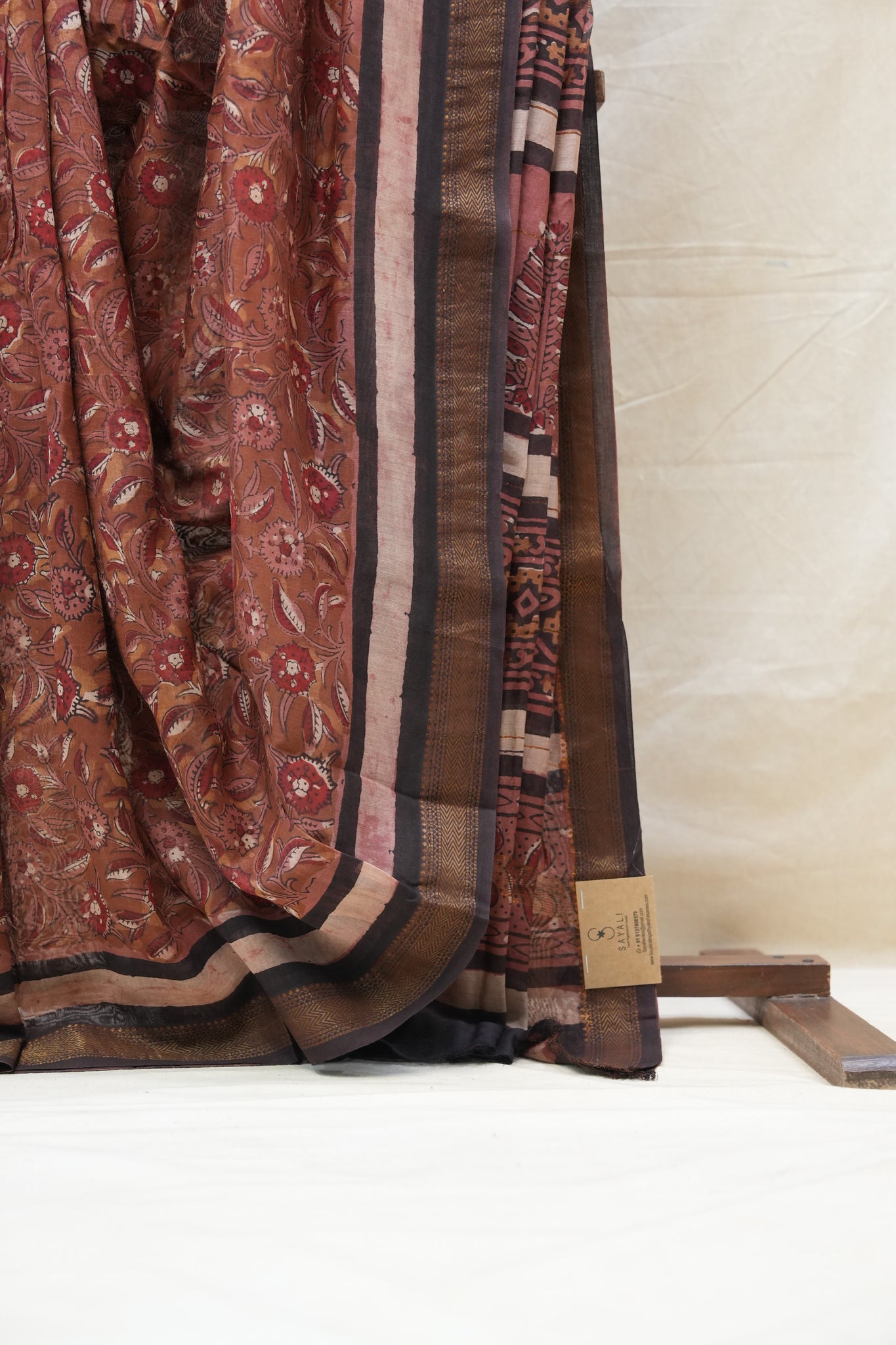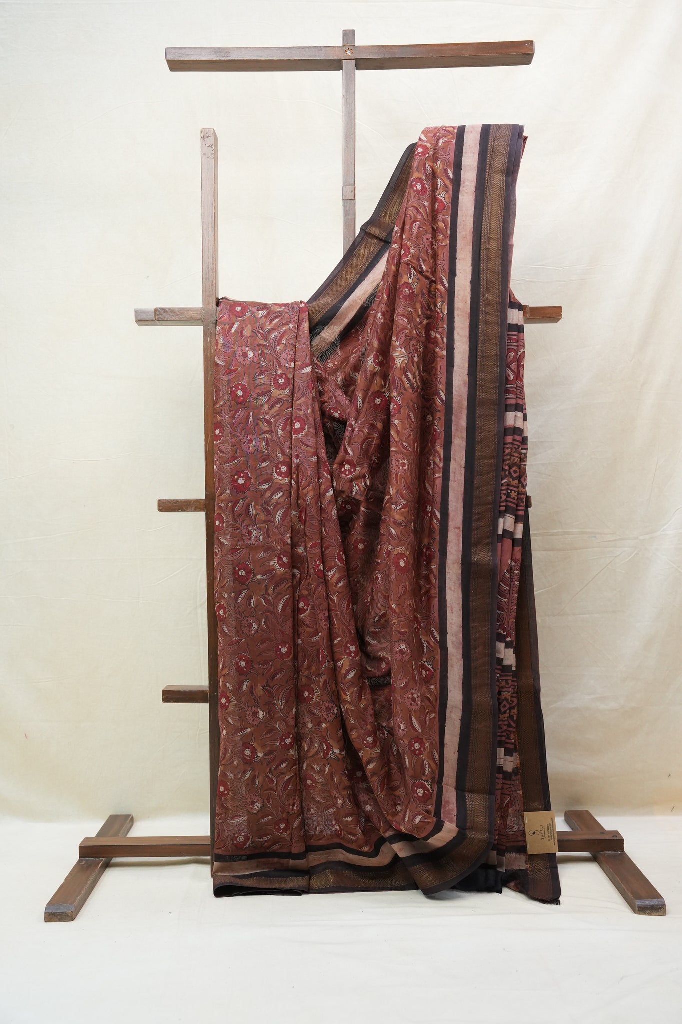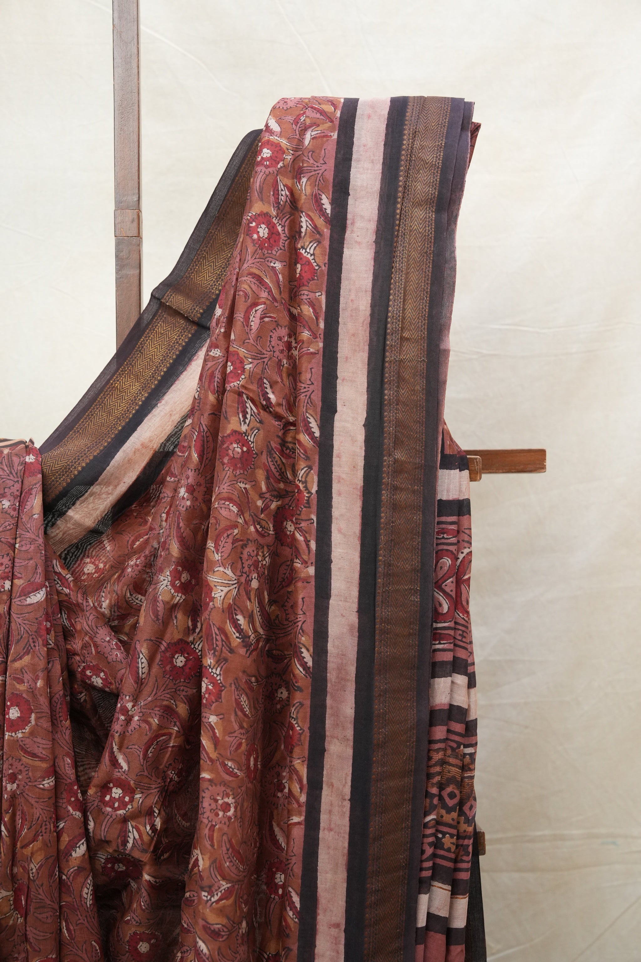 Brown HBP Cotton Silk Saree With Maheshwari Border - SRBCSS1200