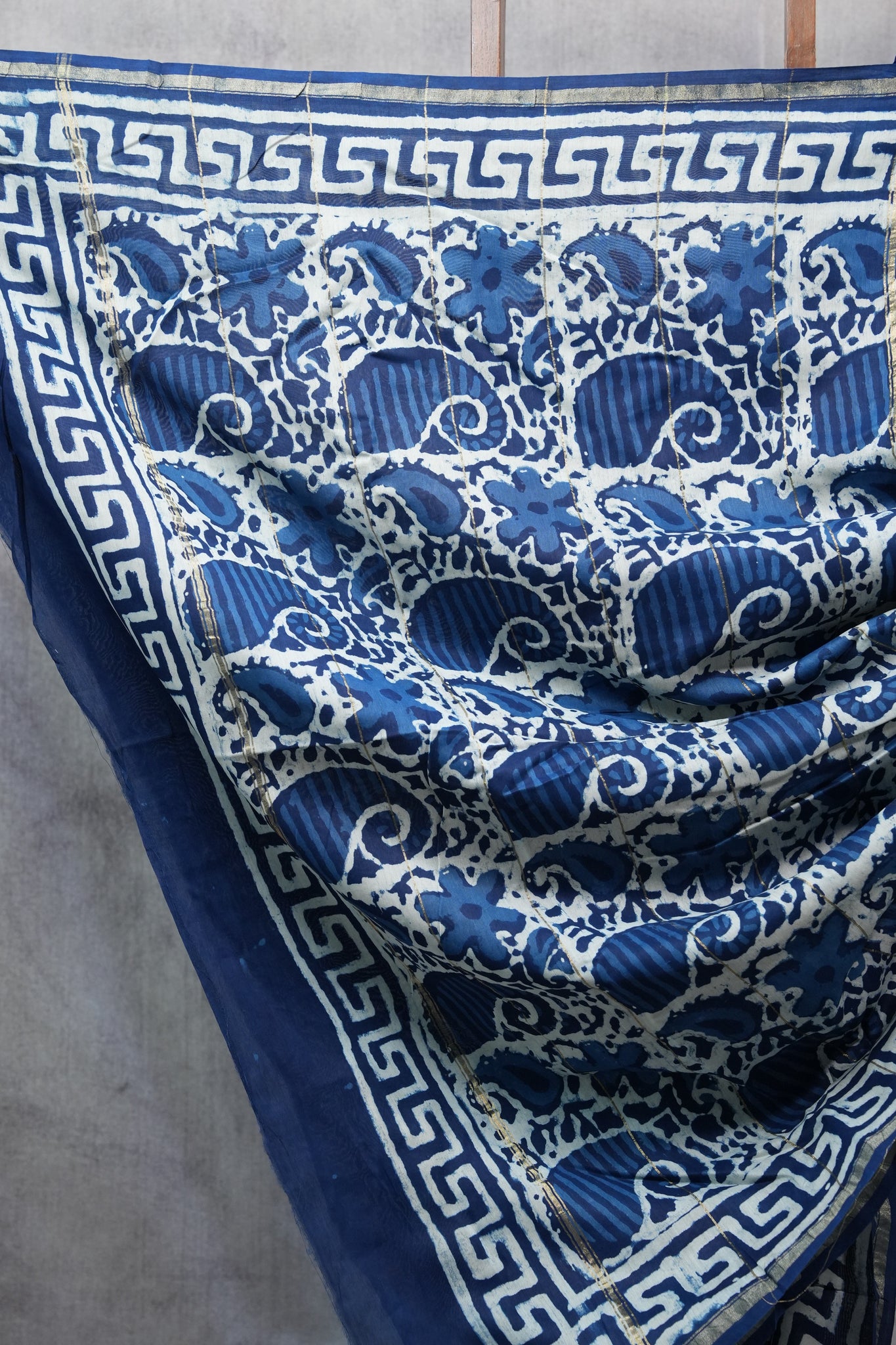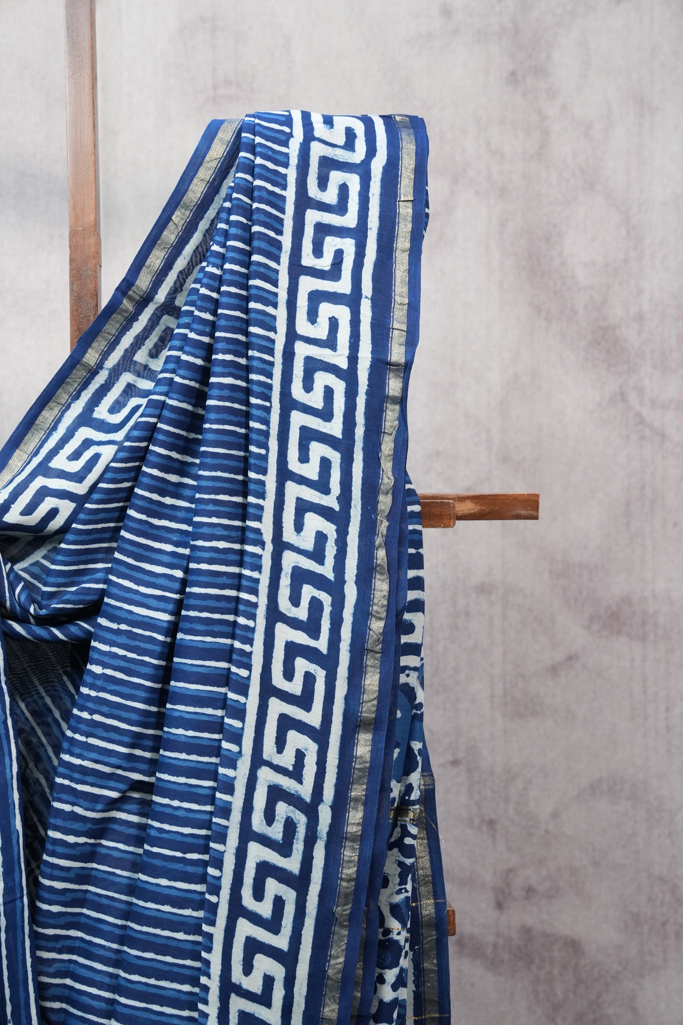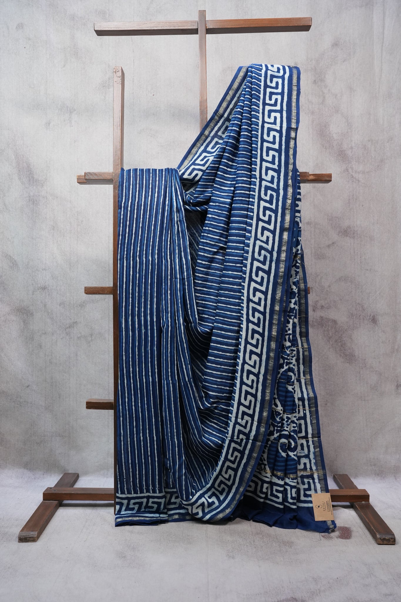 Dark Blue HBP Chanderi Cotton Silk Saree With Chanderi Border - SRDBCS1146