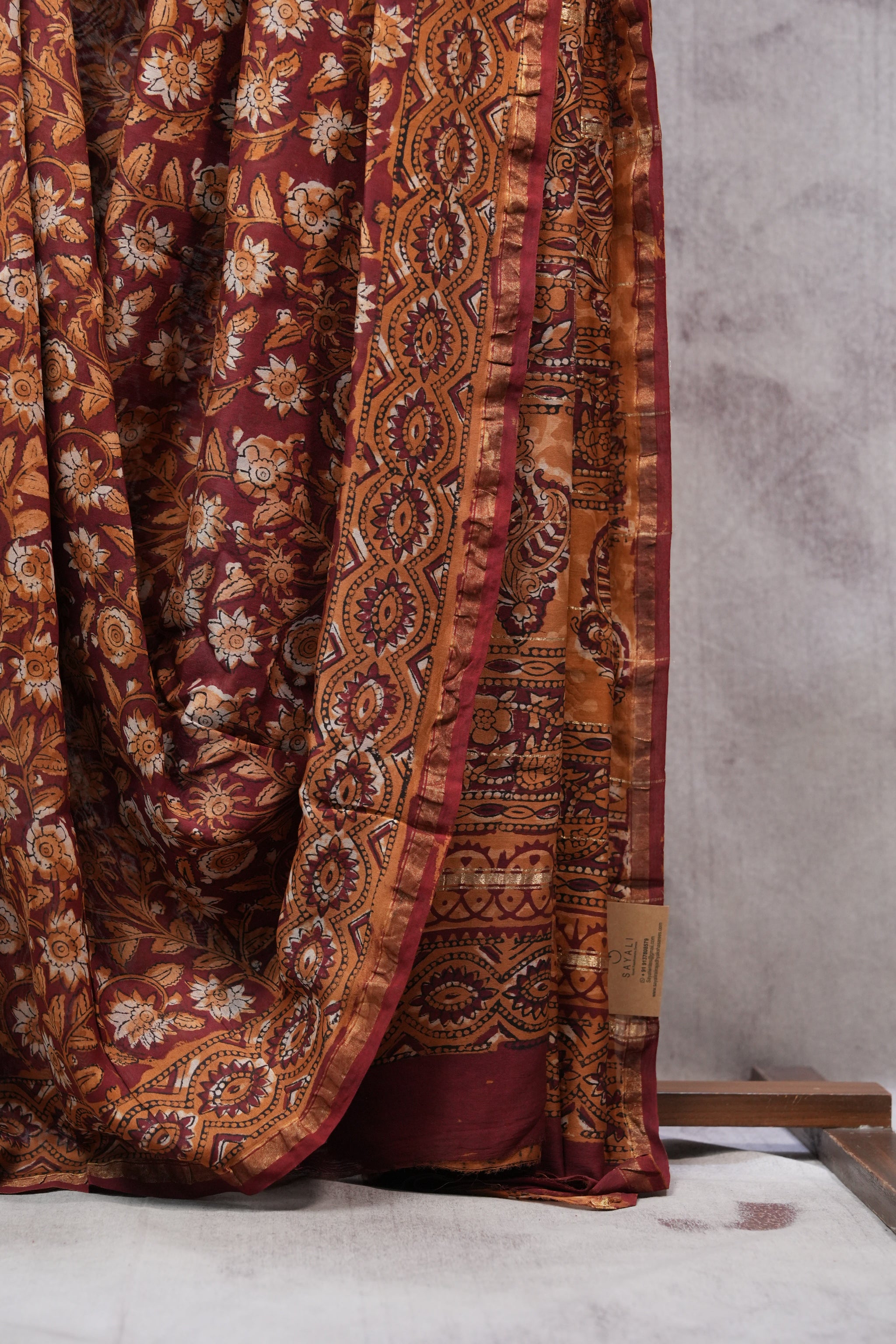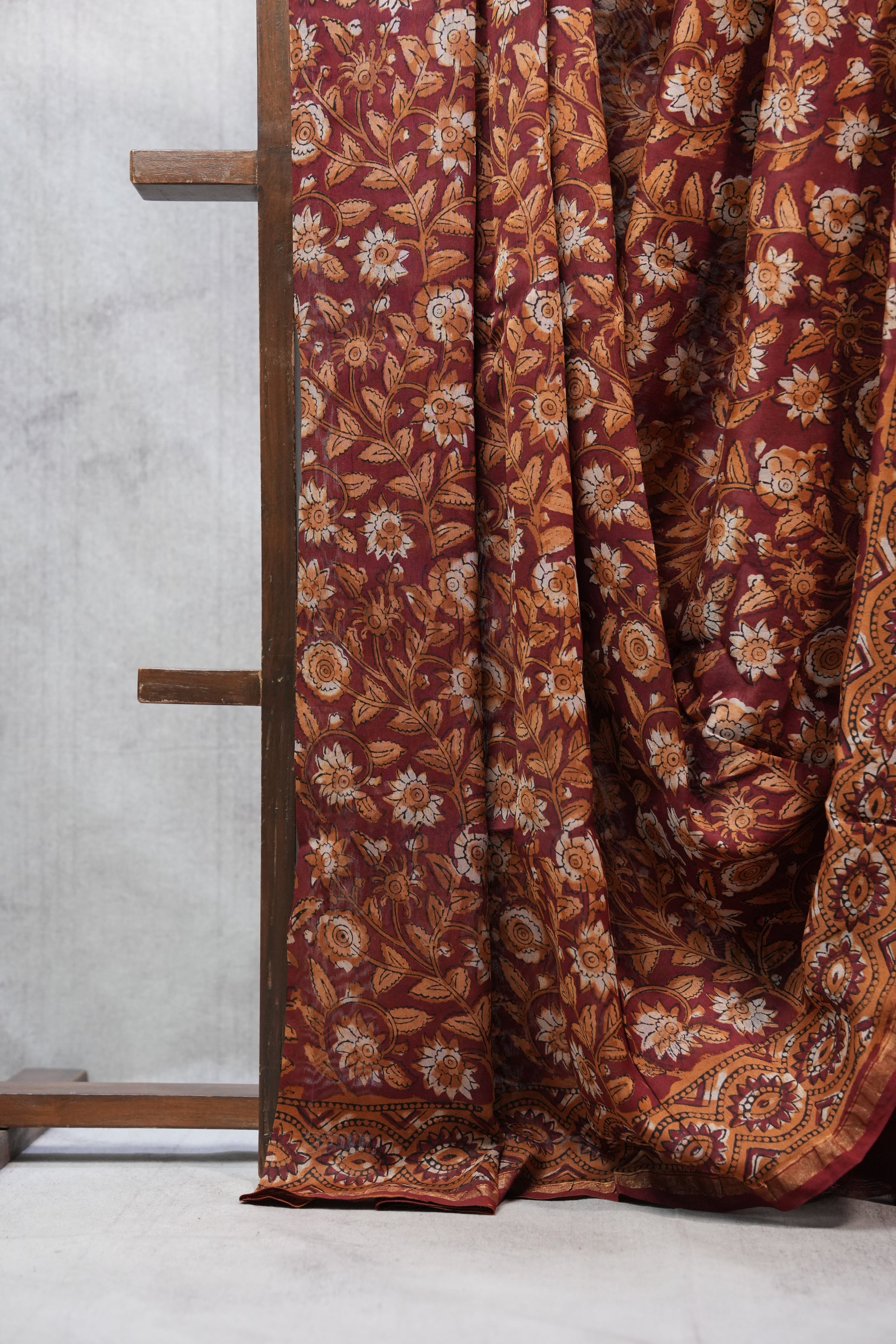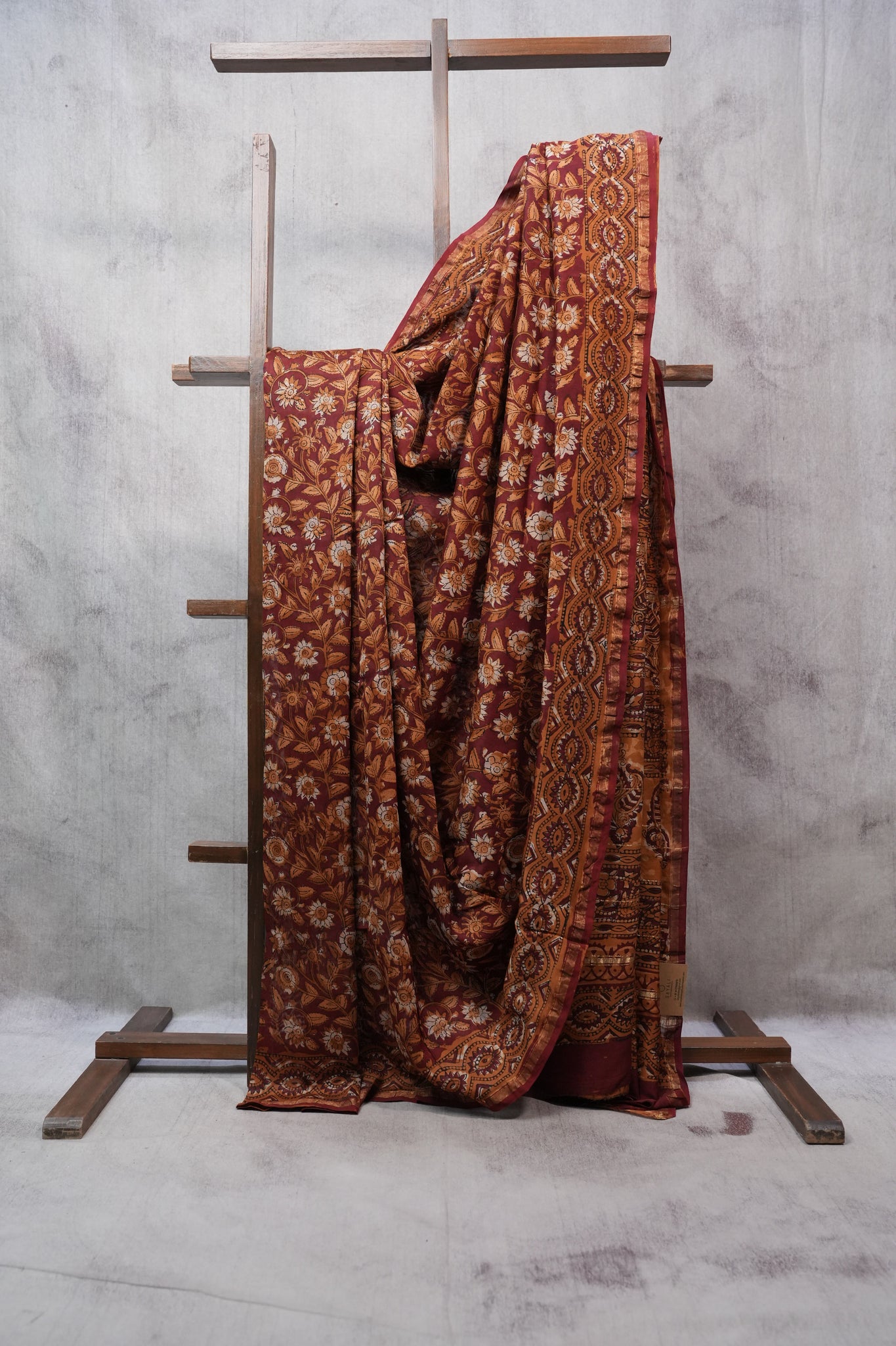 Maroon HBP Chanderi Cotton Silk Saree With Chanderi Border - SRMCS1132