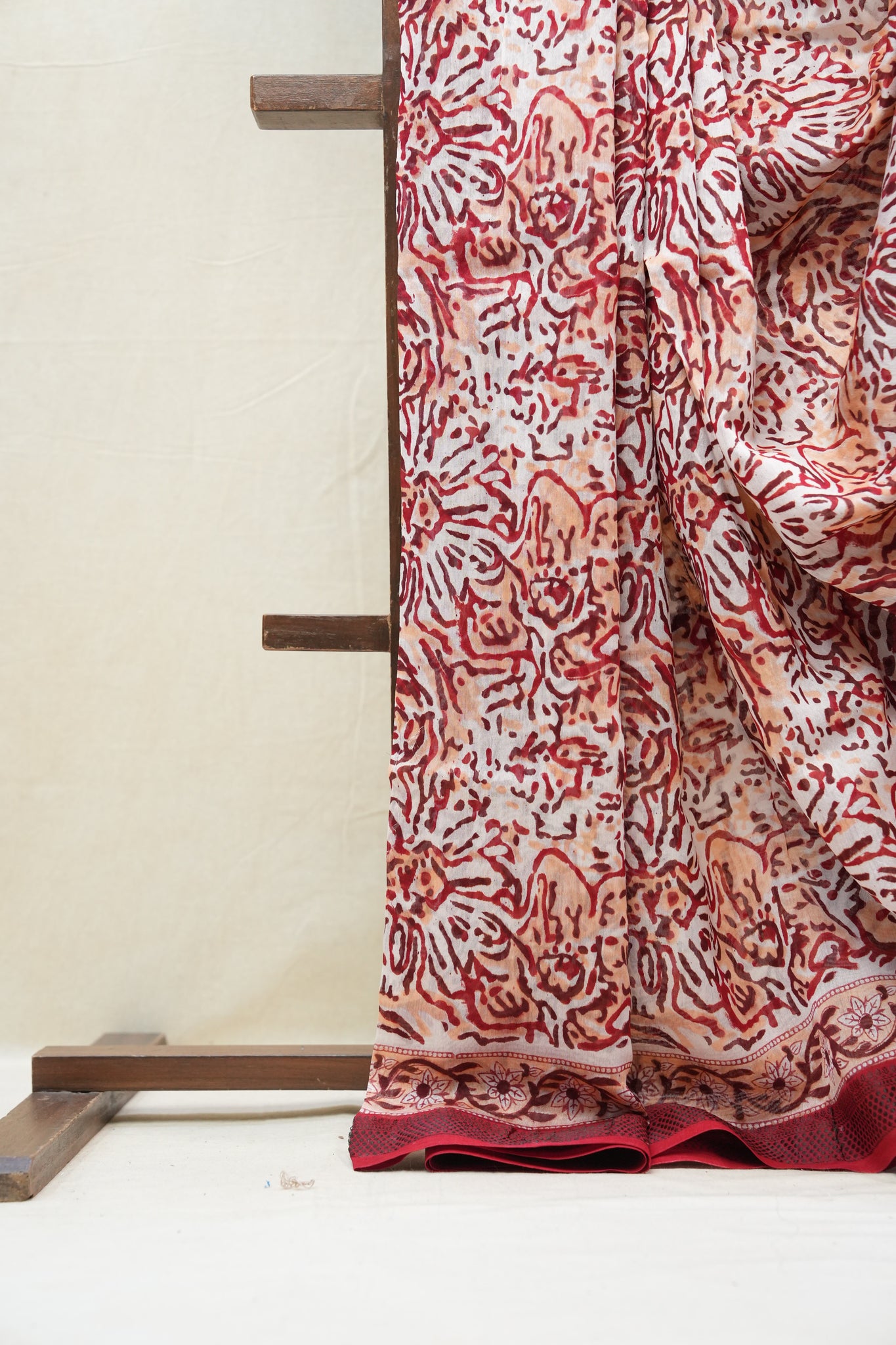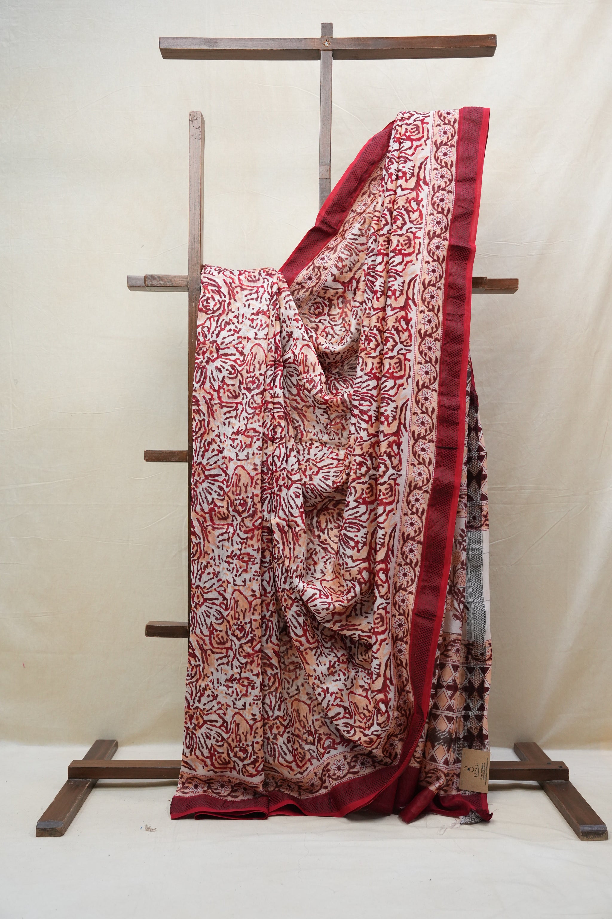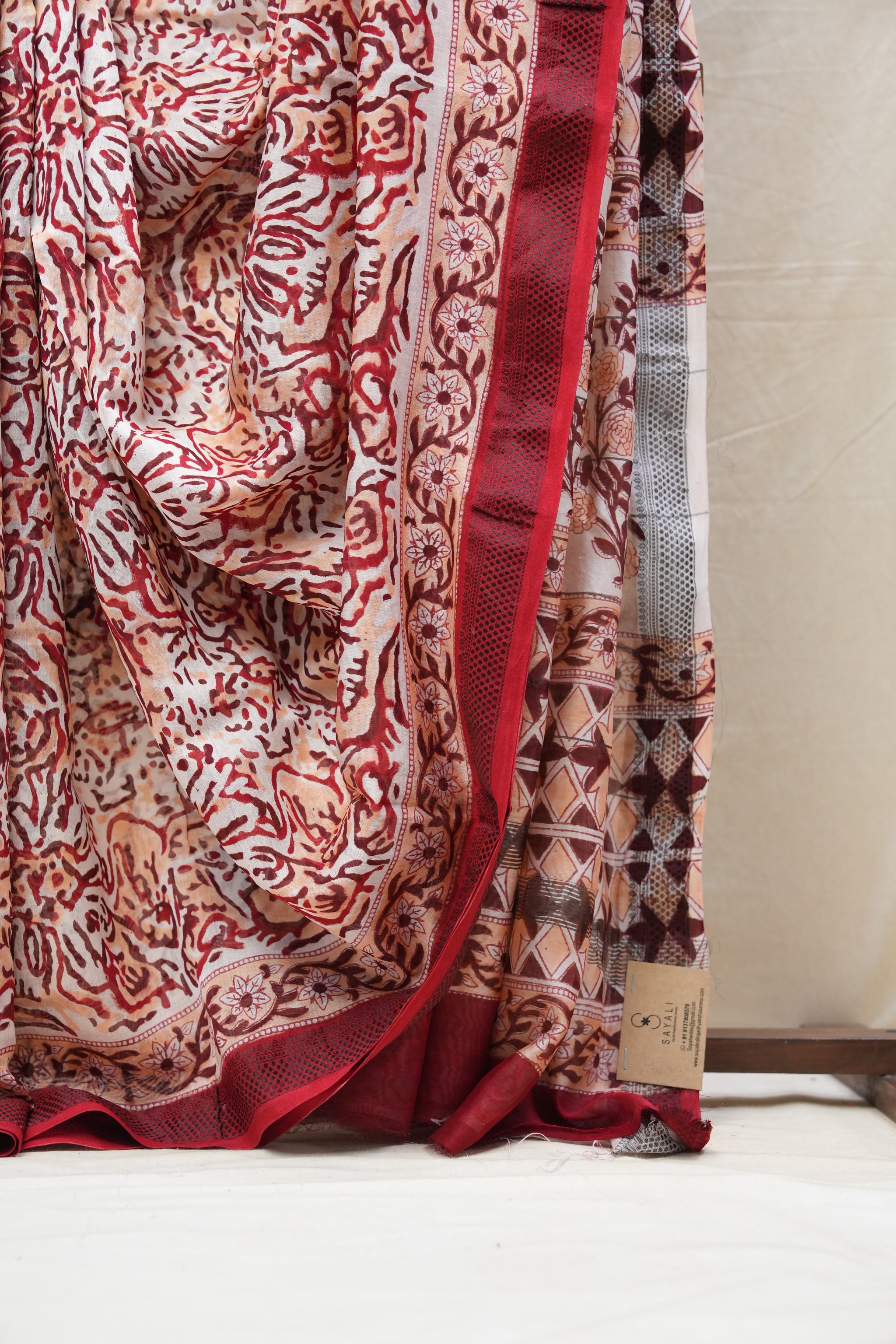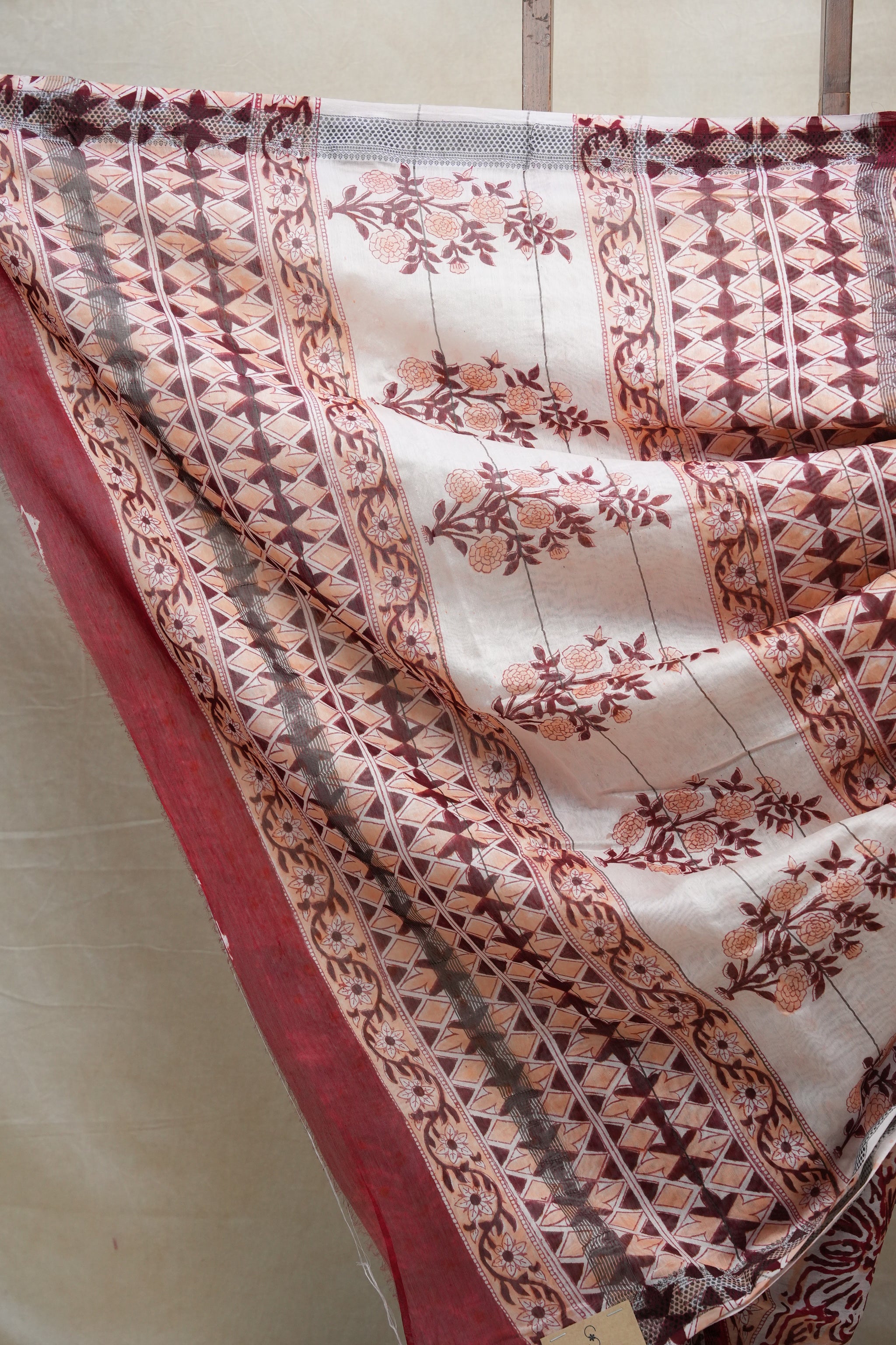 White-Peach HBP Cotton Silk Saree With Maheshwari Border - SRWPCSS1220