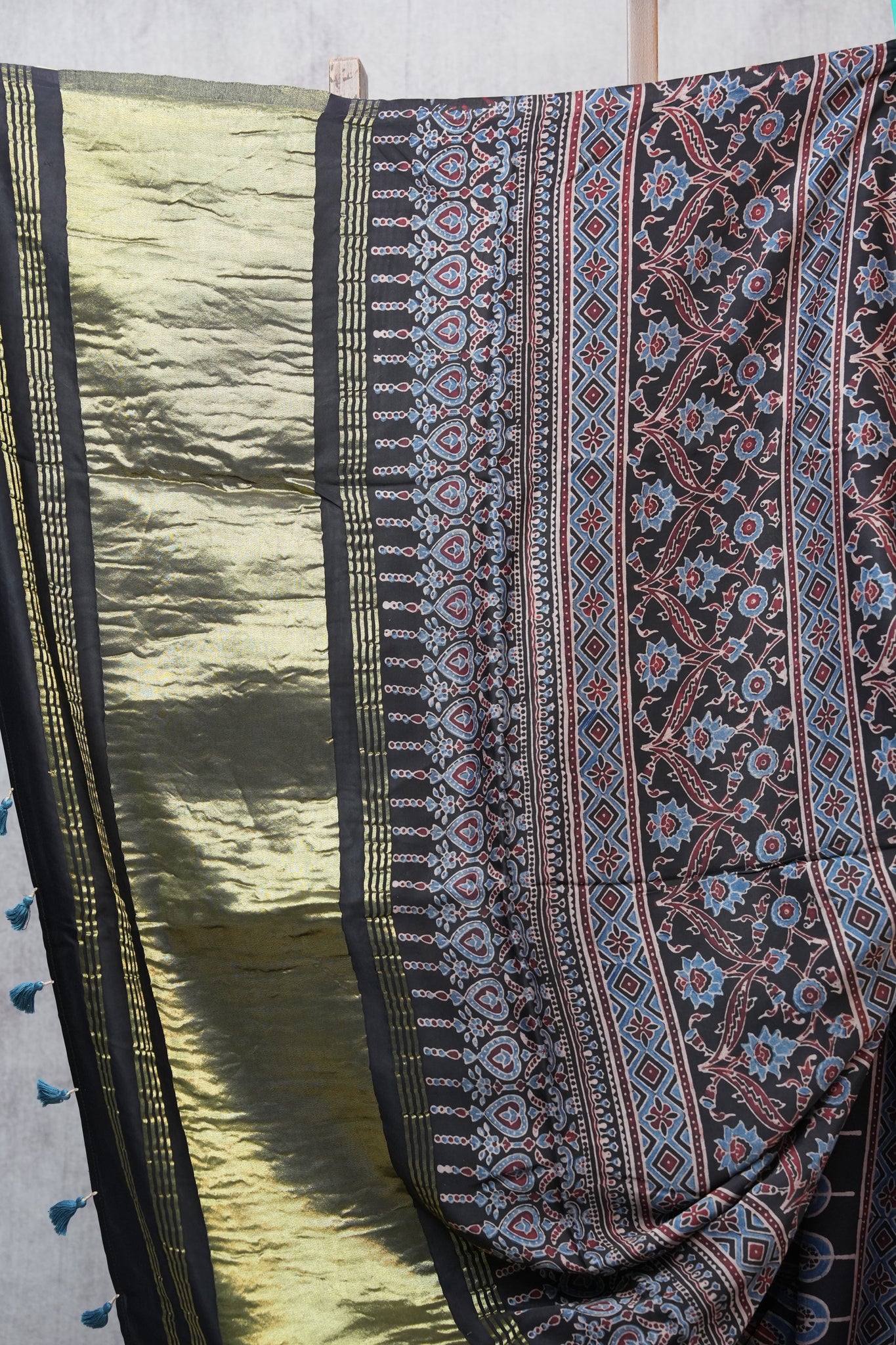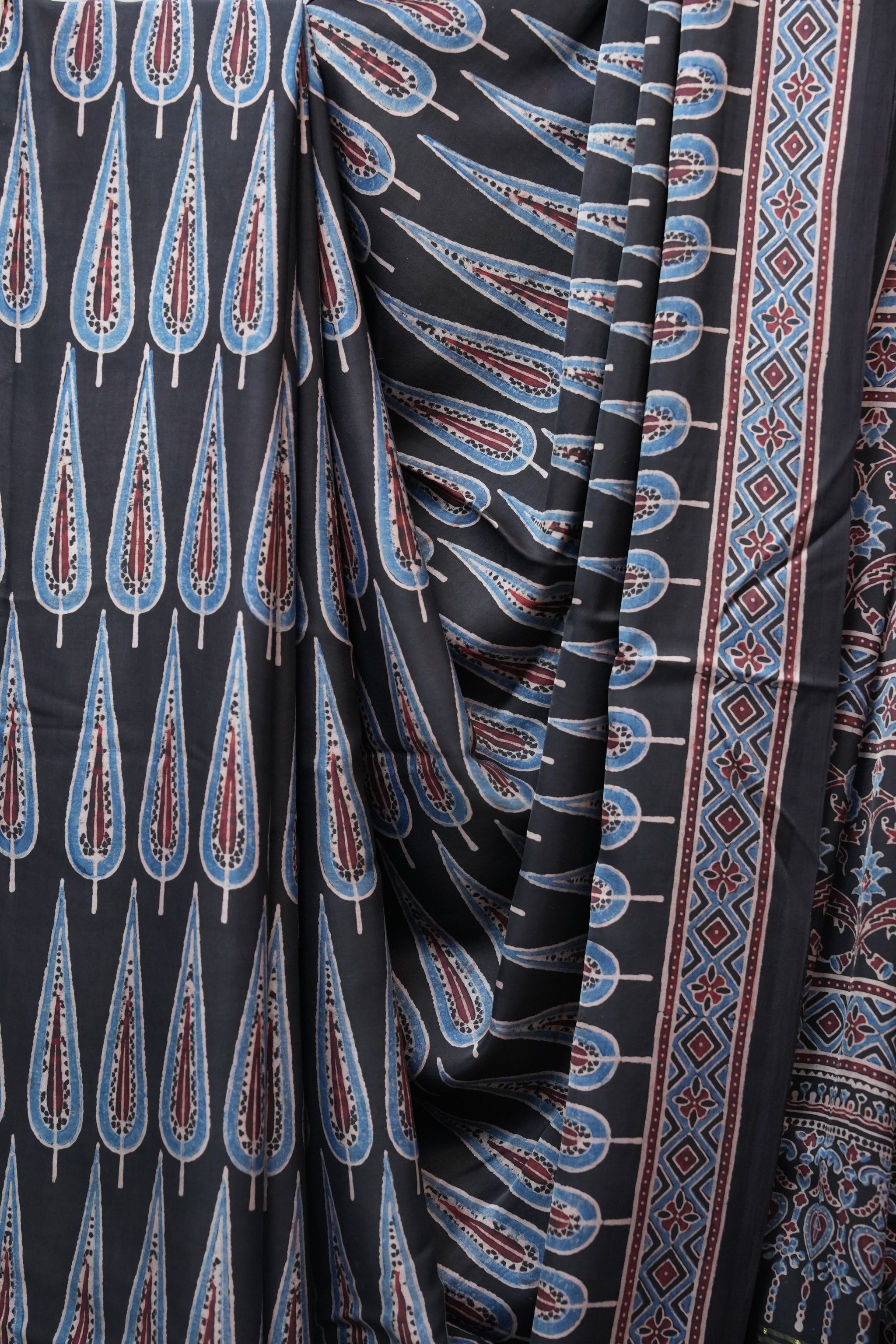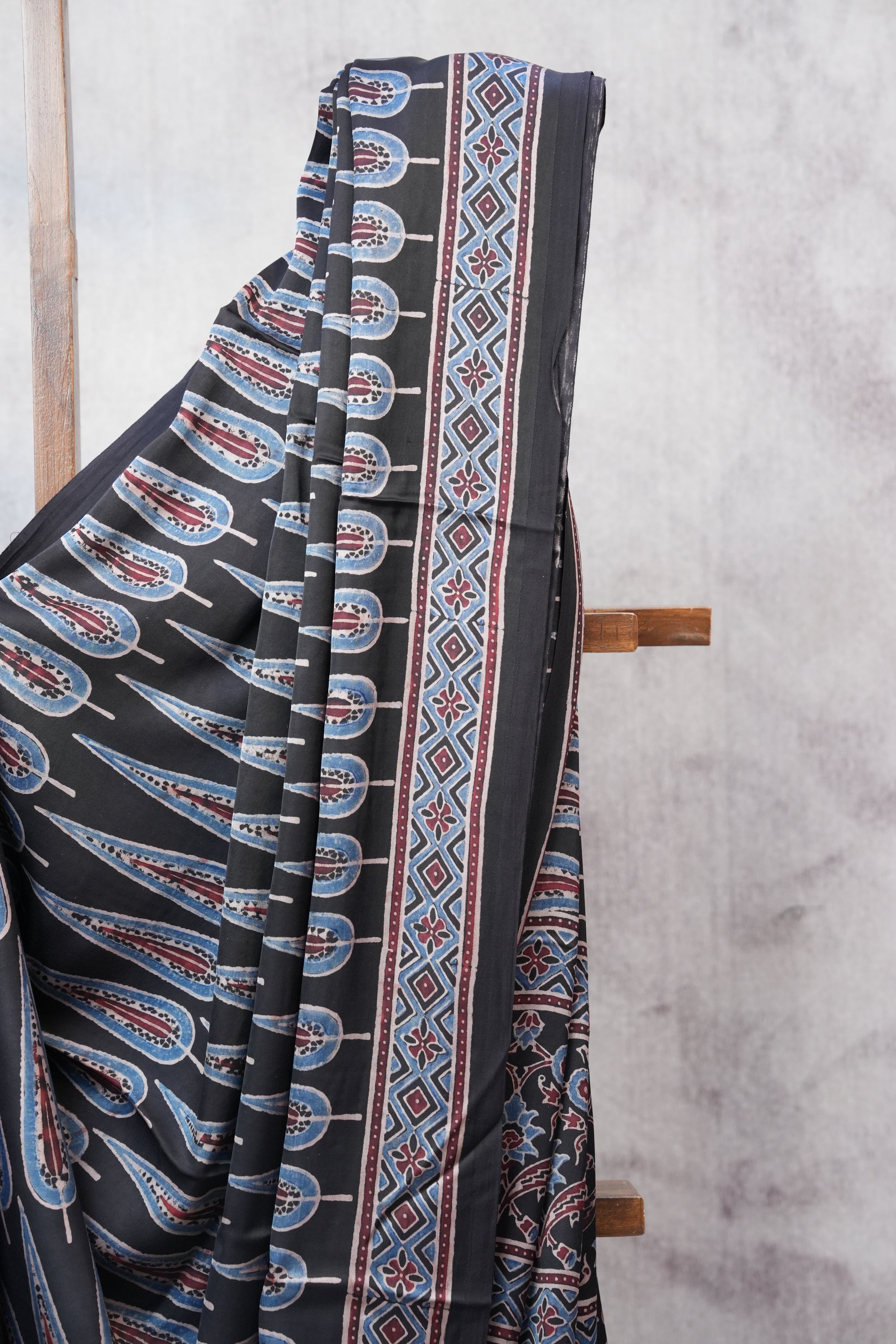 Black Ajrakh HBP Modal Silk Saree - SRBAMSS57