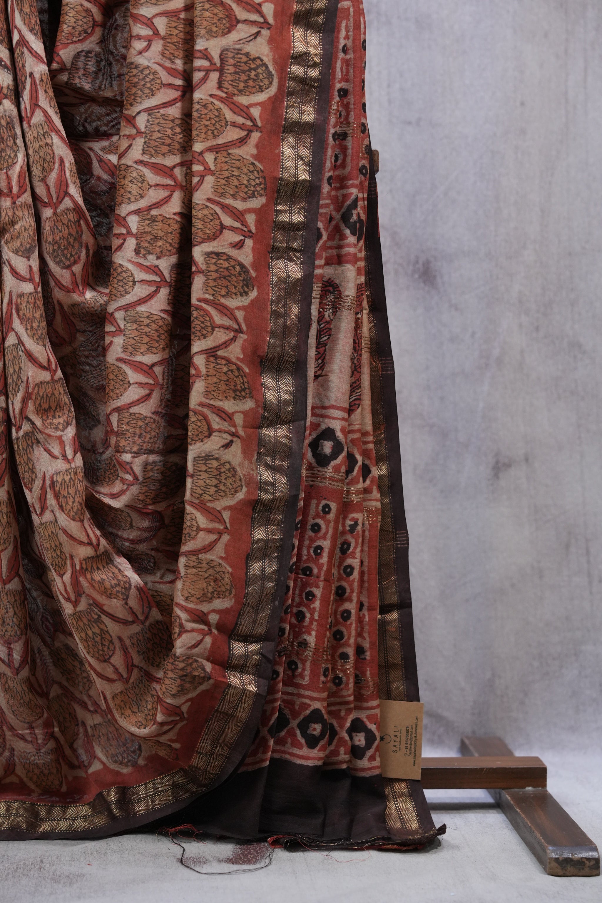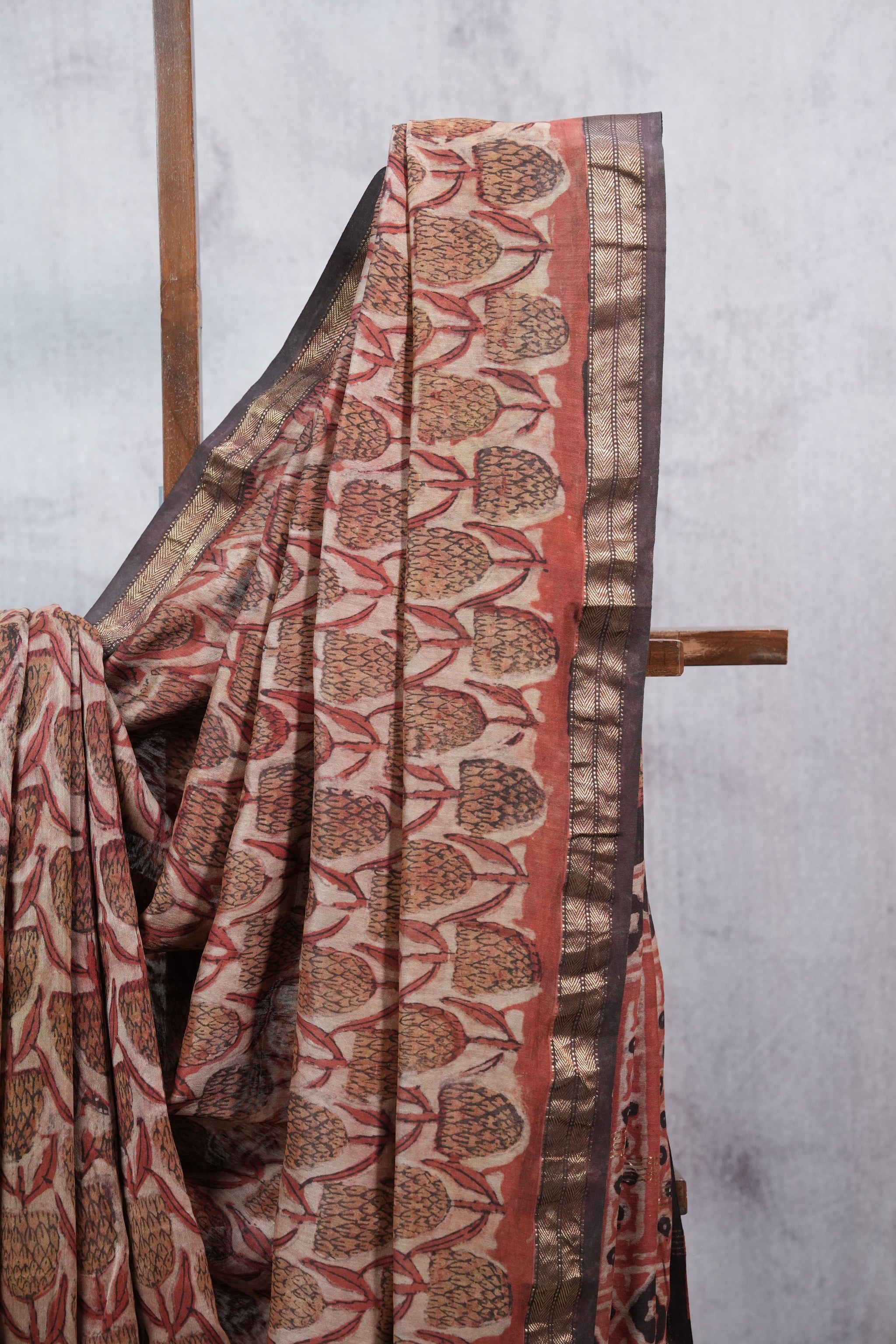 Cream-Peach HBP Cotton Silk Saree With Maheshwari Border - SRCPCSS1014