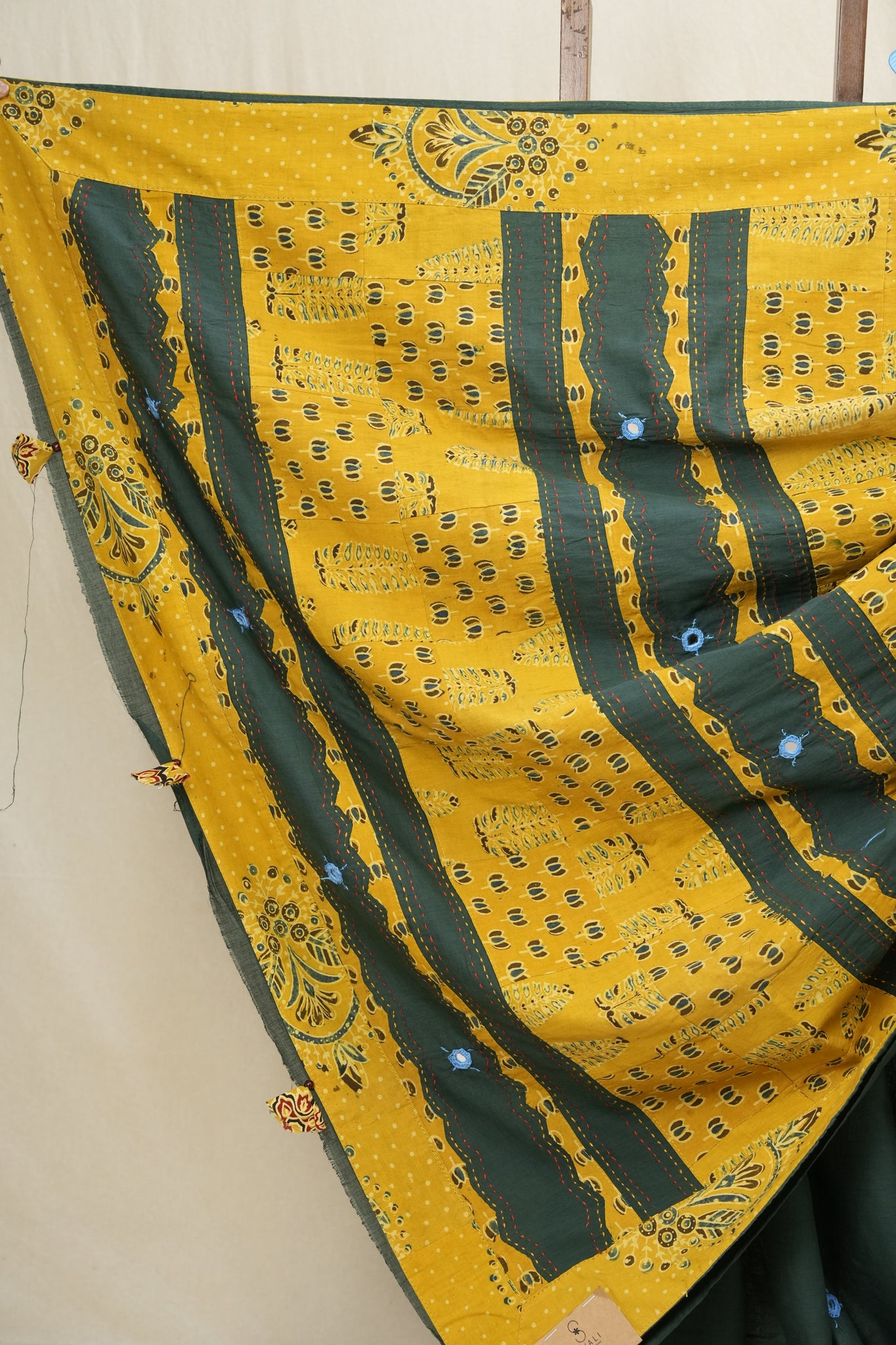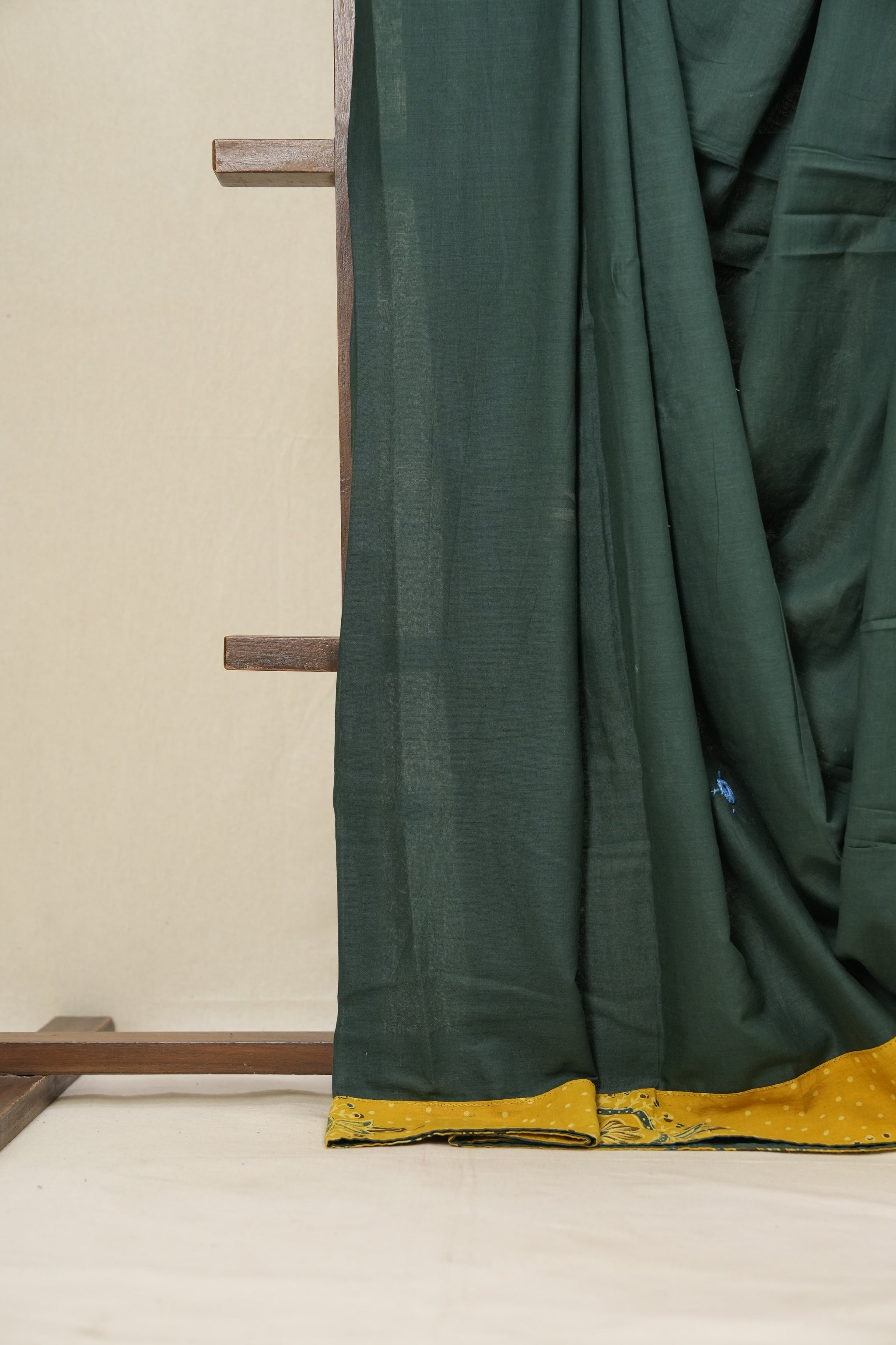 Dark Green Cotton Patchwork Saree-SRDGCPS227