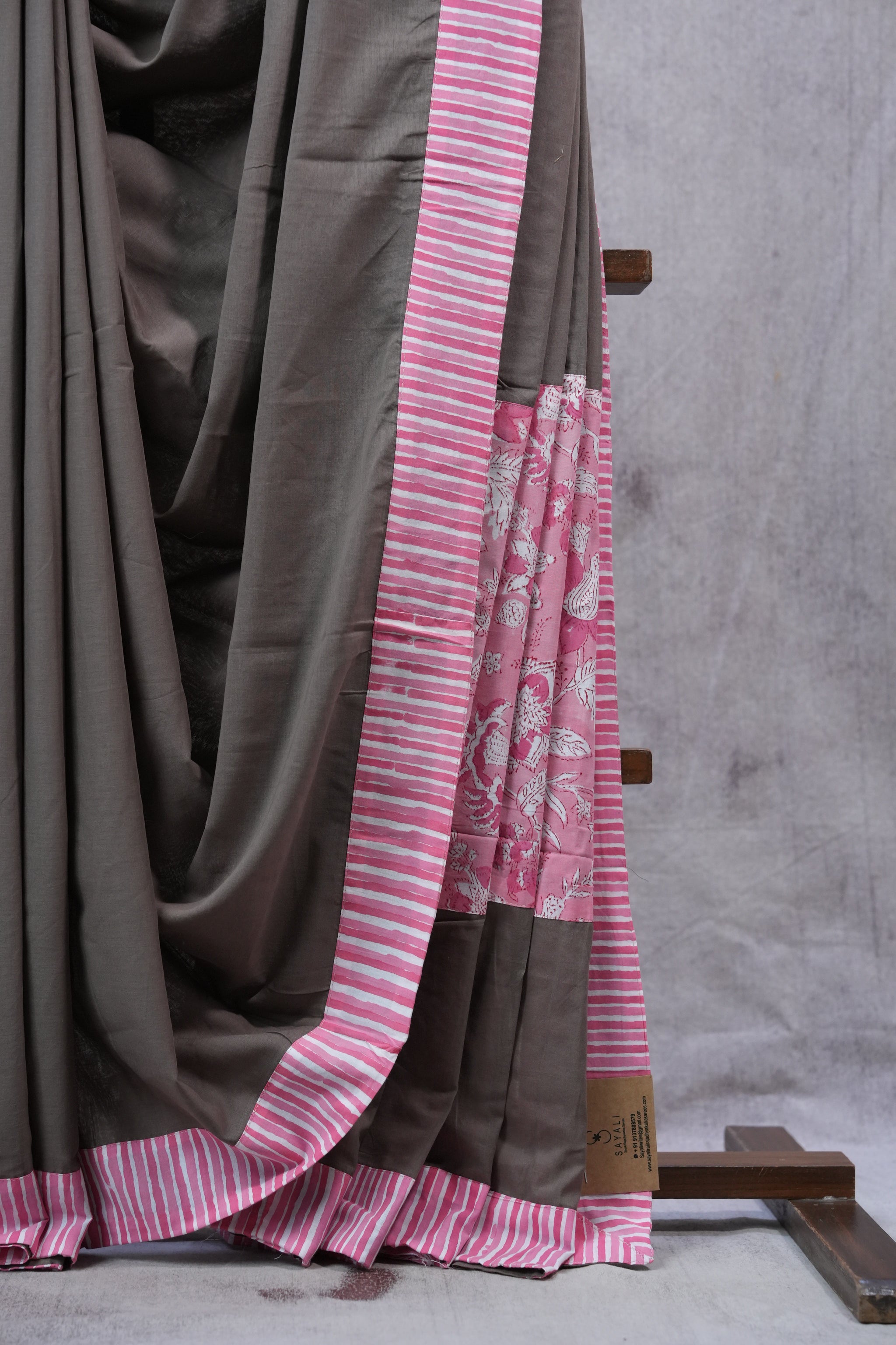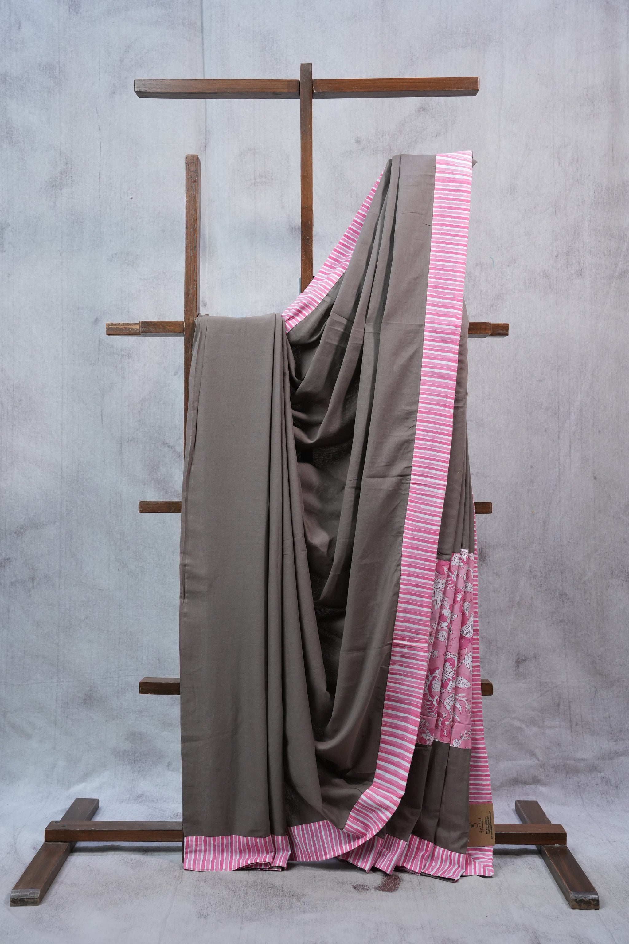 Light Brown HBP Cotton Saree - SRLBCS2263