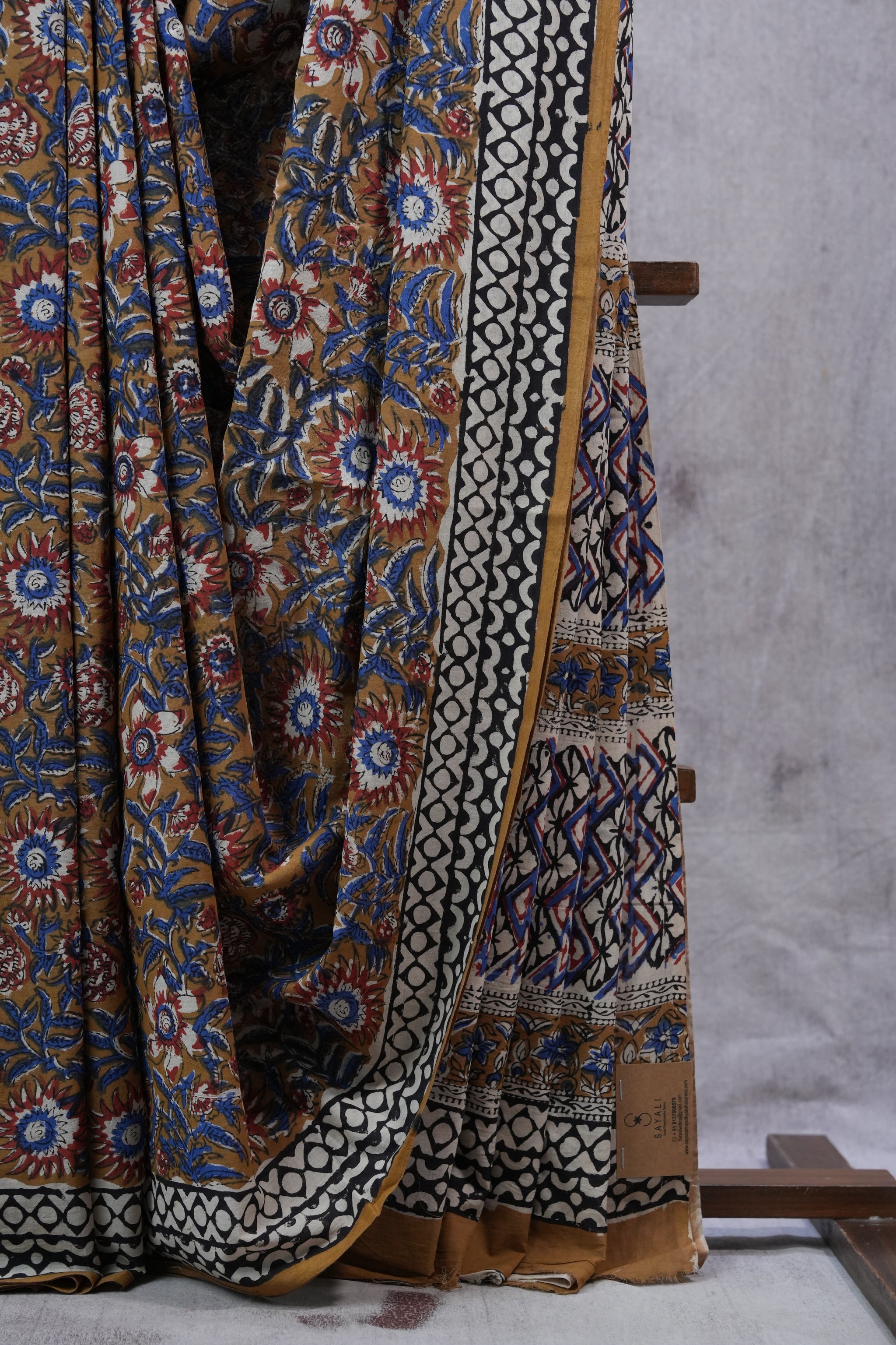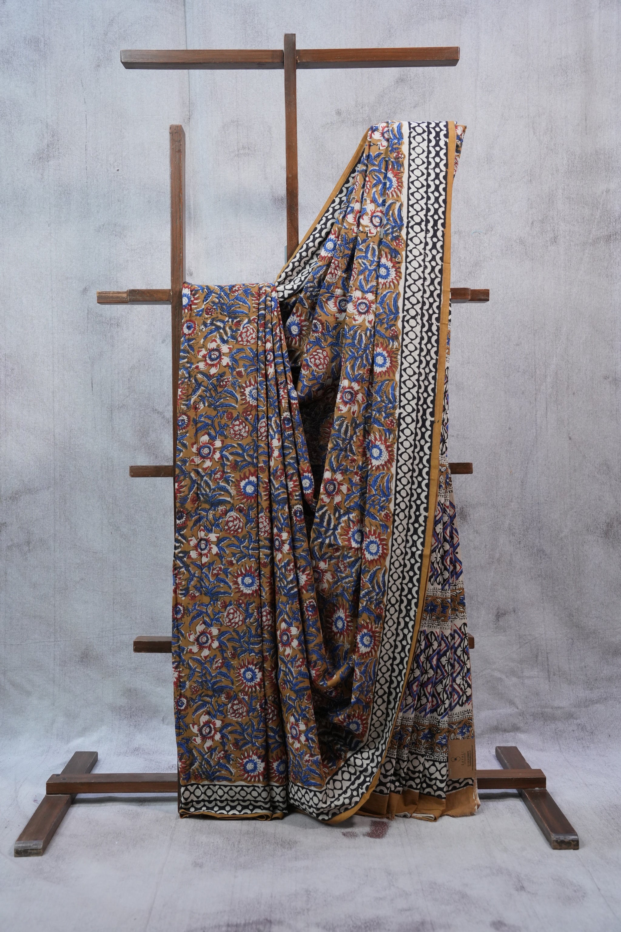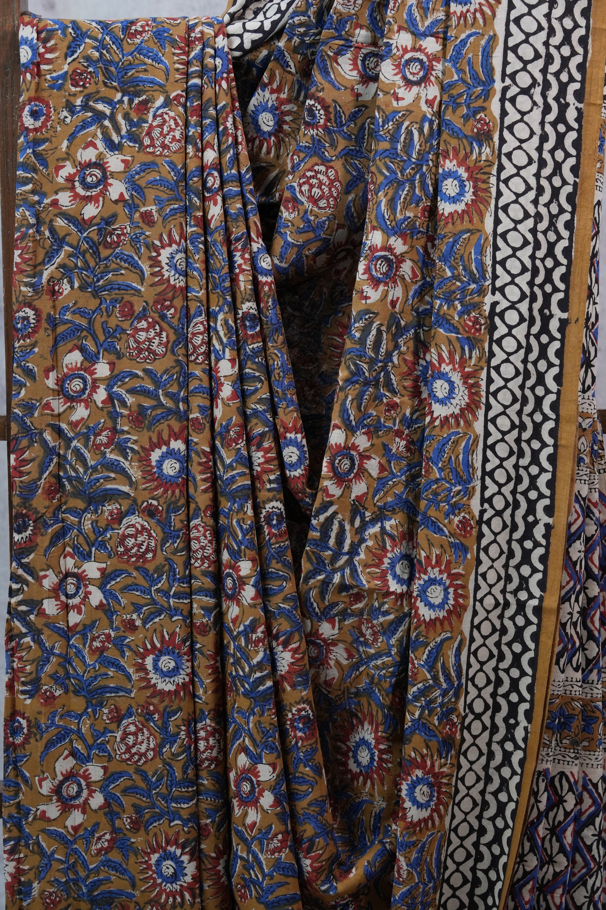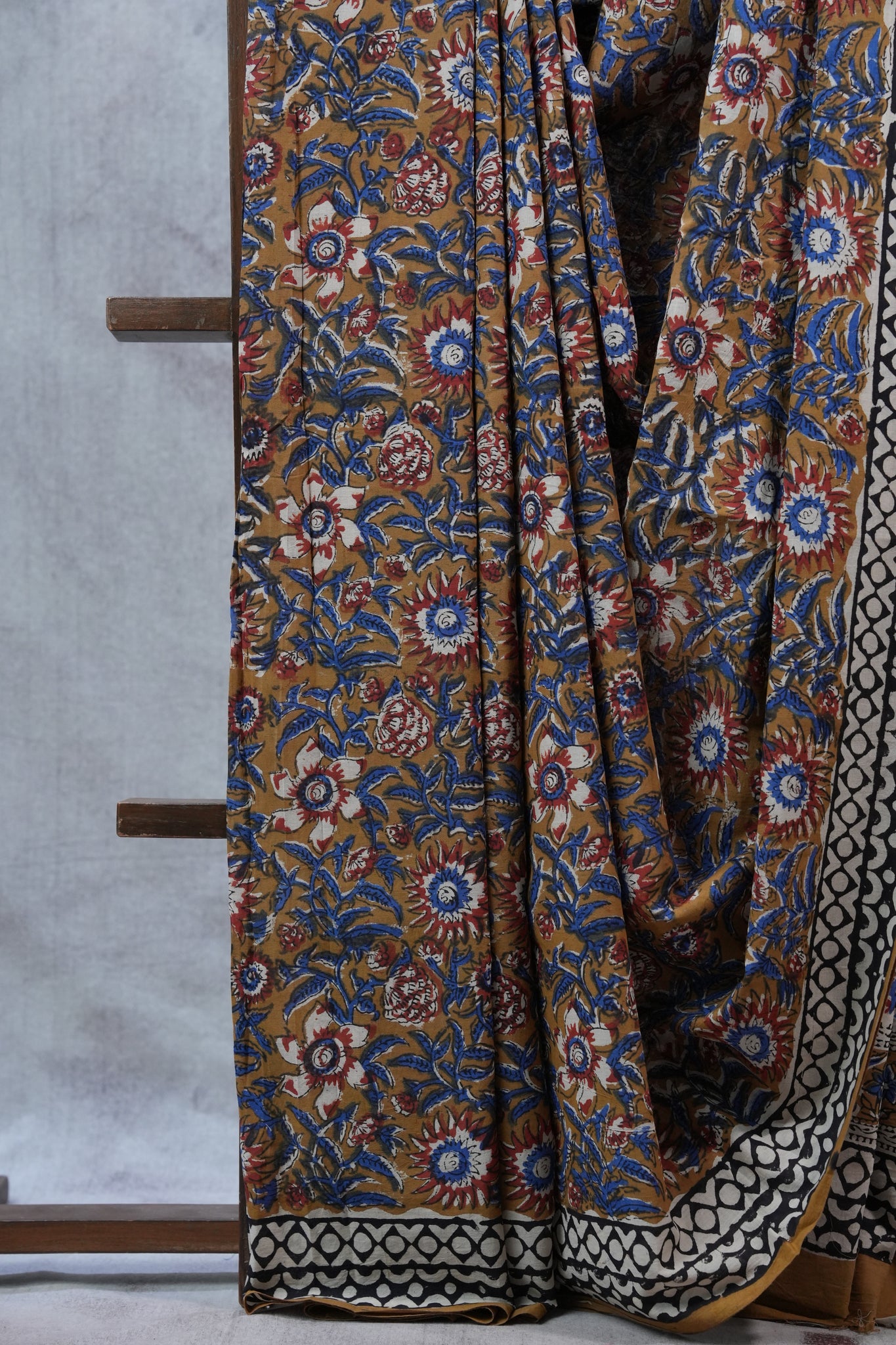 Mustard Yellow HBP Cotton Saree - SRMYCS2256