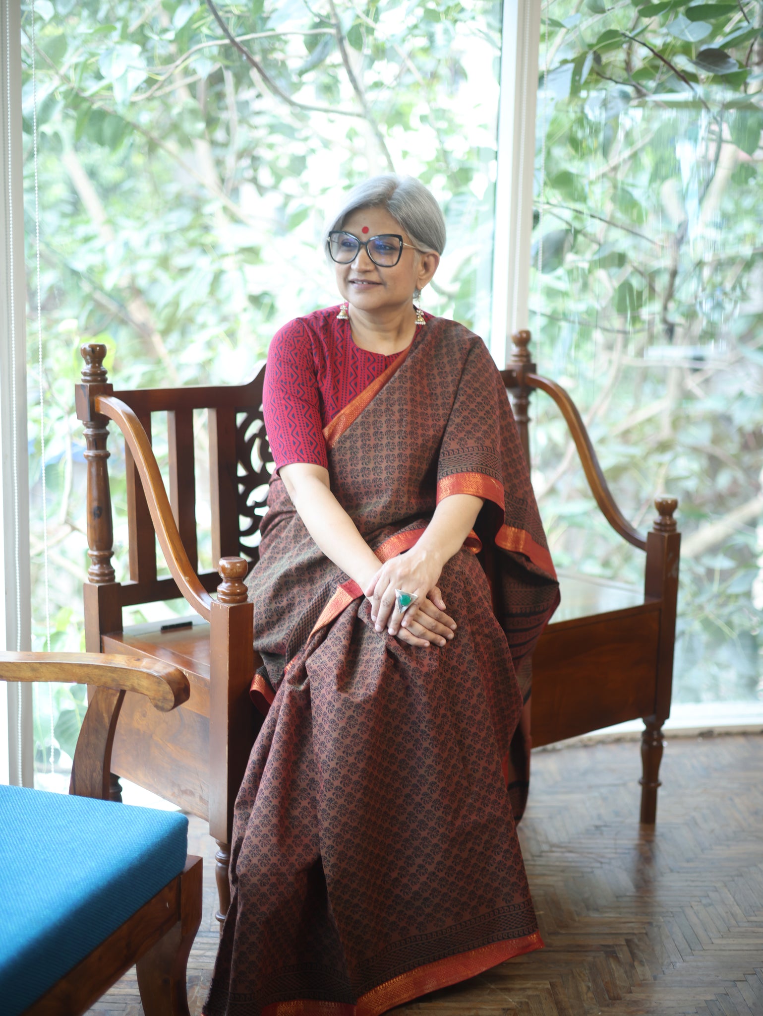 Rust Ajrakh HBP Chanderi Cotton Silk Saree - SRRACS1089