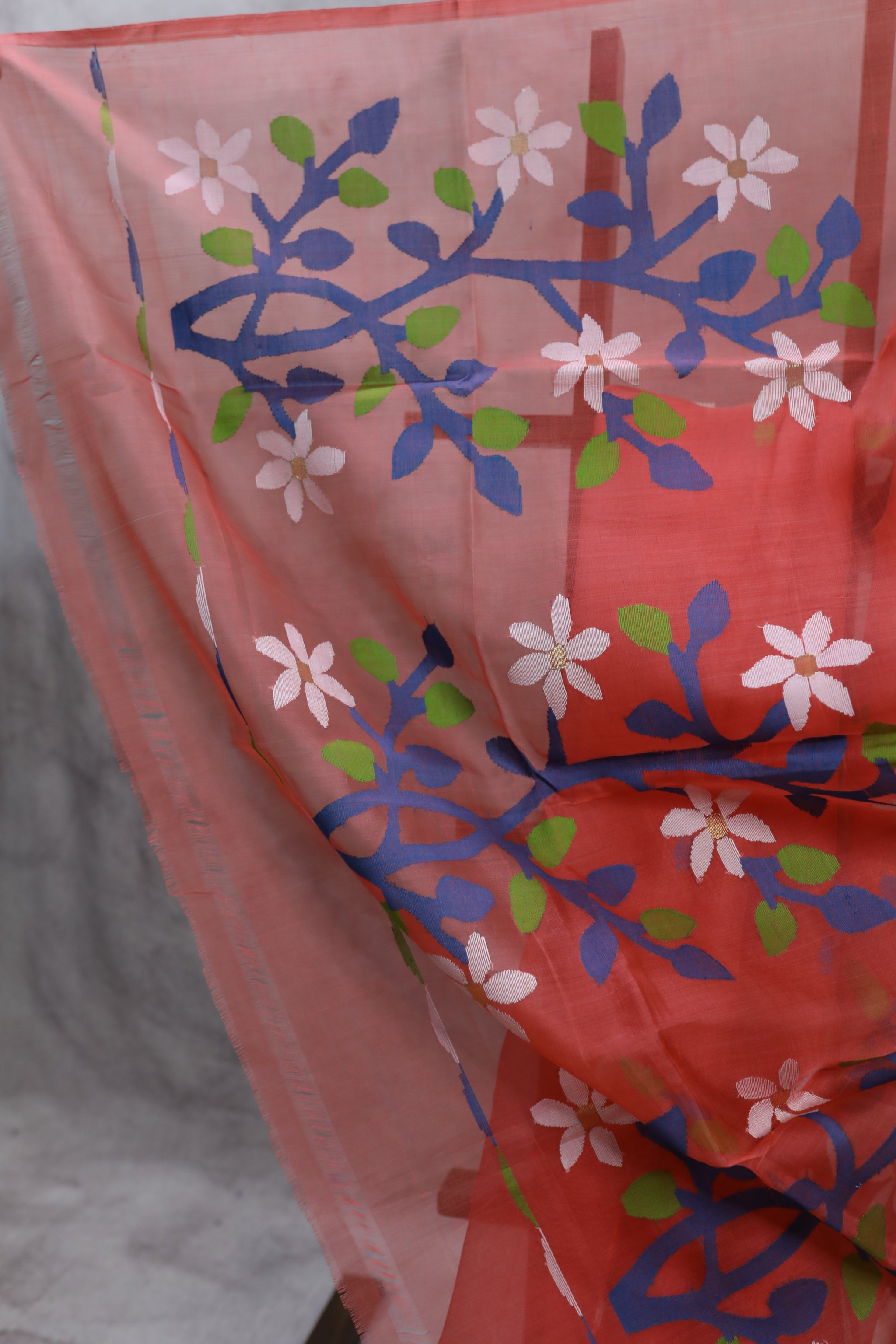 Dark Peach Muslin Jamdani Saree- SRDPMJS16EX