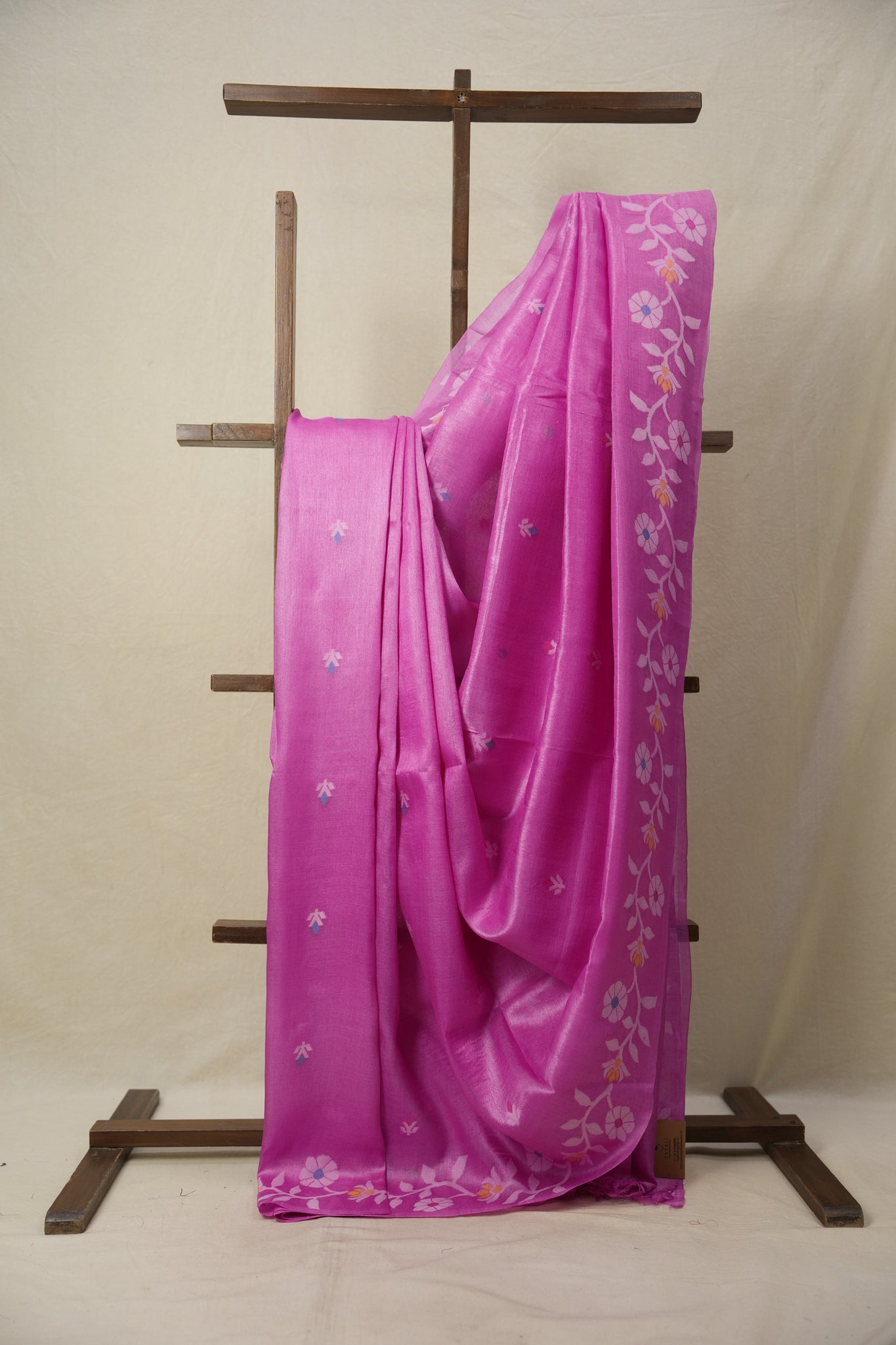 Barbie Pink Jamdani Tussar Silk Saree - SRBPJTSS0007