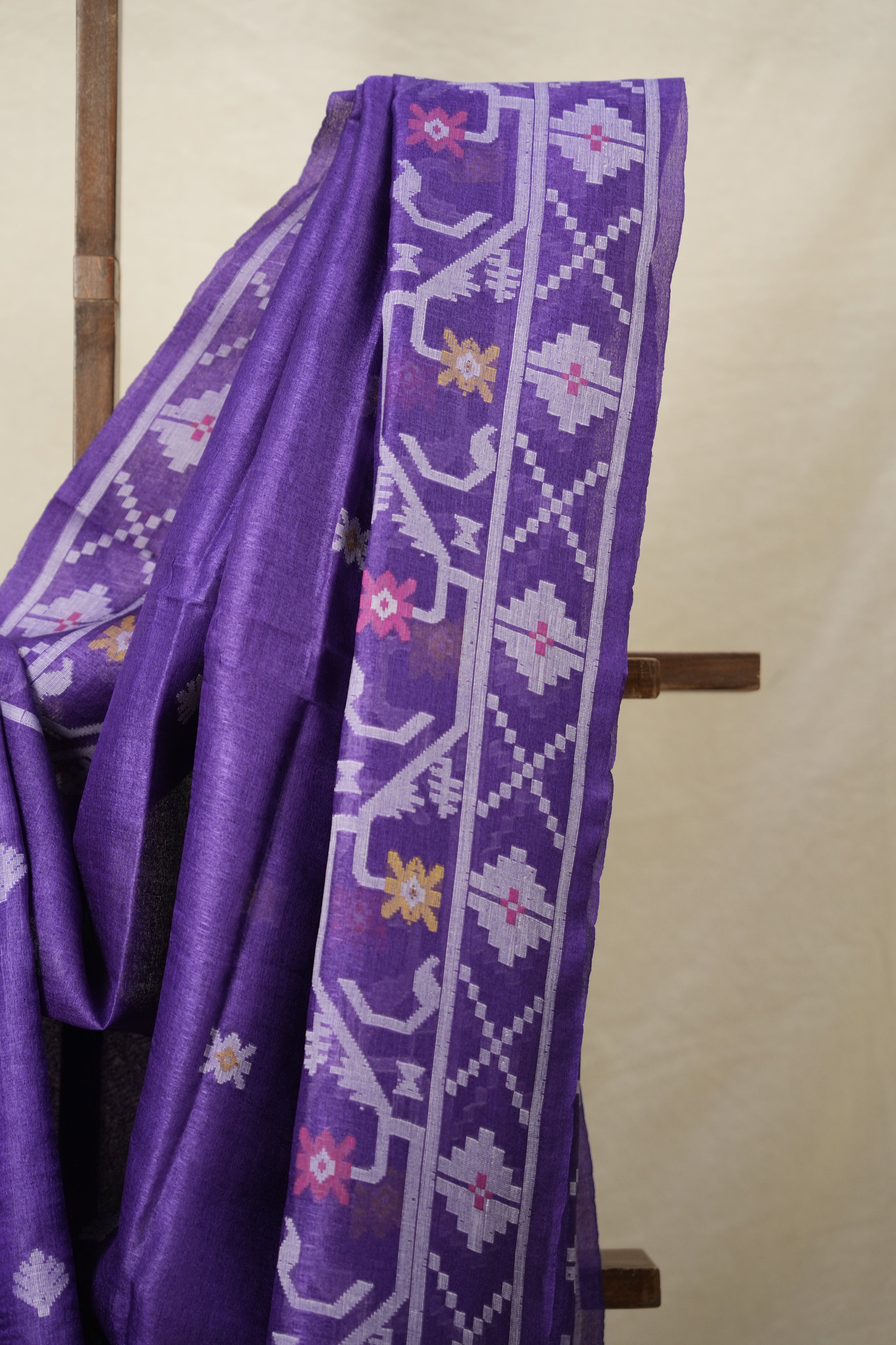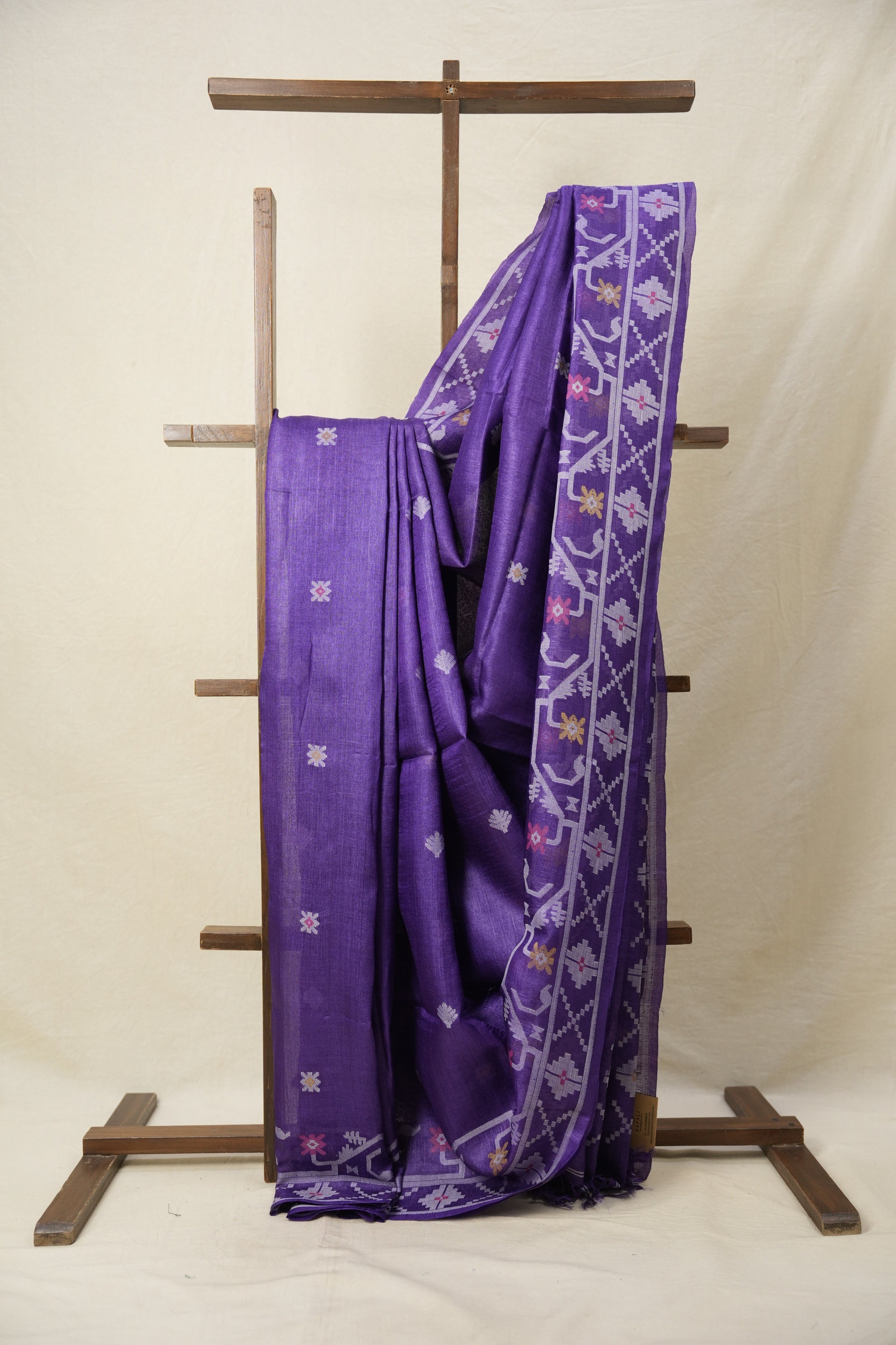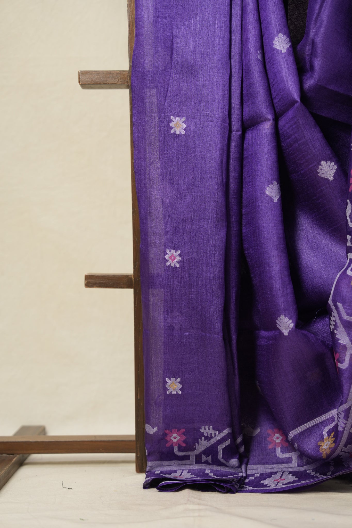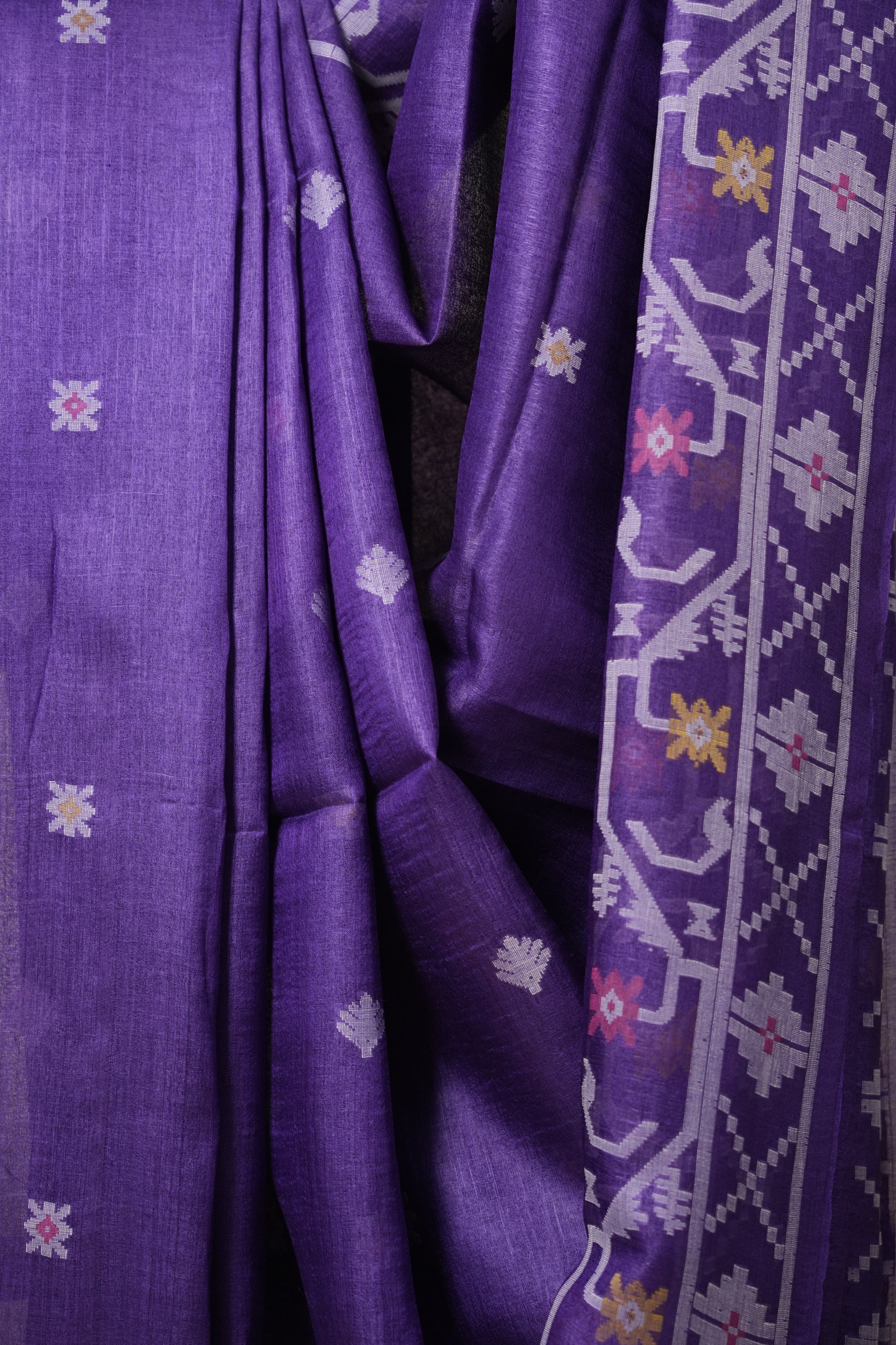 Dark Purple Jamdani Tussar Silk Saree - SRDPJTSS0004