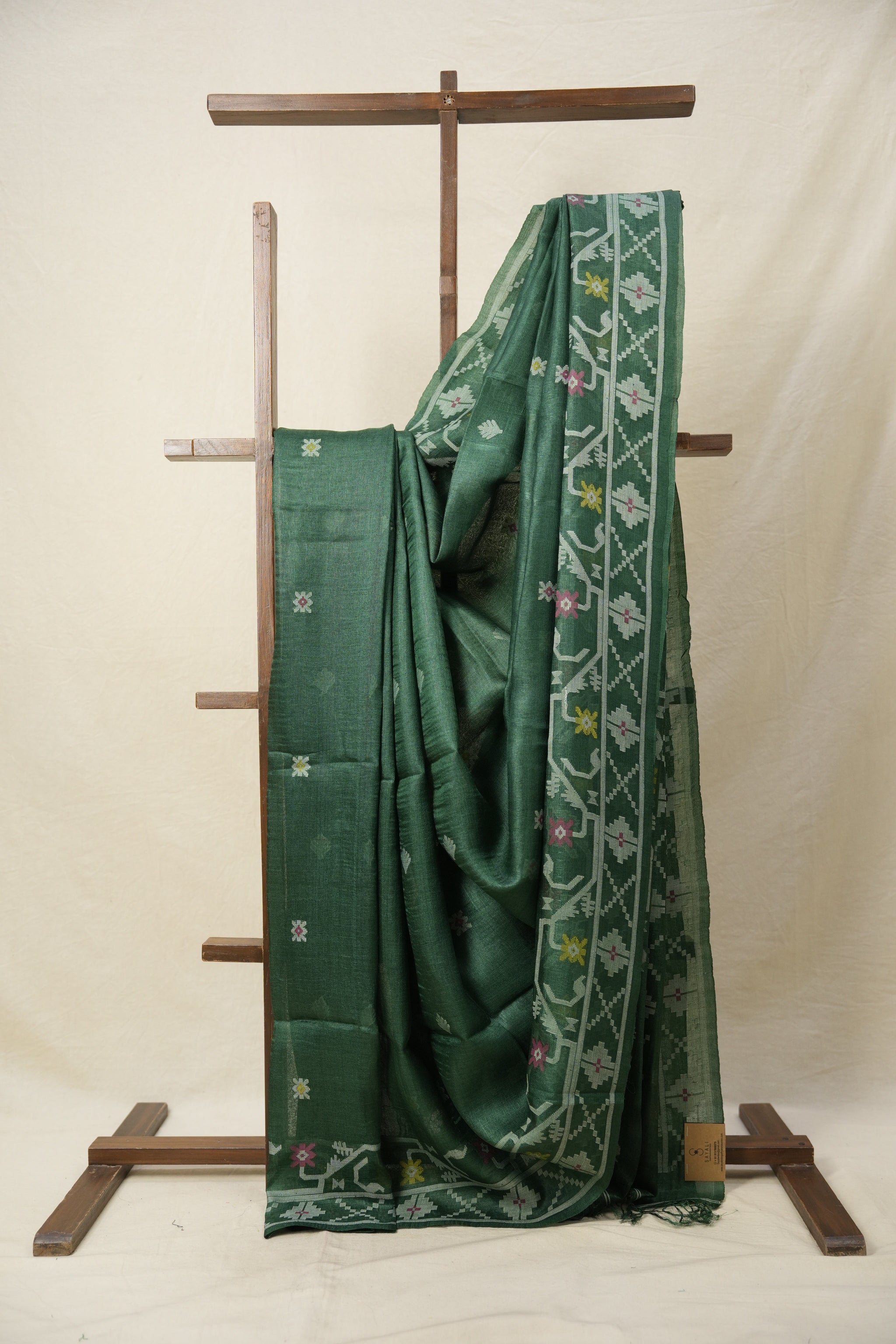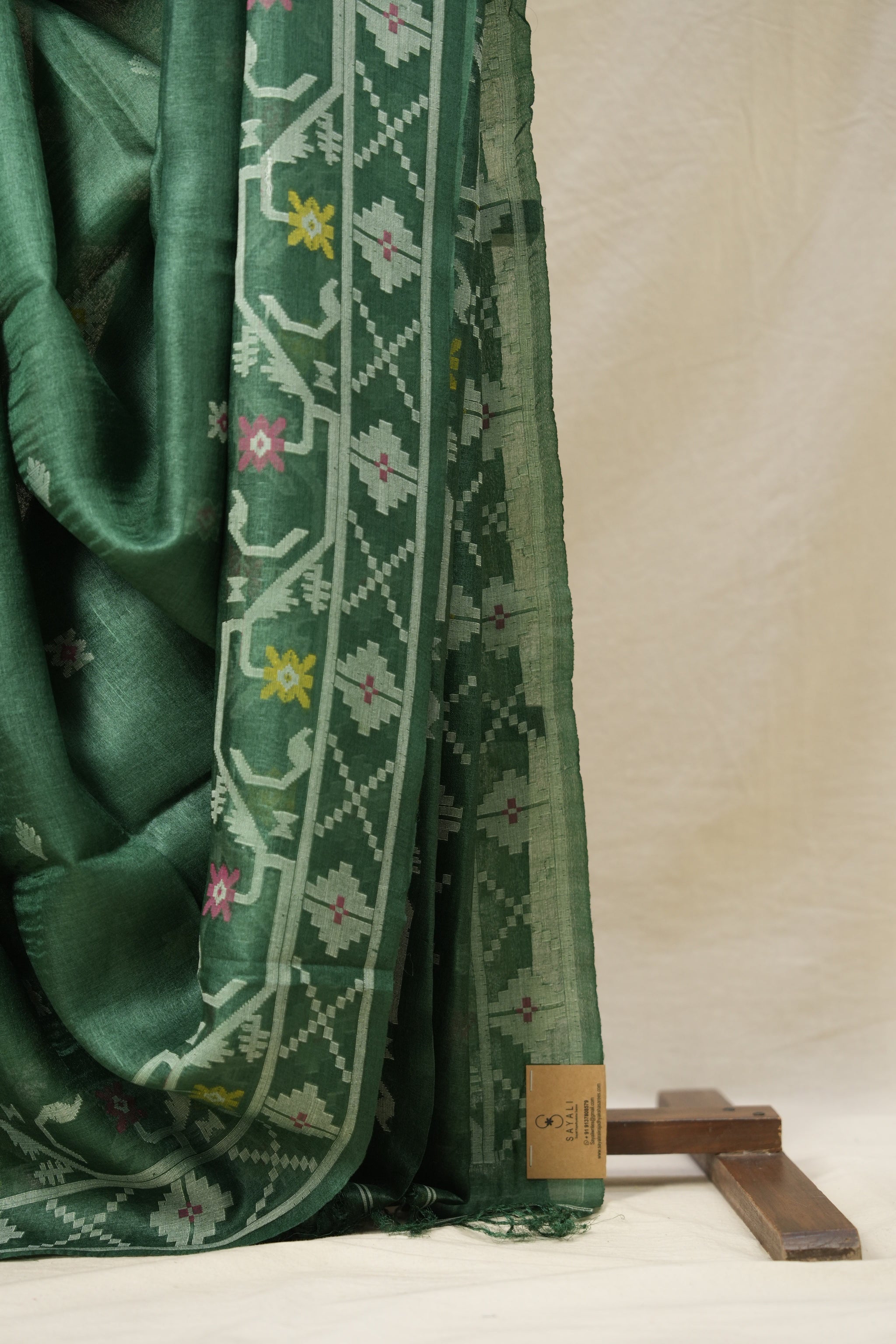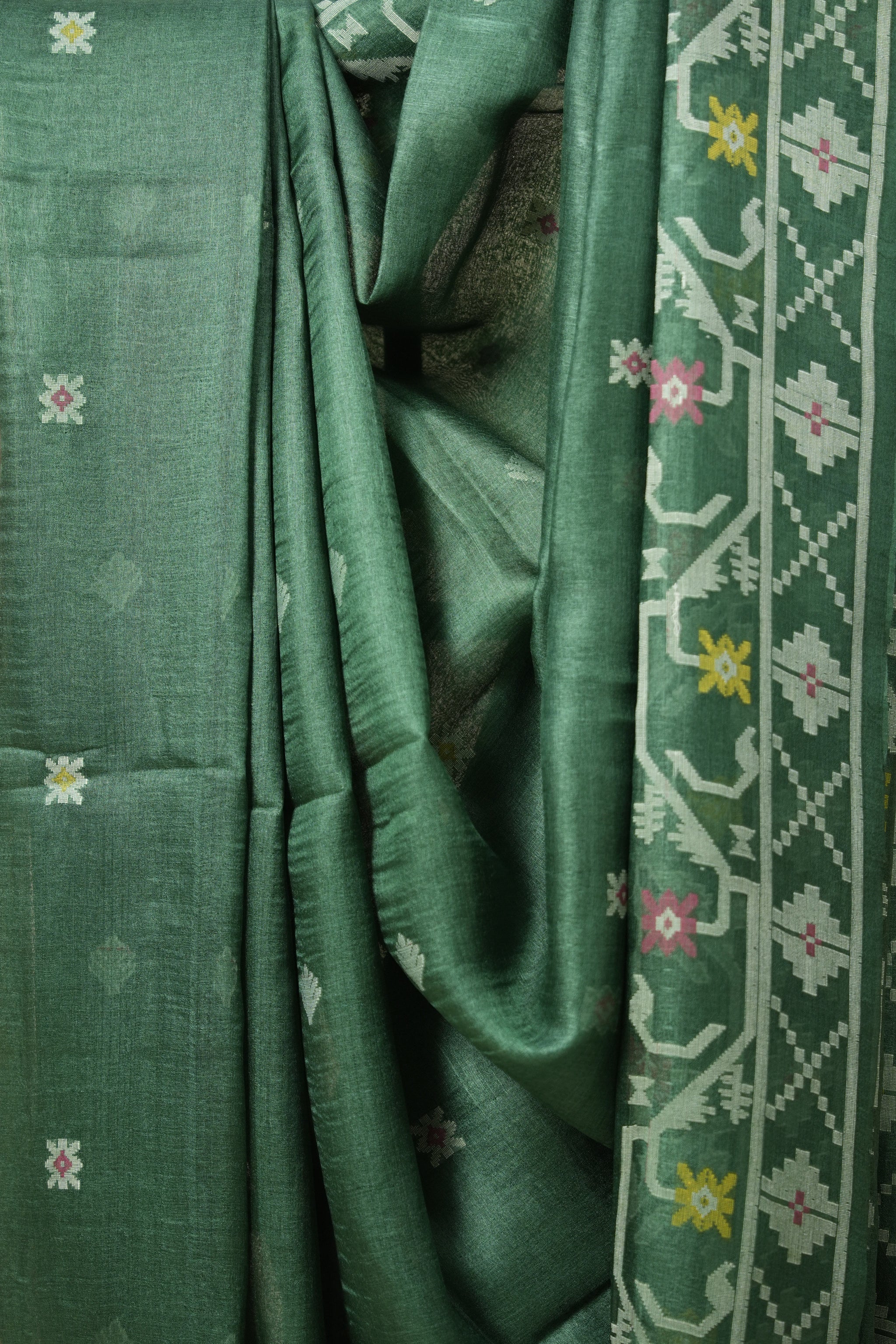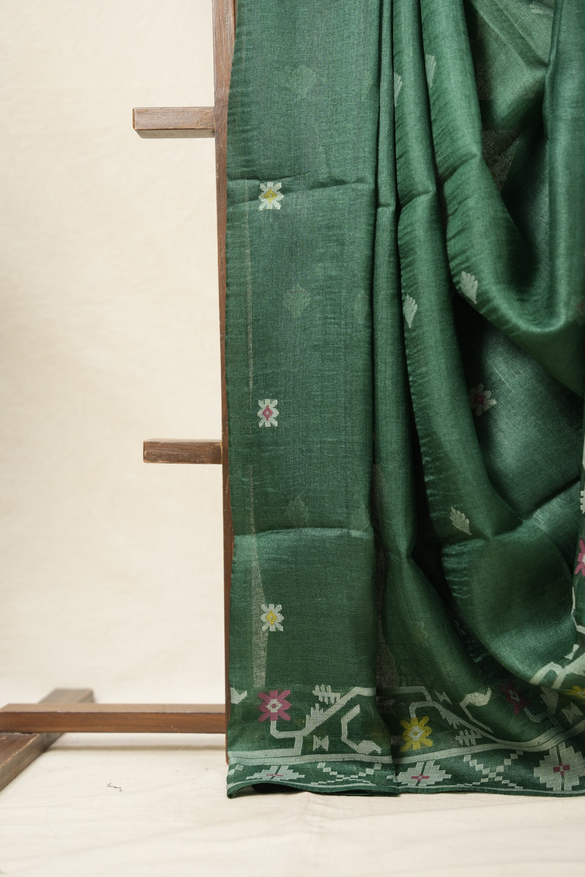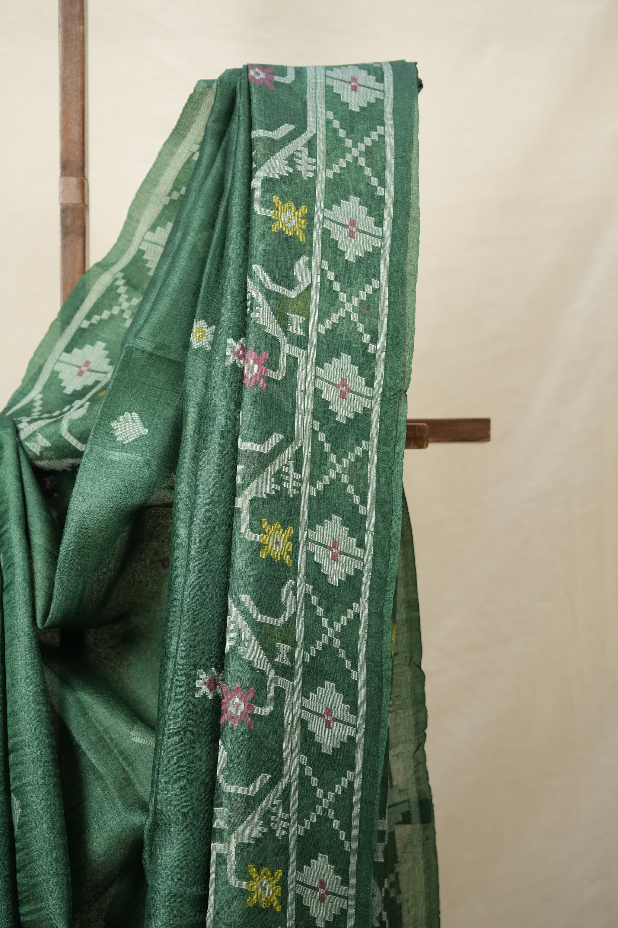 Green Jamdani Tussar Silk Saree - SRGJTSS0008