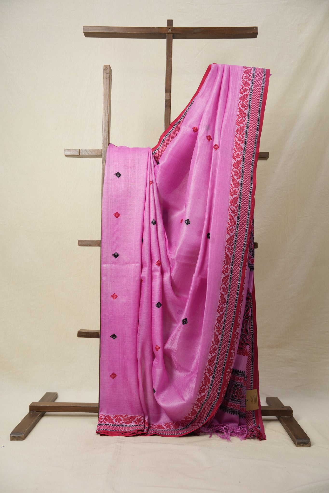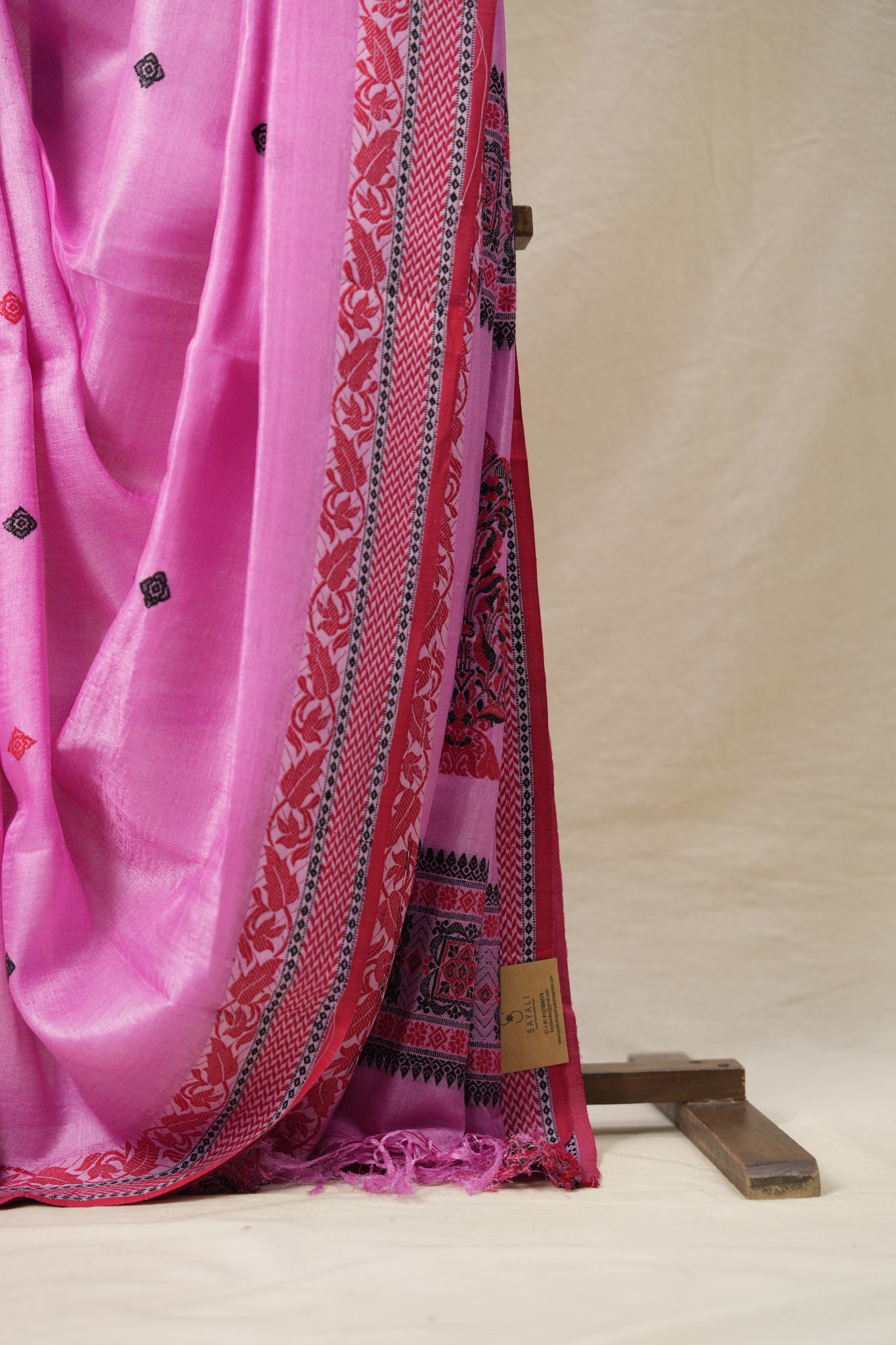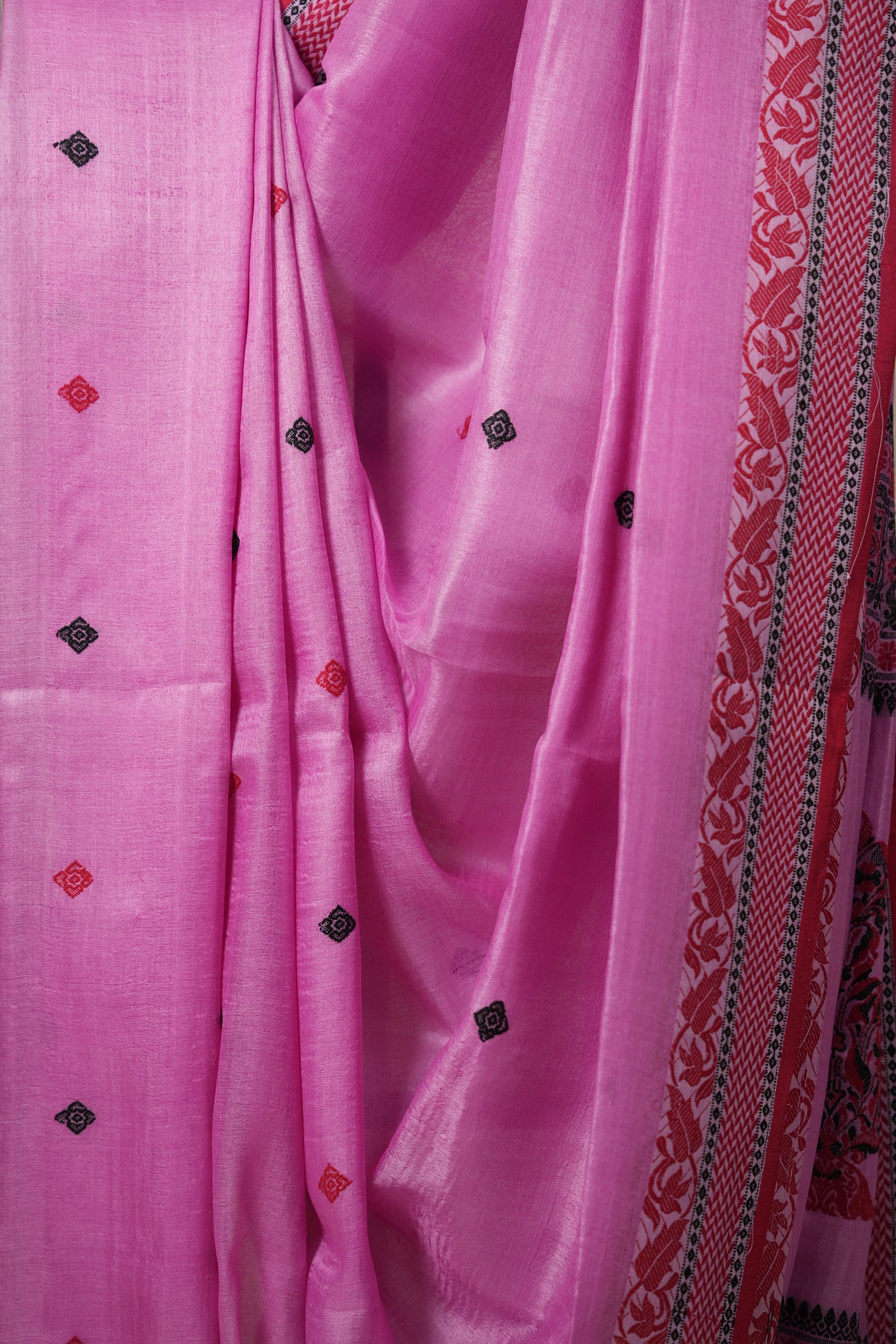 Neon Pink Jamdani Tussar Silk Saree - SRNPJTSS0029