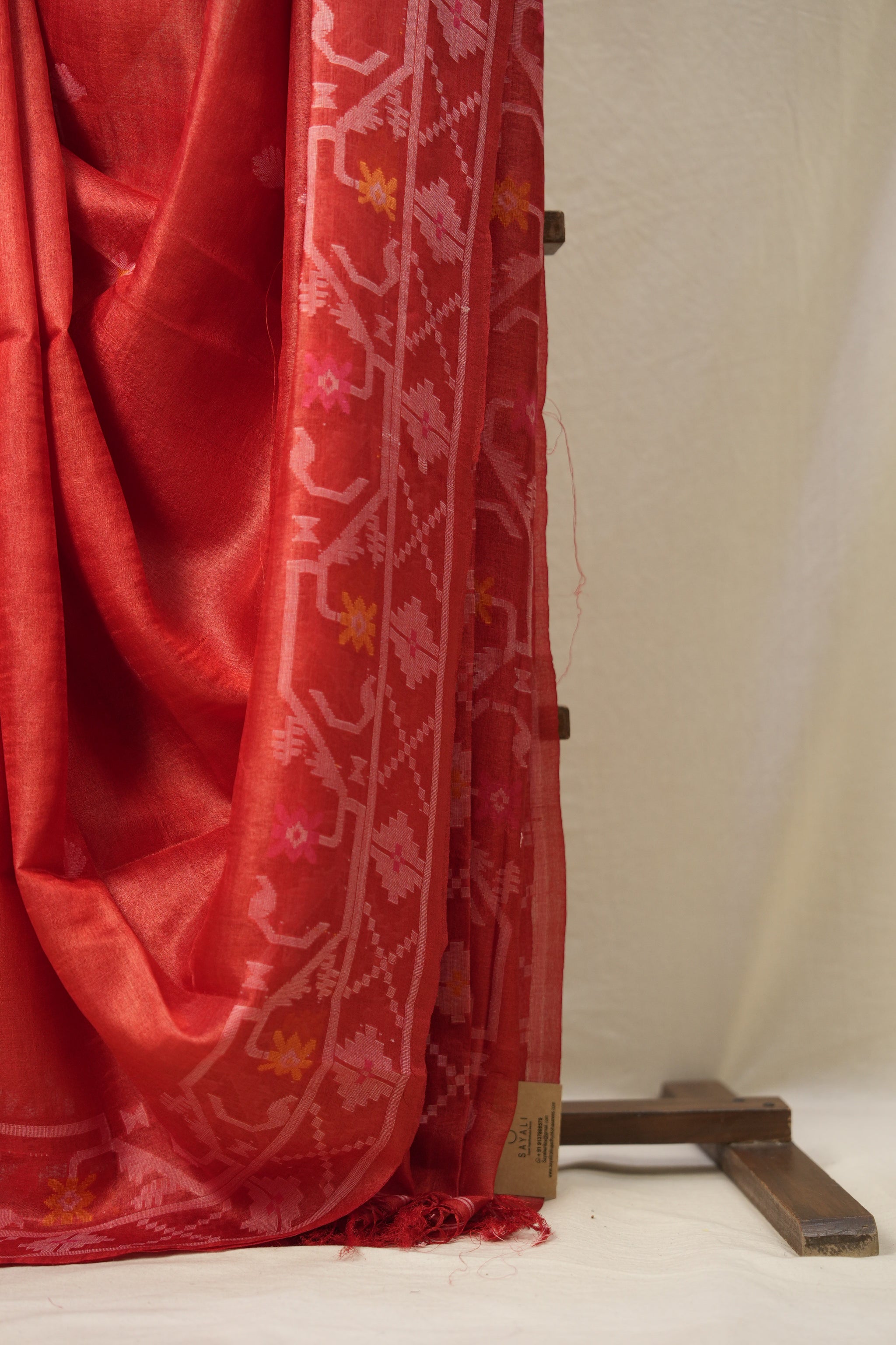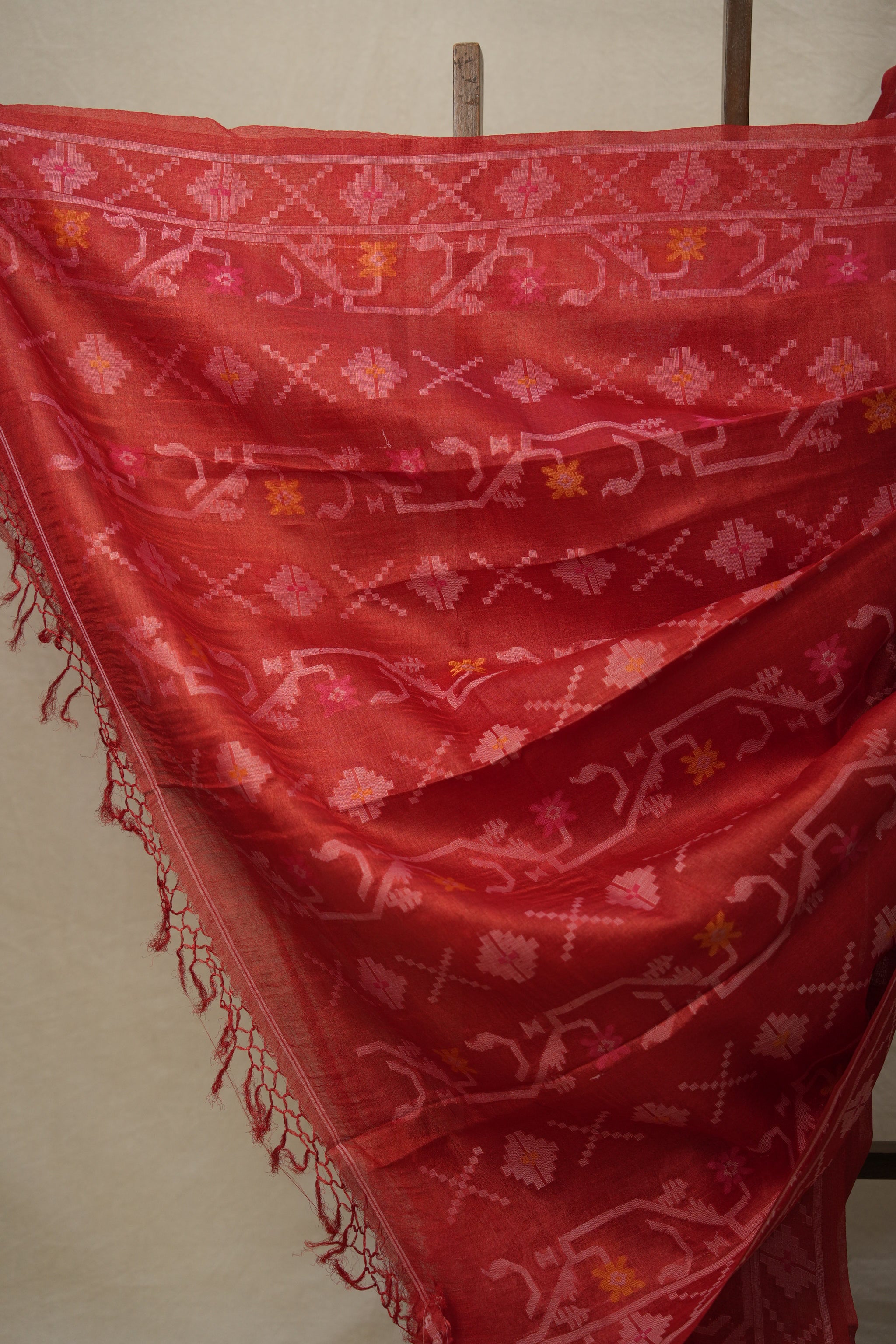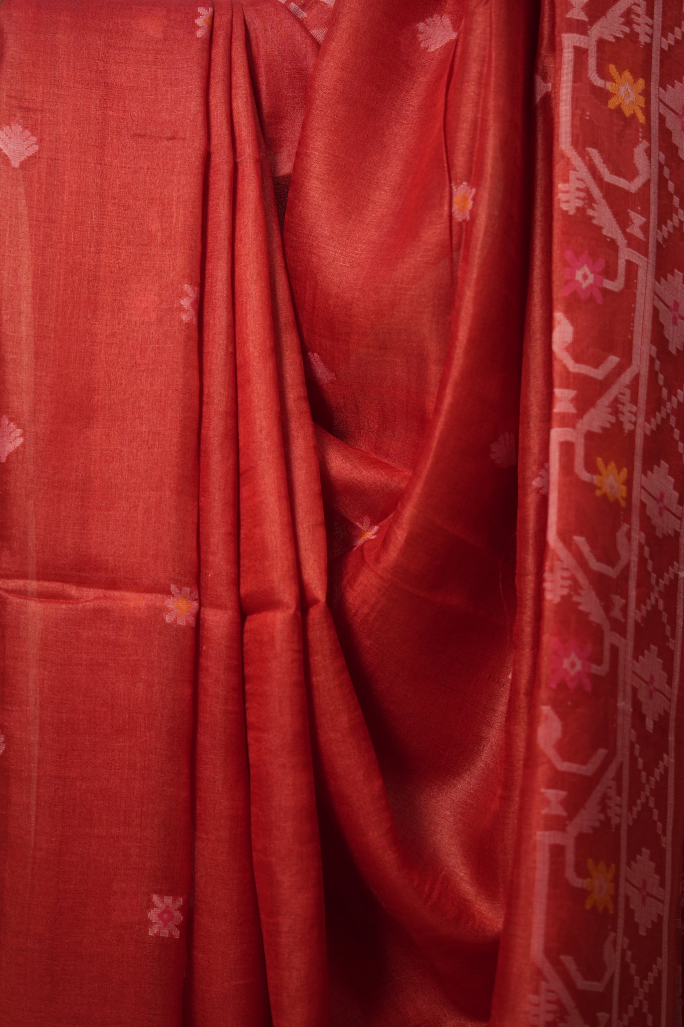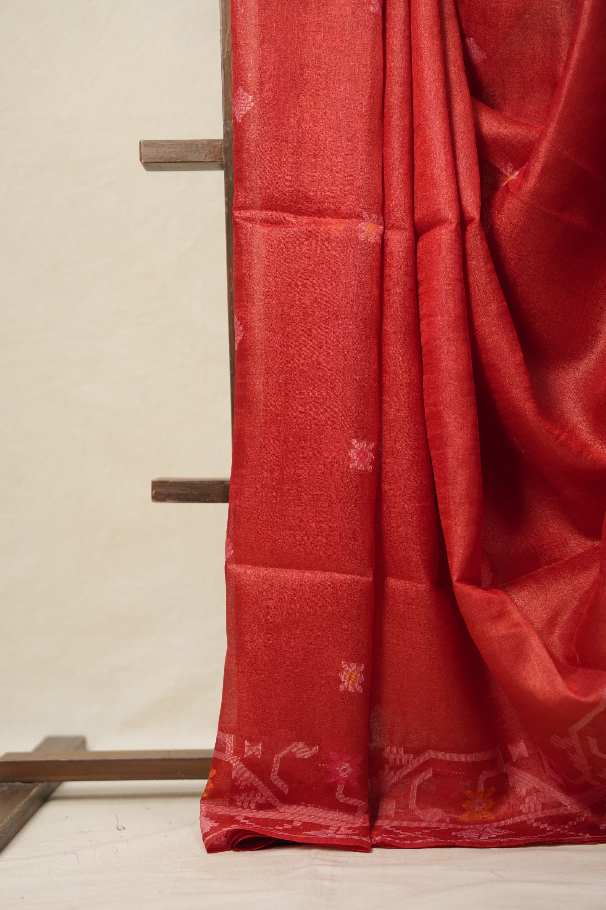 Red Jamdani Tussar Silk Saree - SRRJTSS0009