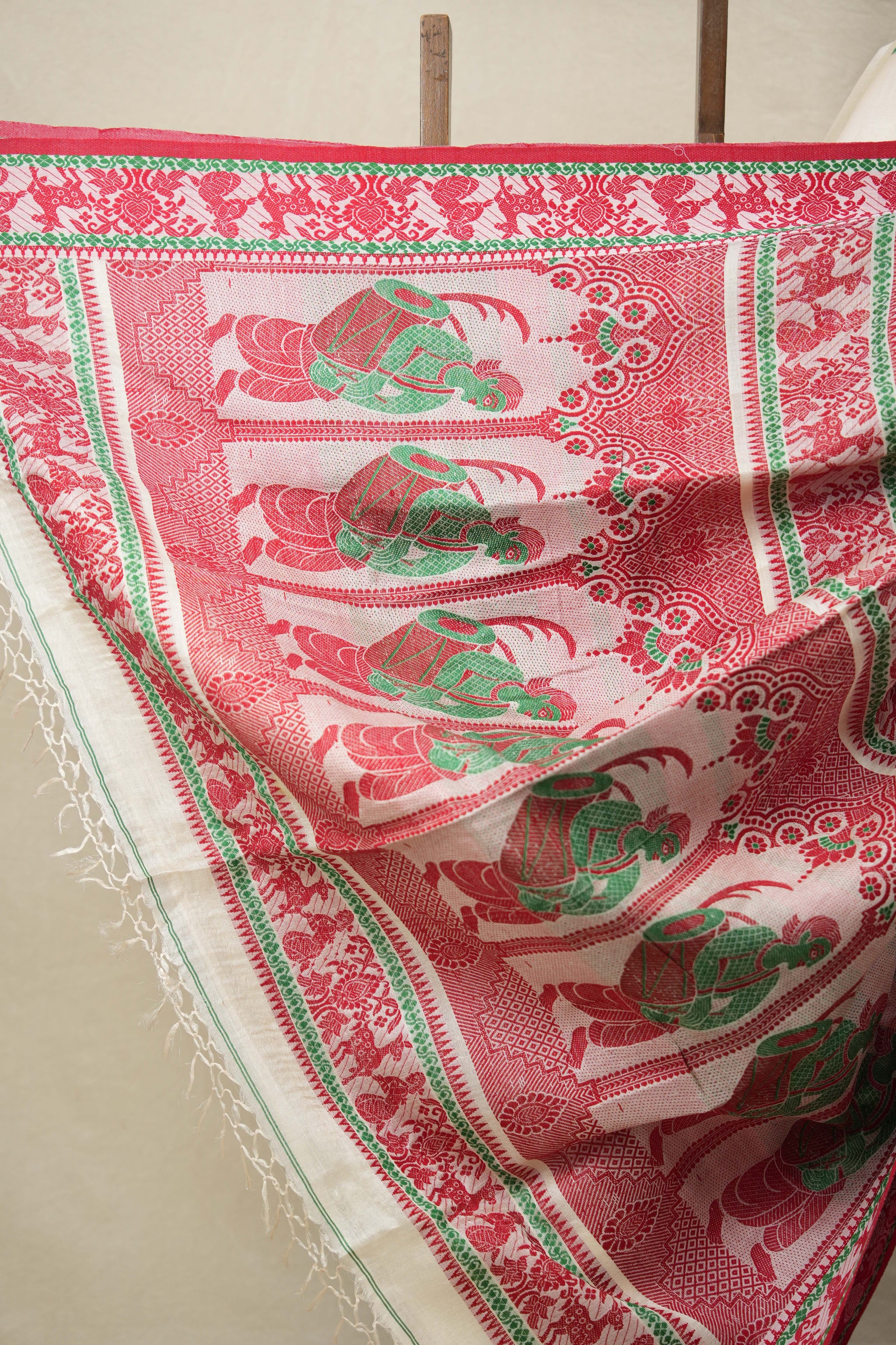 Snow White Jamdani Tussar Silk Saree - SRSWJTSS0026
