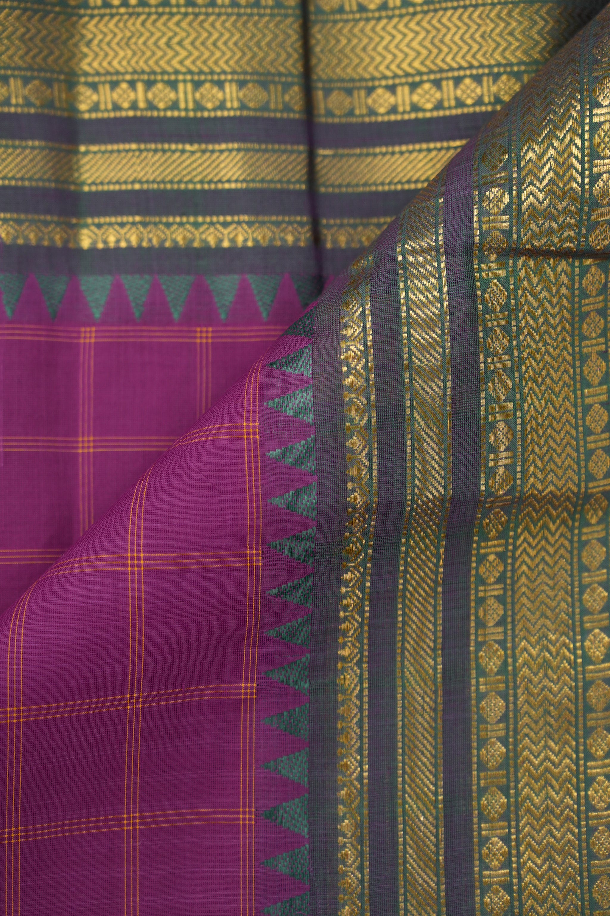 Magenta Checks Kanchi Cotton Saree -SRMCKCS1176