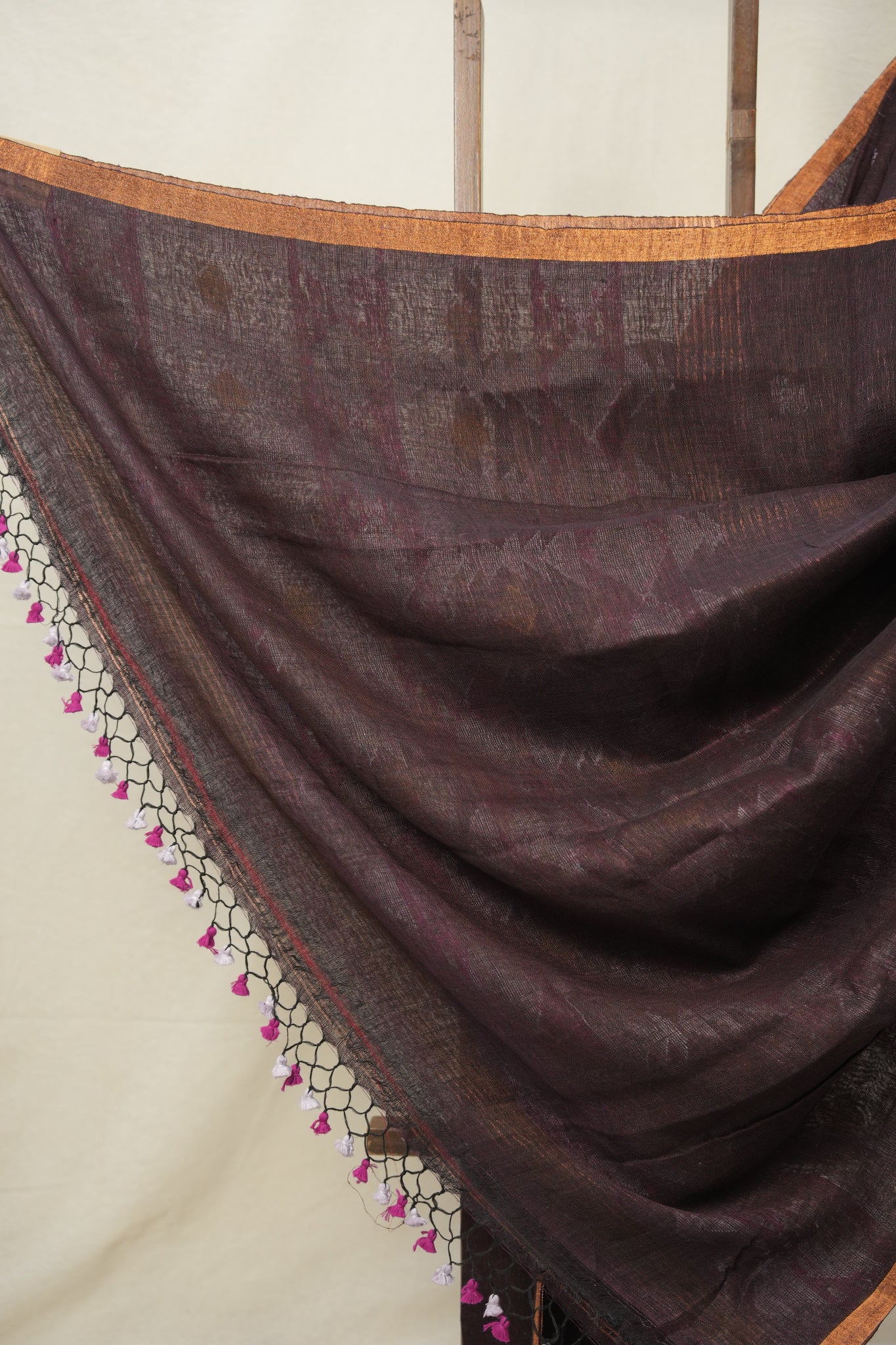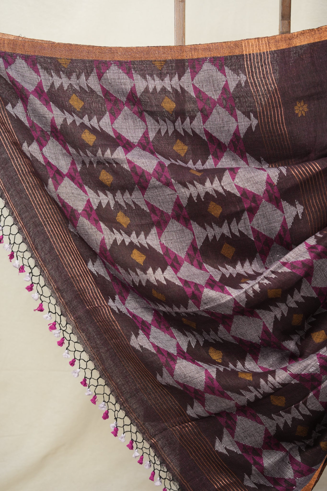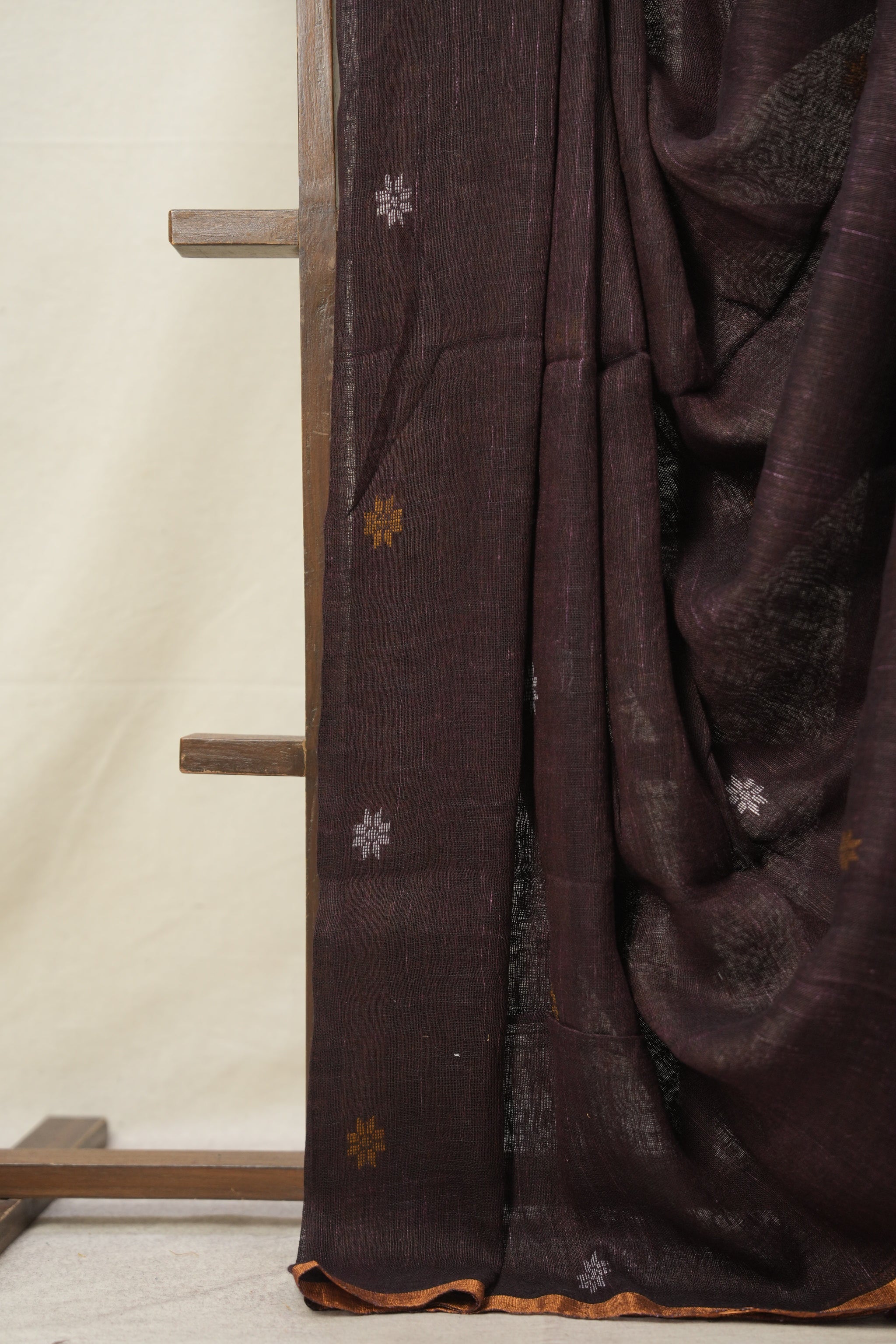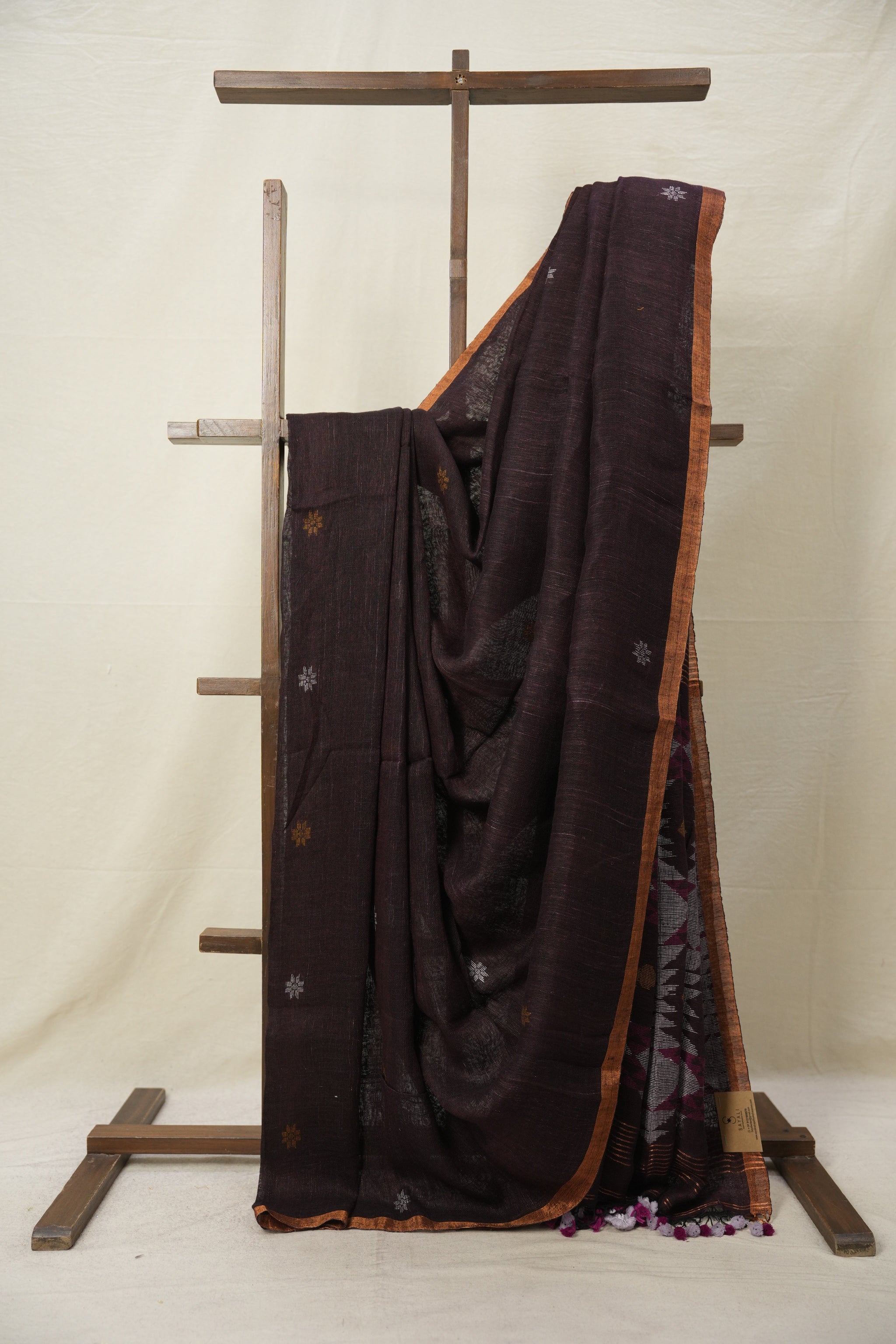 Black - Brown Linen Jamdani Saree -SRBBLJS465