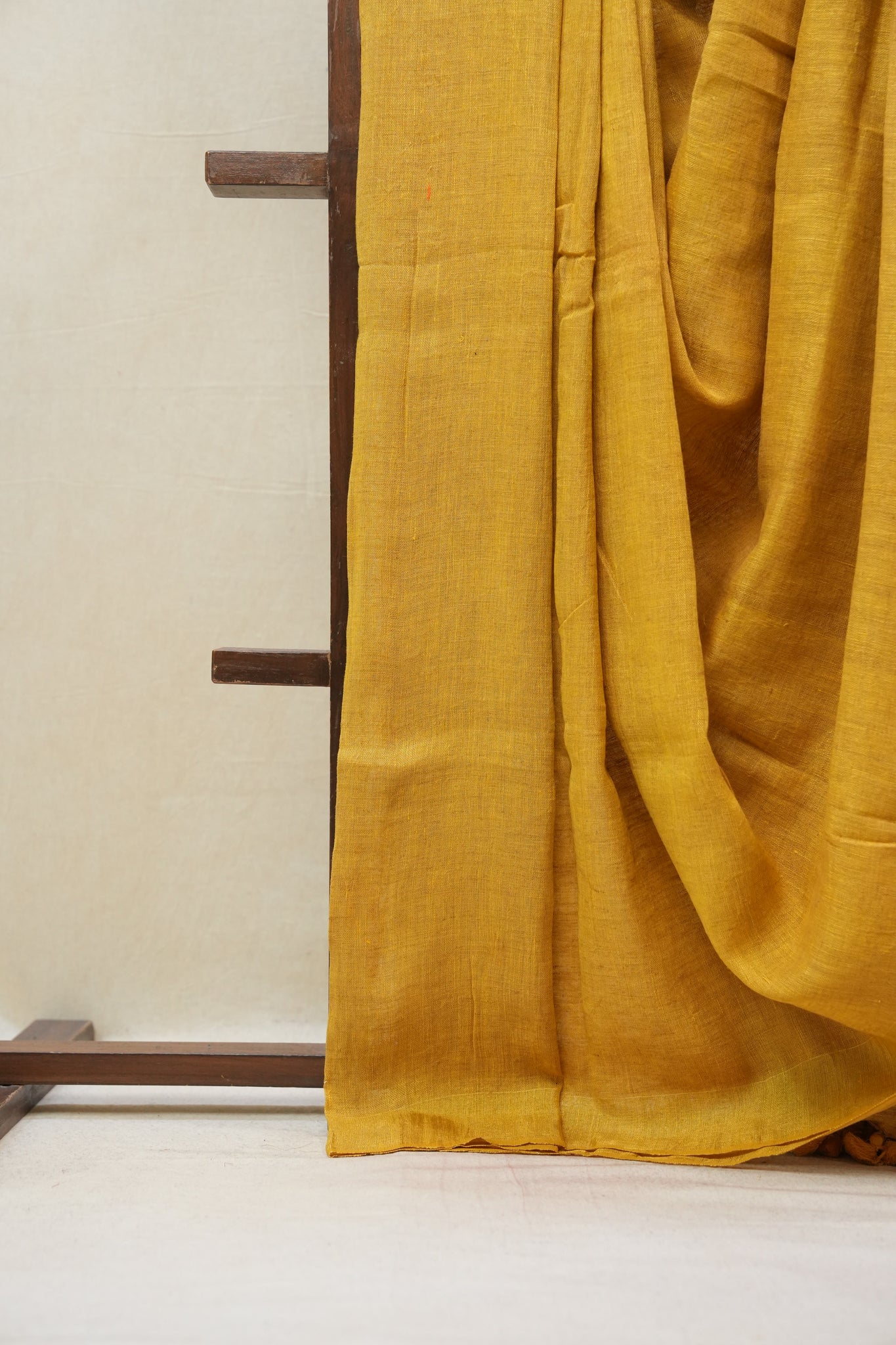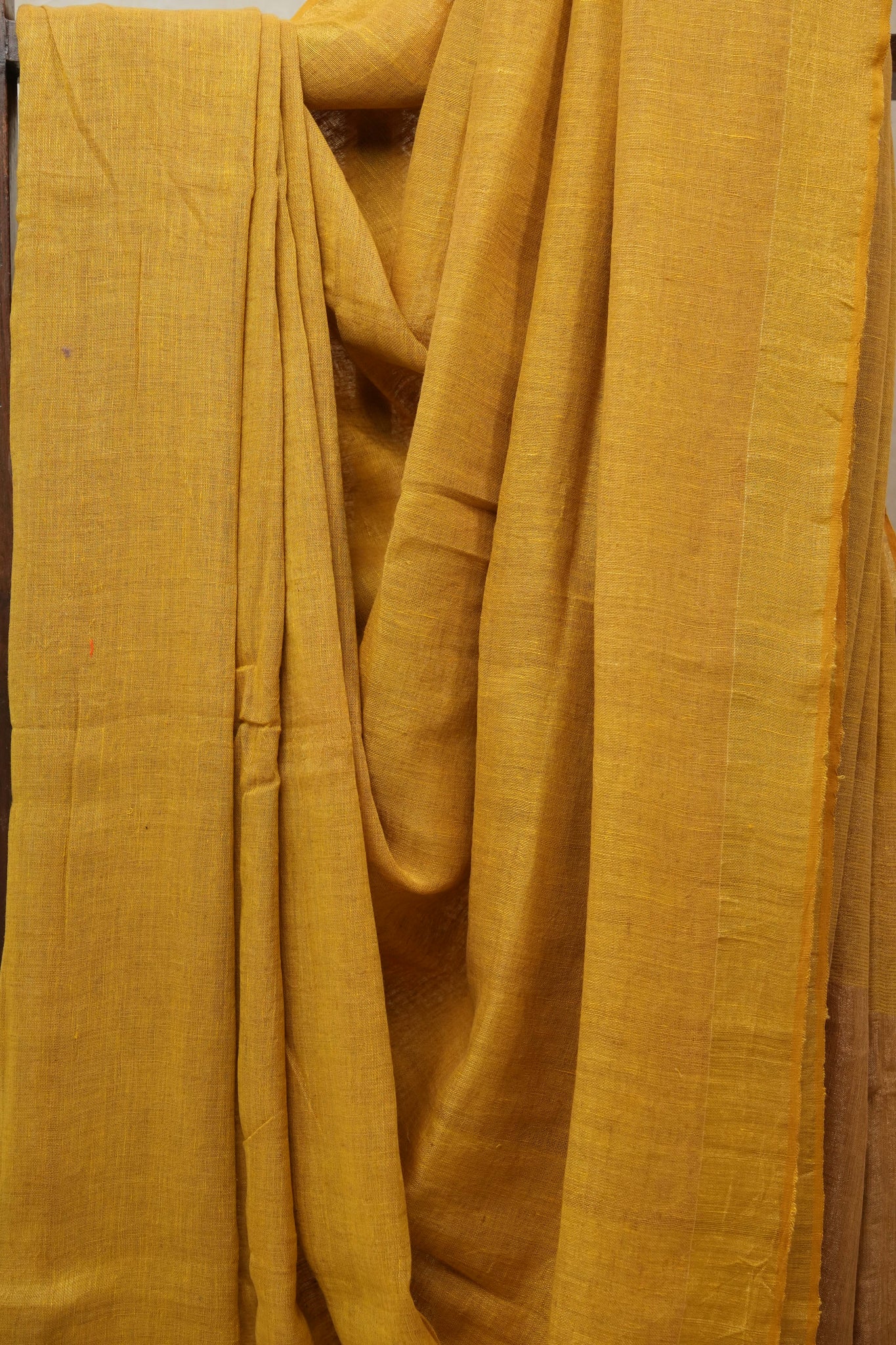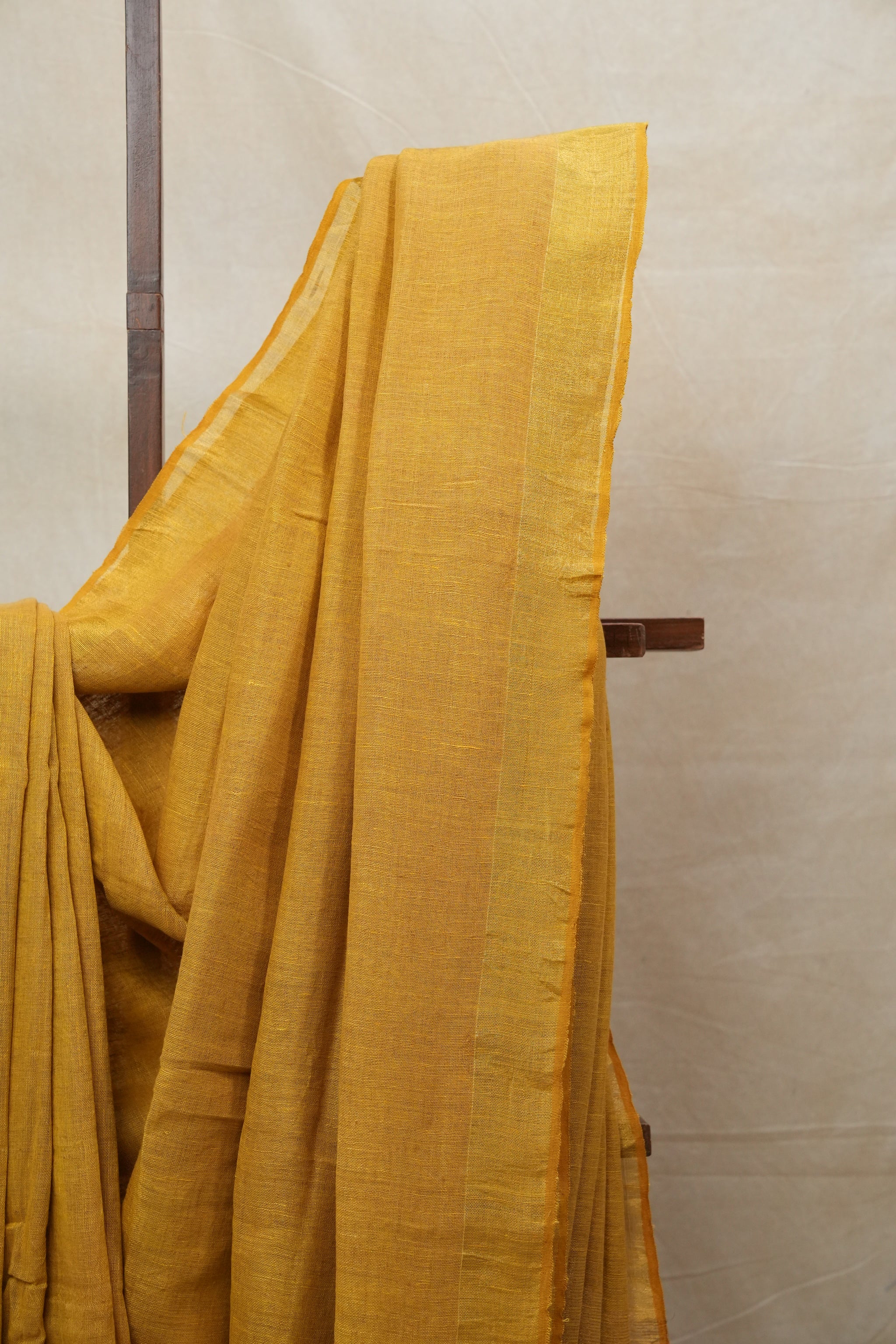 Golden Yellow Plain Linen Saree With Yellow Tassels - SRGYPLS306