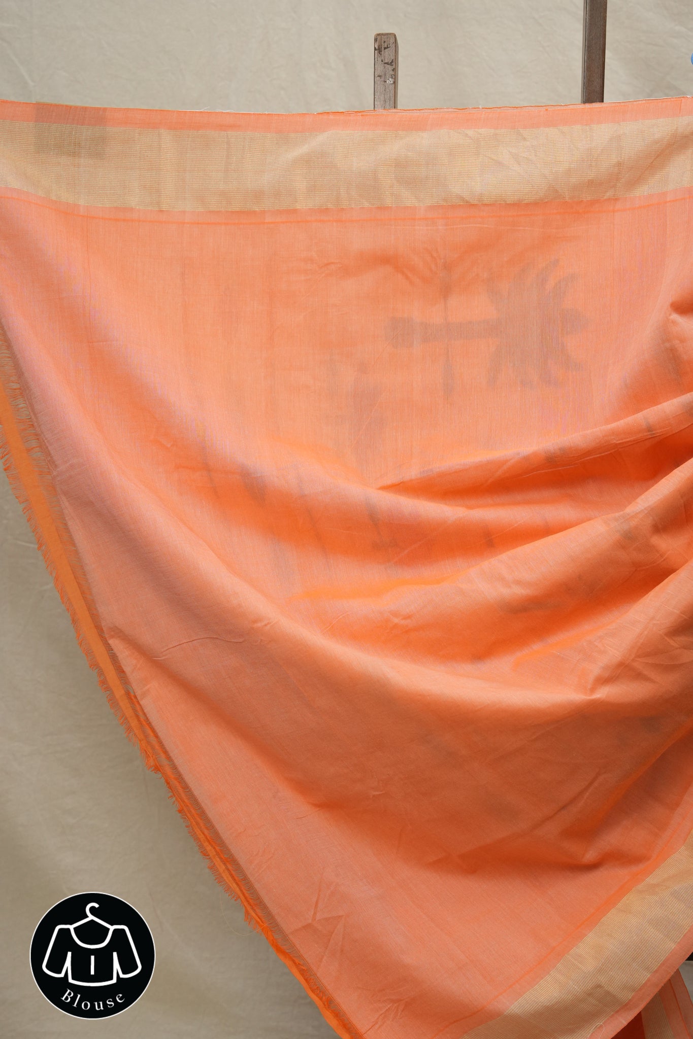 Work - Orange cotton paithani saree golden stripes butti with tissue zari border and fancy pichwai pallu.