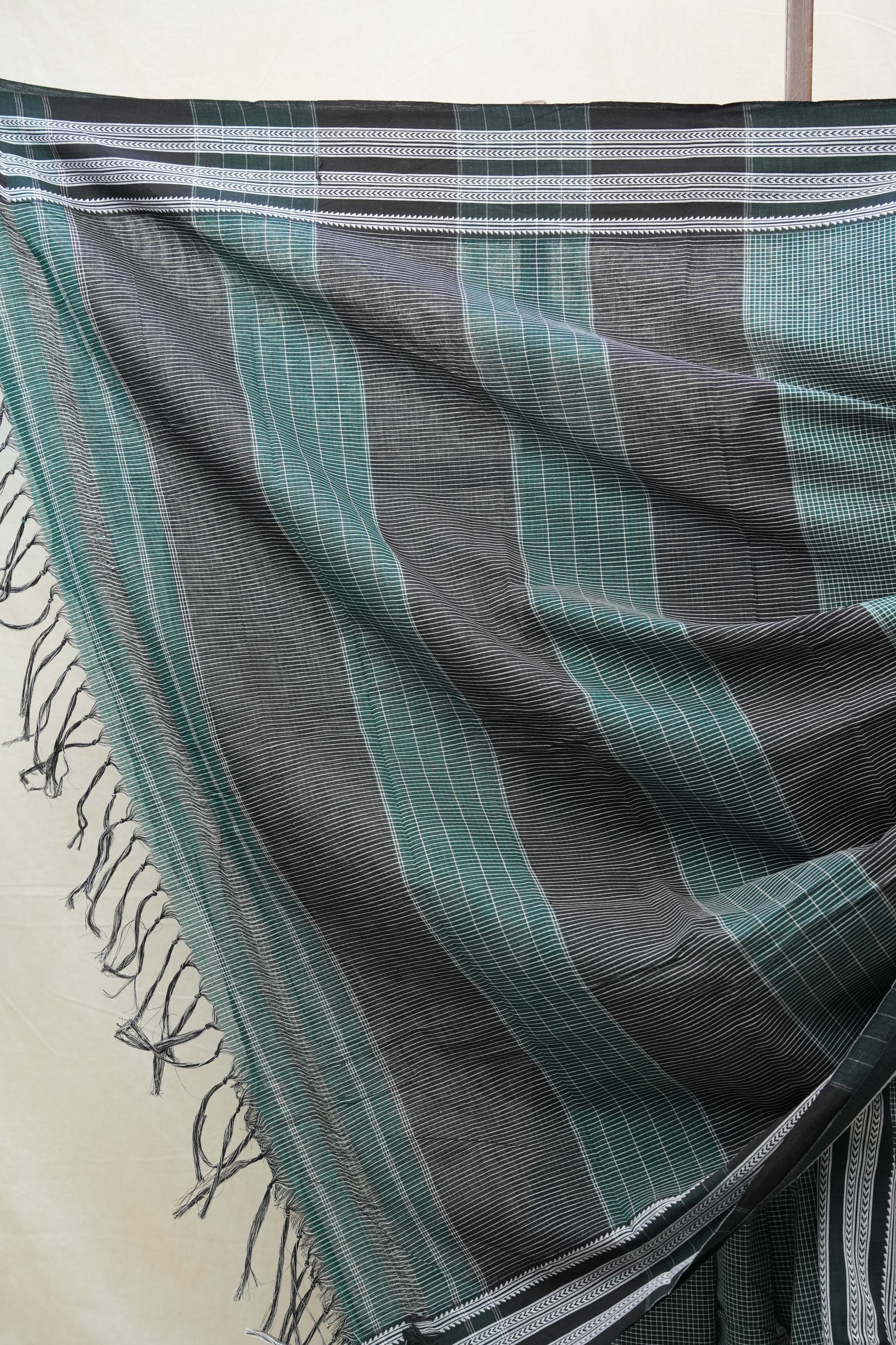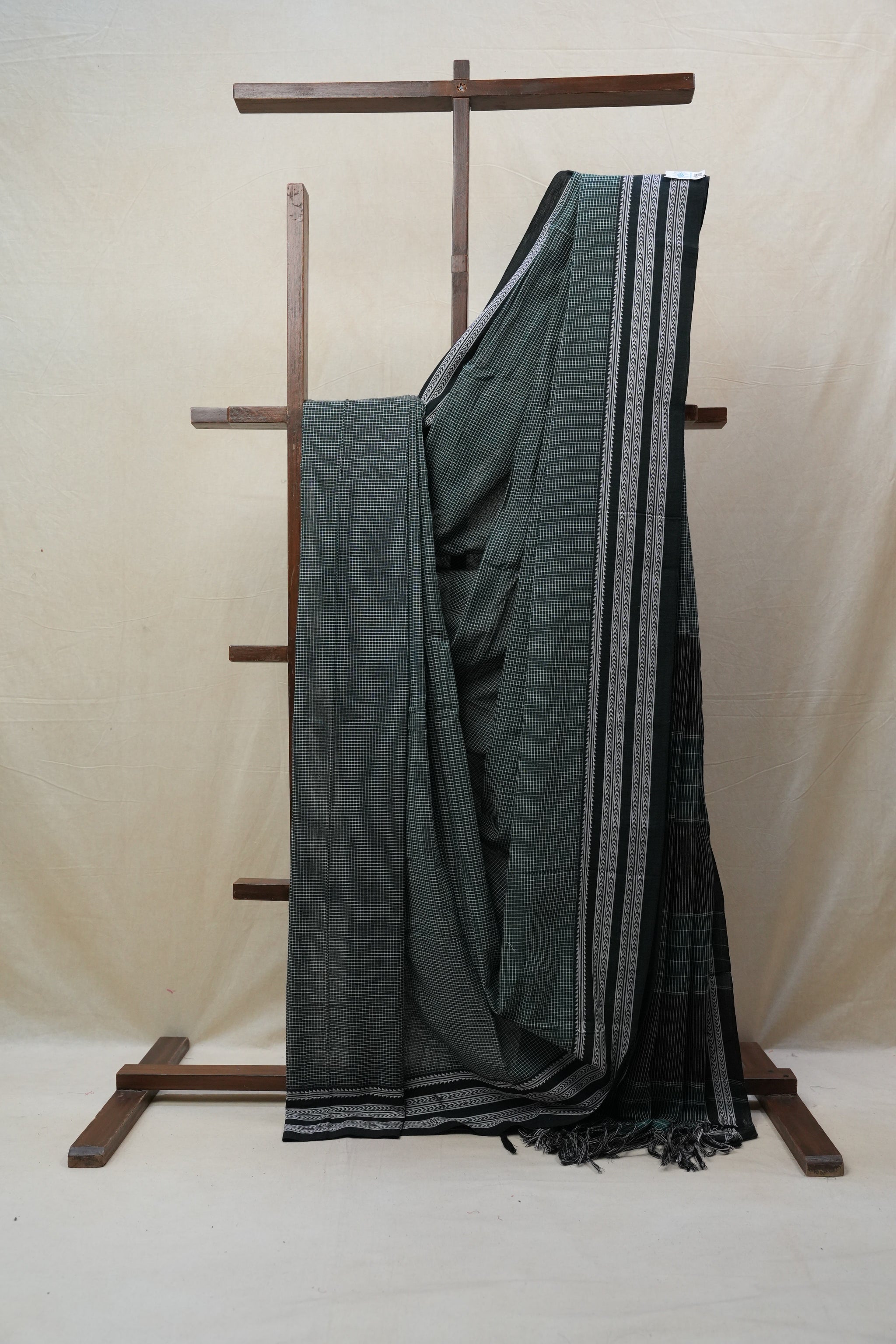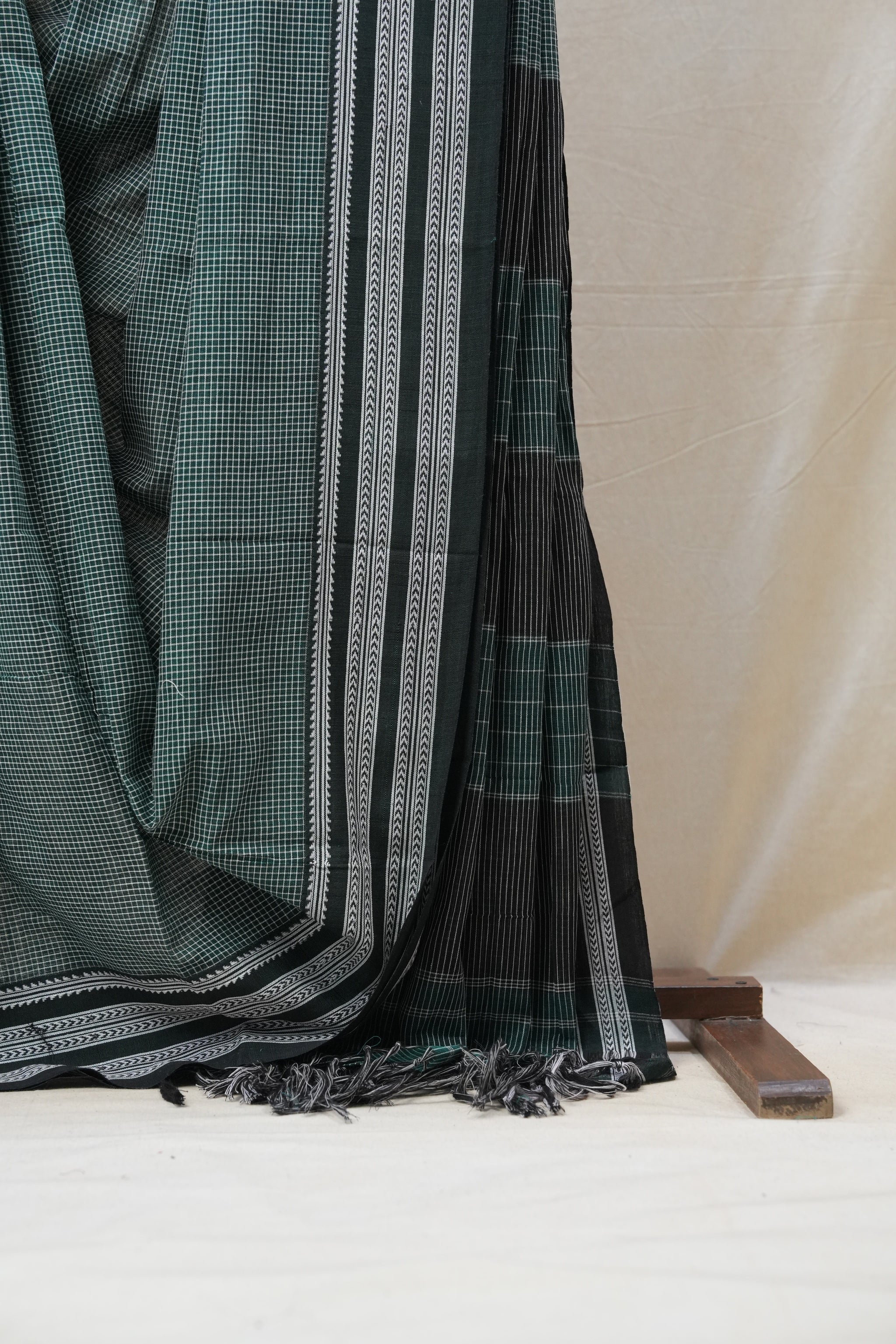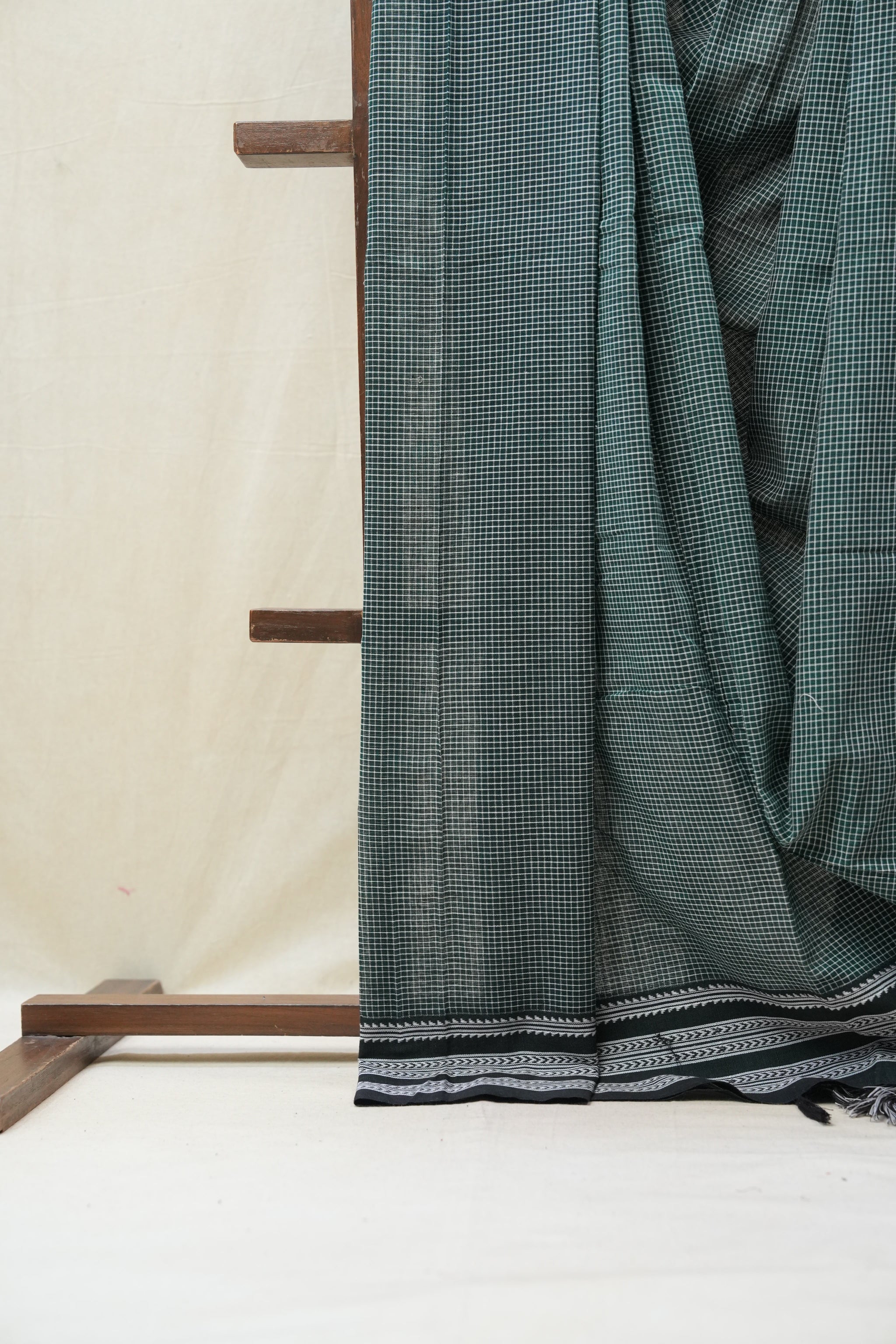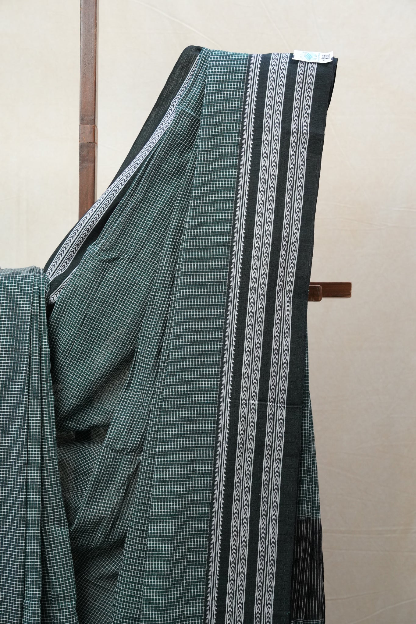 Dark Green Small Checks Cotton Patteda Anchu Saree - SRDGPAS254