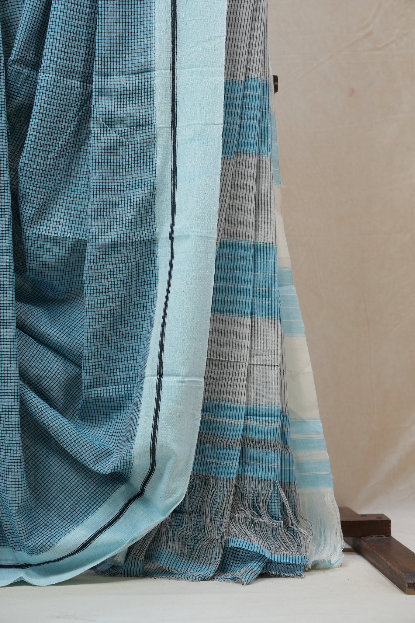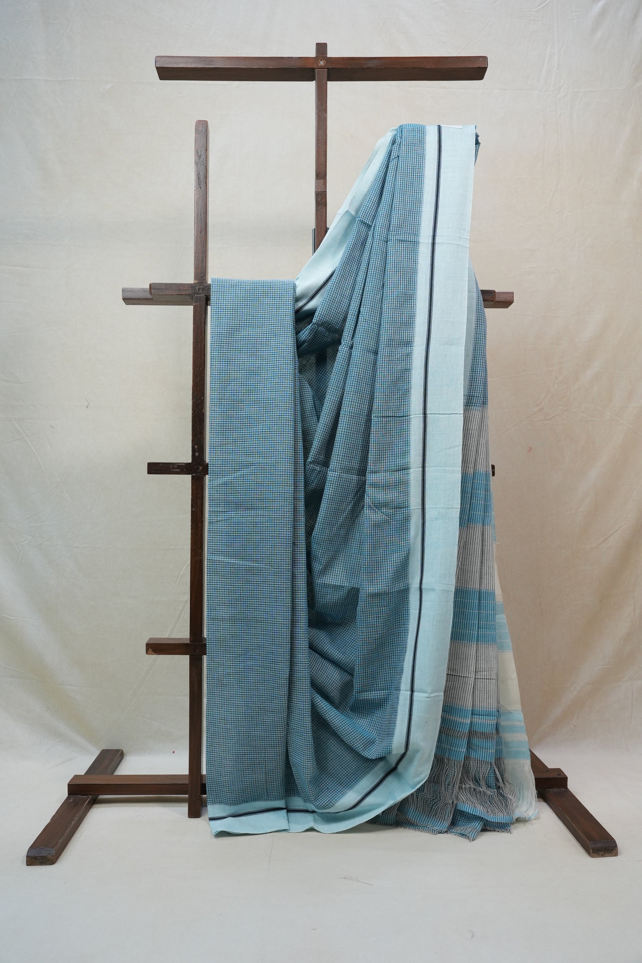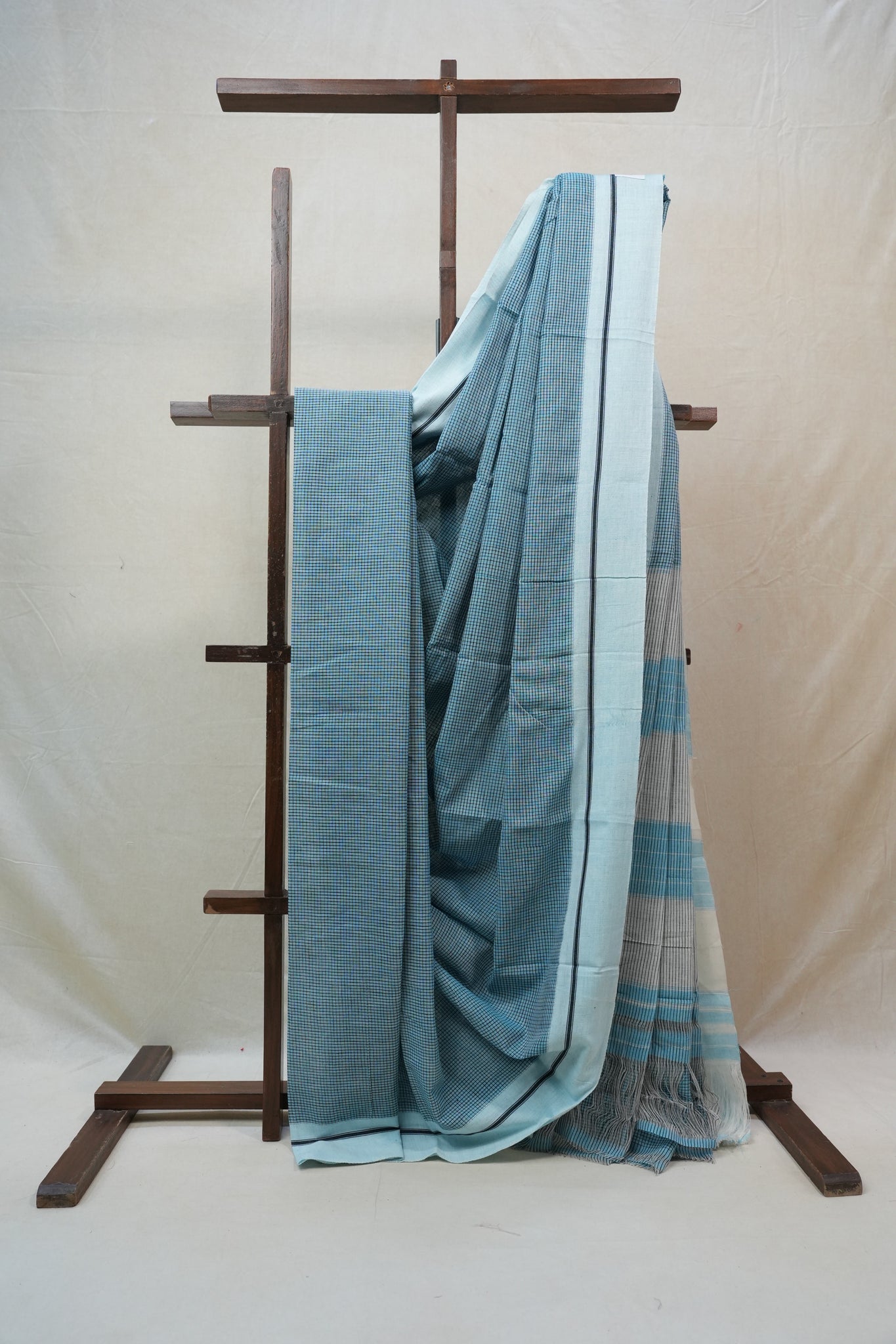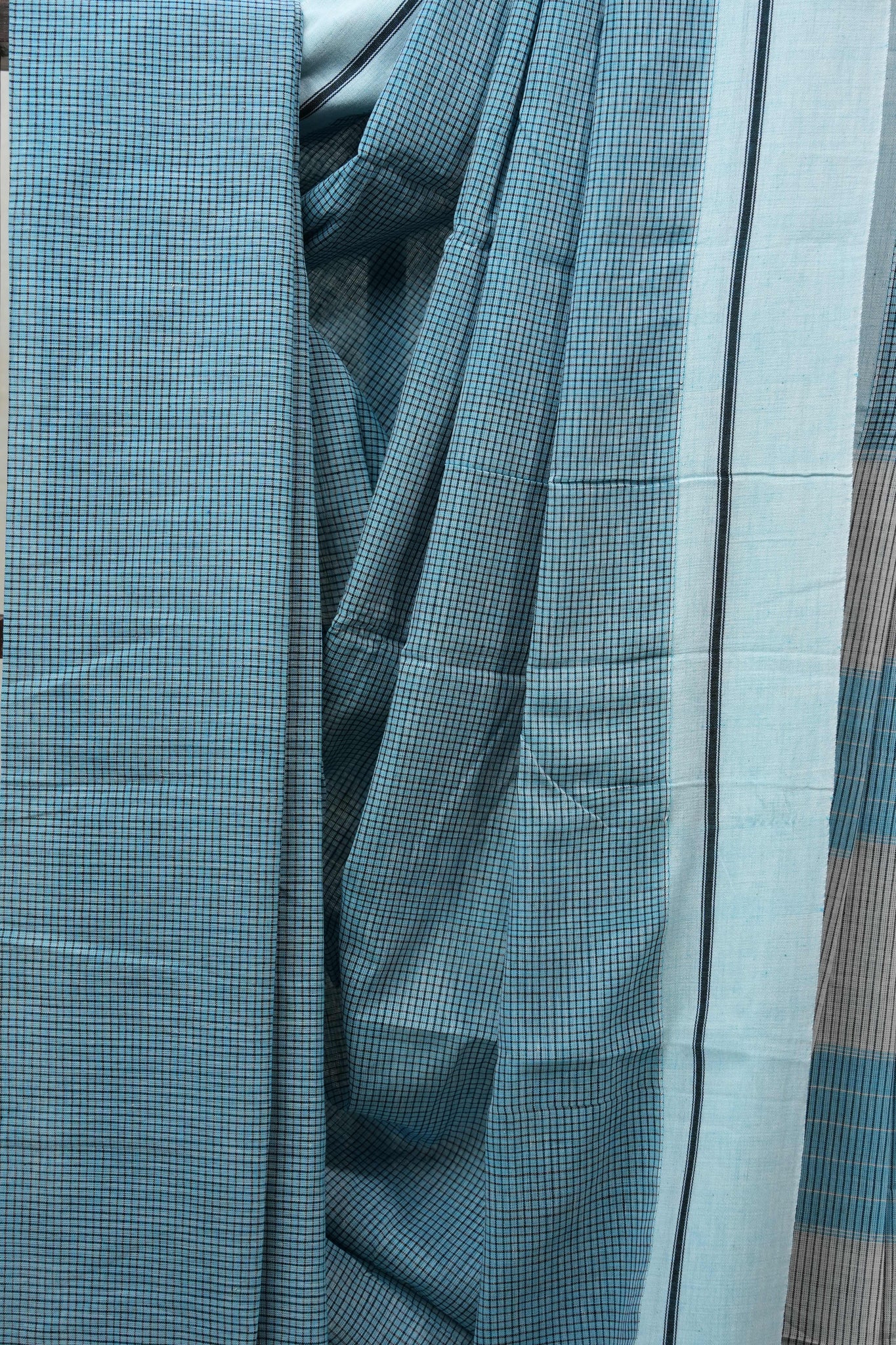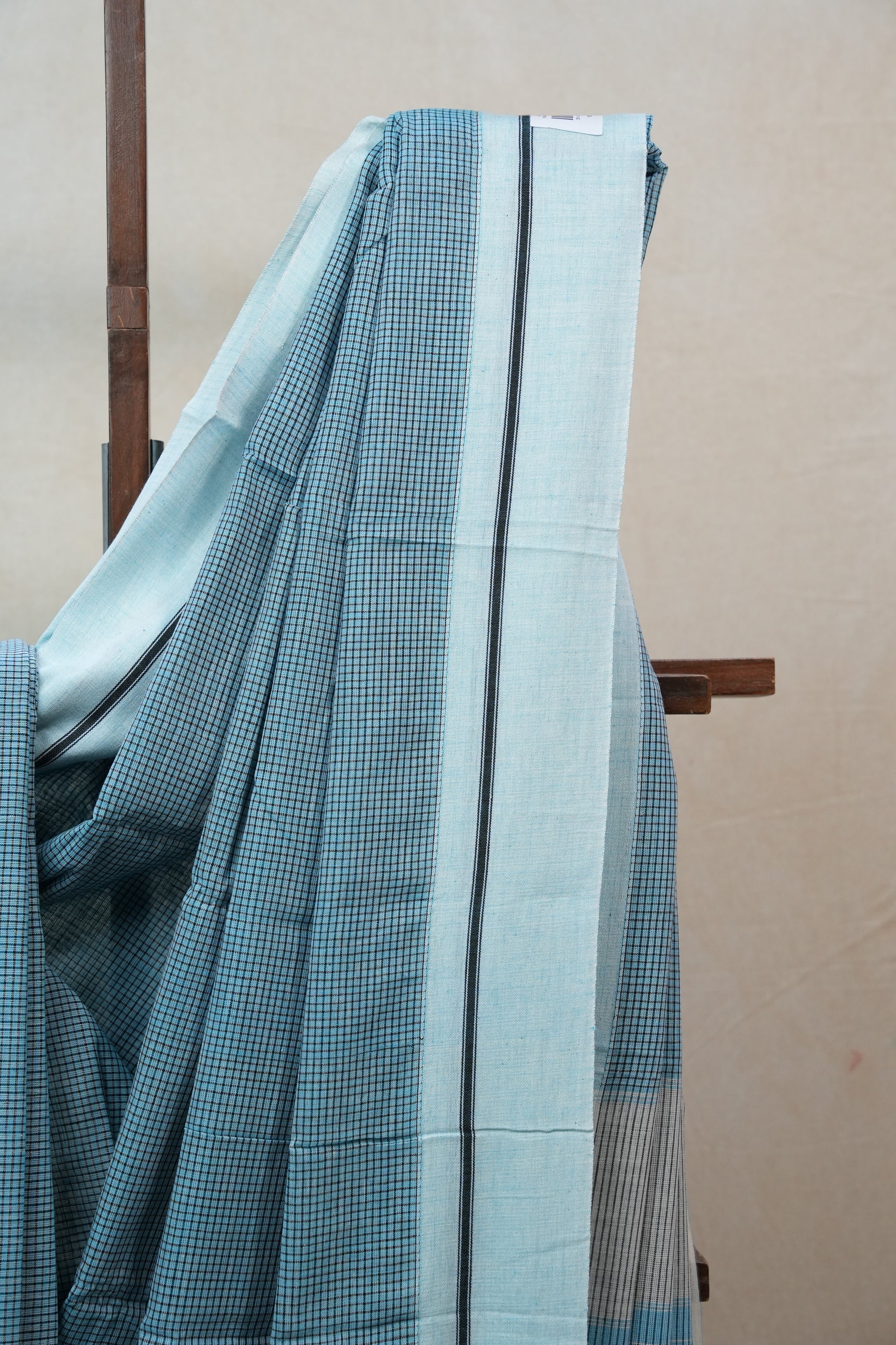 Sky Blue Small Checks Cotton Patteda Anchu Saree - SRSBPAS210